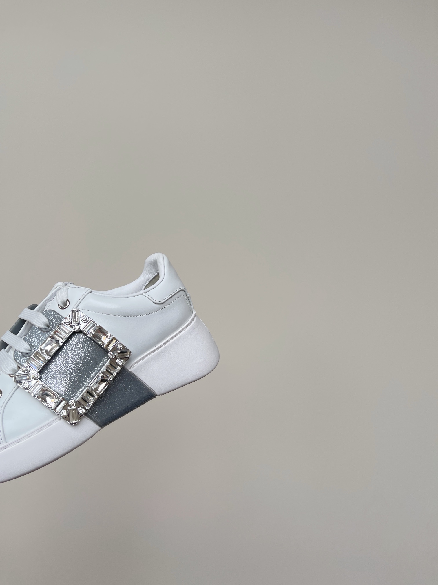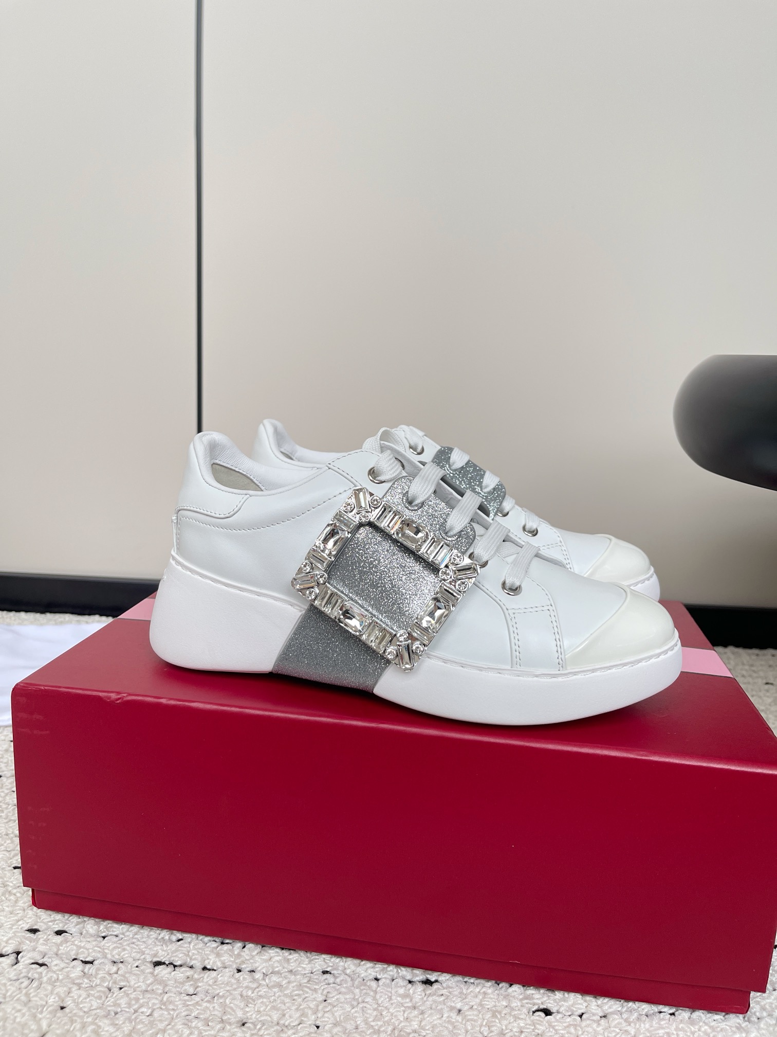 这款鞋子是AAAAA 1:1 质量 (非常棒). 使用了和原版一模一样的材料. 商标部分也保持了和罗杰维维耶/Roger Vivier一样. 图片拍摄是实物鞋子拍摄, 您所收到的实物保证和我们图片一模一样.