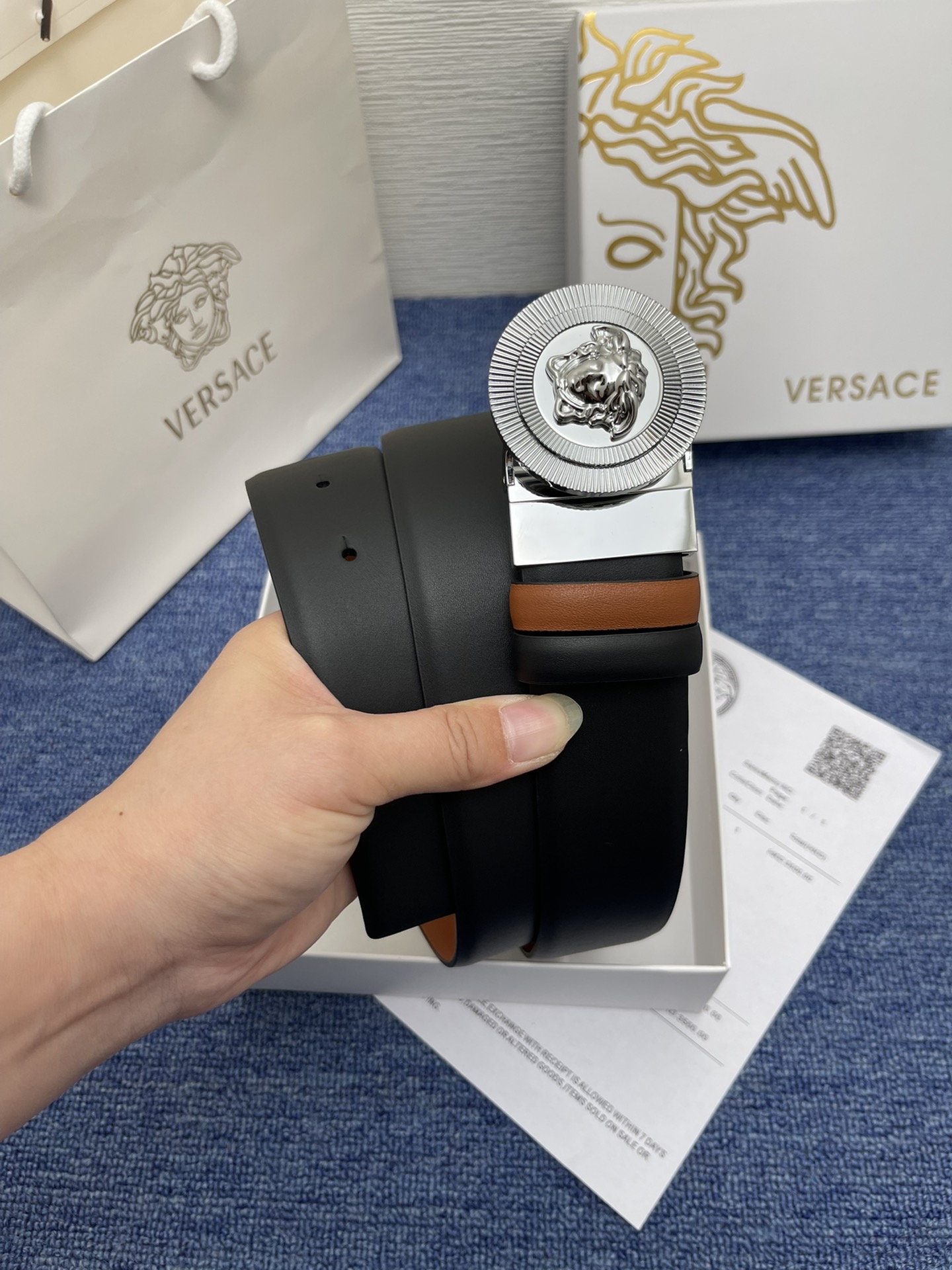 这款皮带是AAAAA 1:1 质量 (非常棒). 使用了和原版一模一样的材料. 商标部分也保持了和范思哲/Versace一样. 图片拍摄是实物皮带拍摄, 您所收到的实物保证和我们图片一模一样.