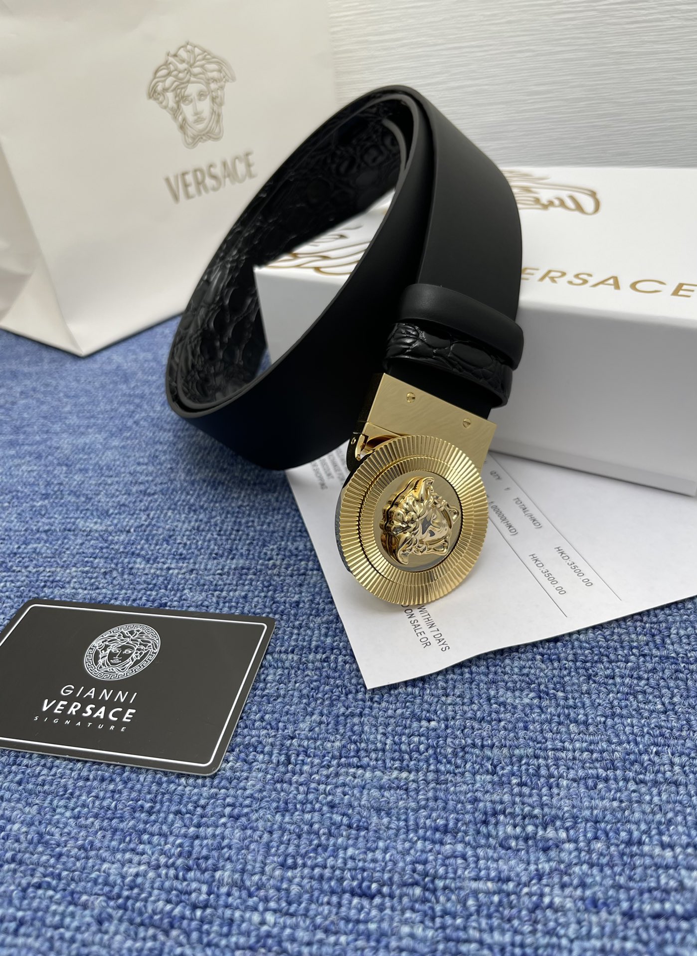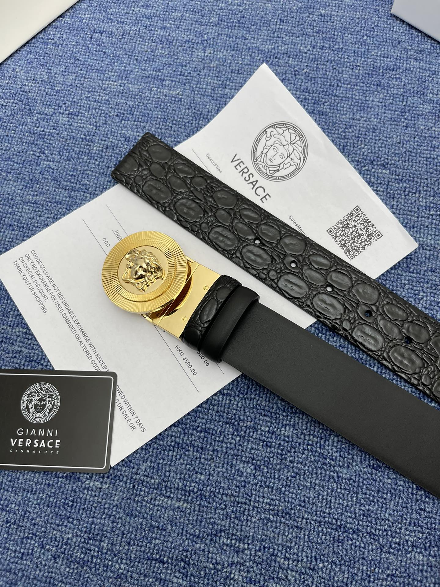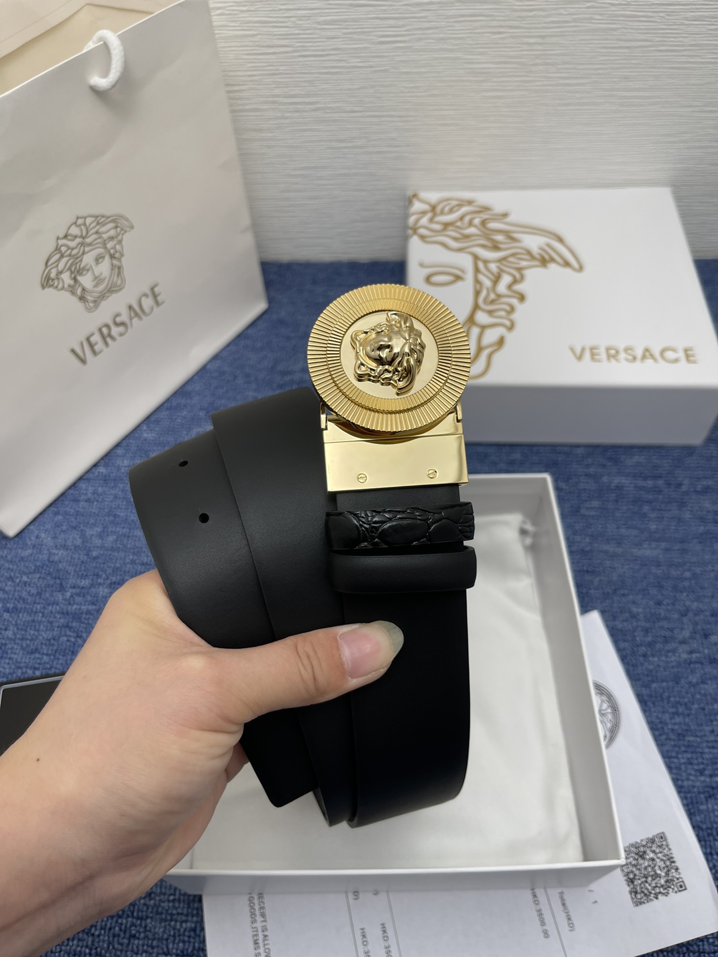 这款皮带是AAAAA 1:1 质量 (非常棒). 使用了和原版一模一样的材料. 商标部分也保持了和范思哲/Versace一样. 图片拍摄是实物皮带拍摄, 您所收到的实物保证和我们图片一模一样.