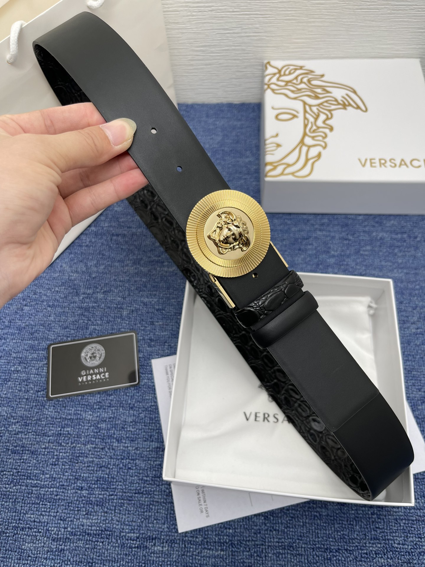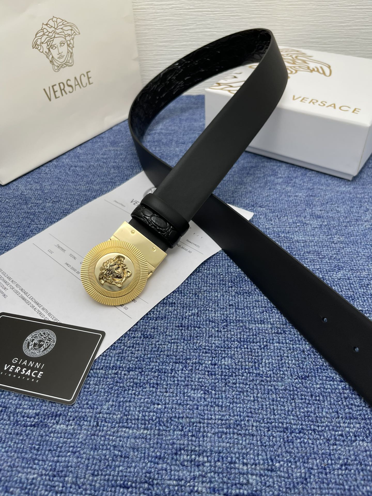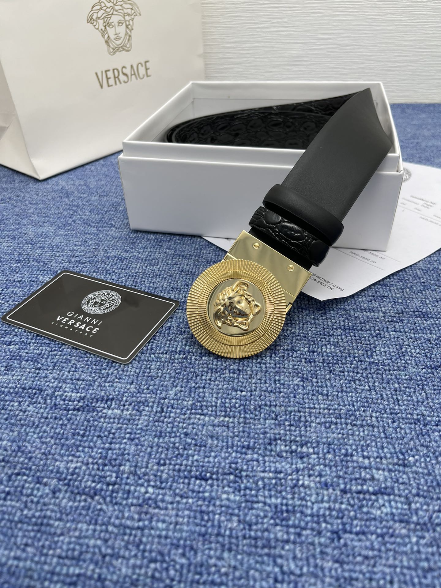 这款皮带是AAAAA 1:1 质量 (非常棒). 使用了和原版一模一样的材料. 商标部分也保持了和范思哲/Versace一样. 图片拍摄是实物皮带拍摄, 您所收到的实物保证和我们图片一模一样.