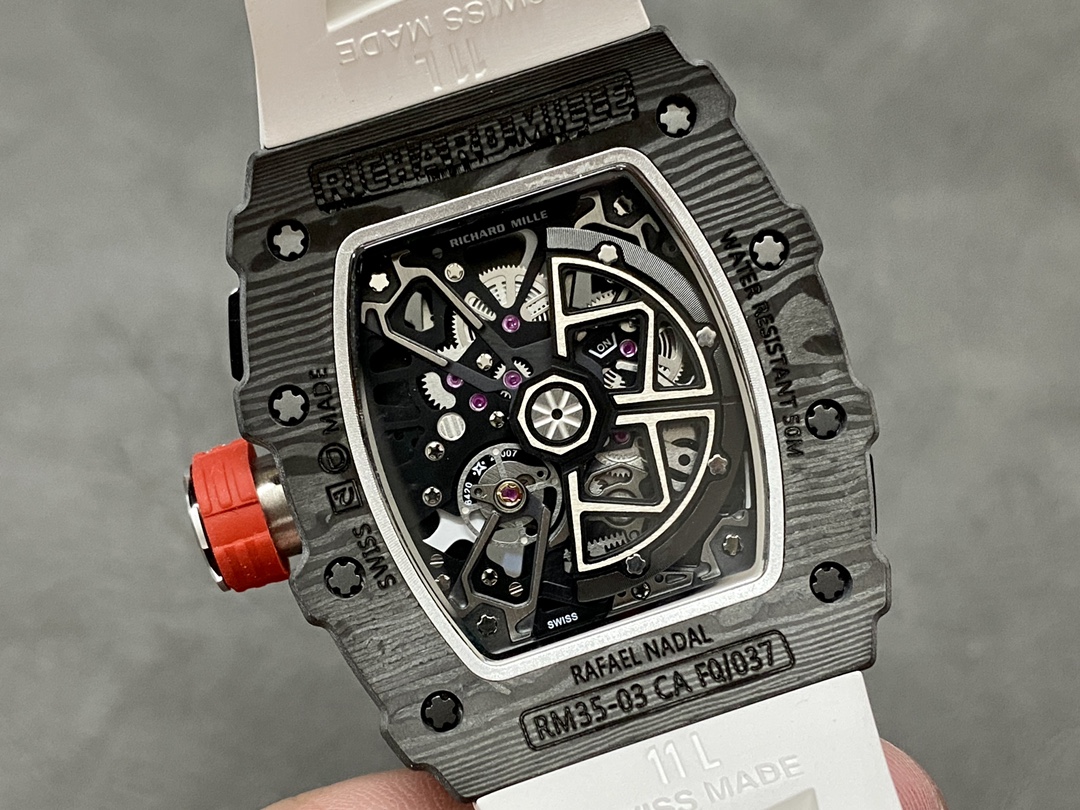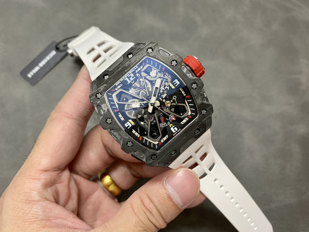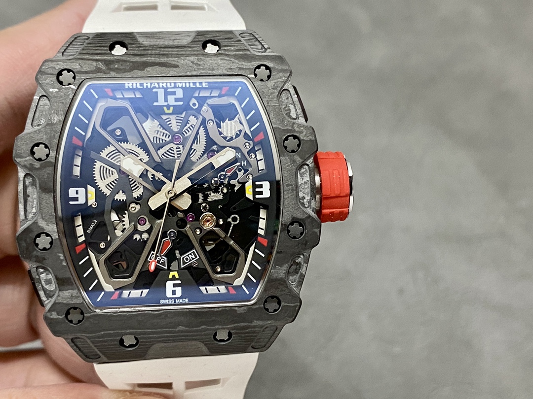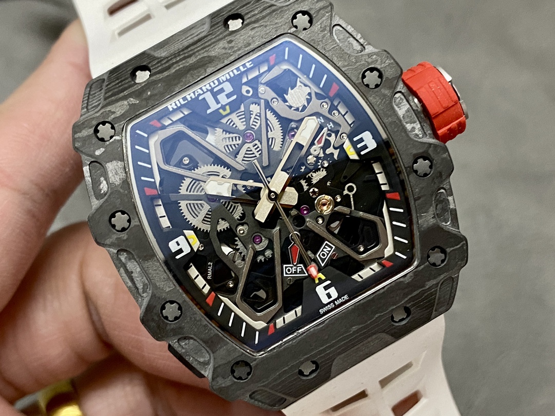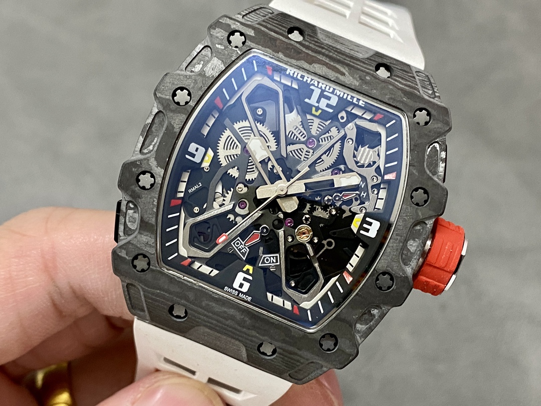 这款手表是AAAAA 1:1 质量 (非常棒). 使用了和原版一模一样的材料. 商标部分也保持了和理查德·米尔/Richard Mille一样. 图片拍摄是实物手表拍摄, 您所收到的实物保证和我们图片一模一样.