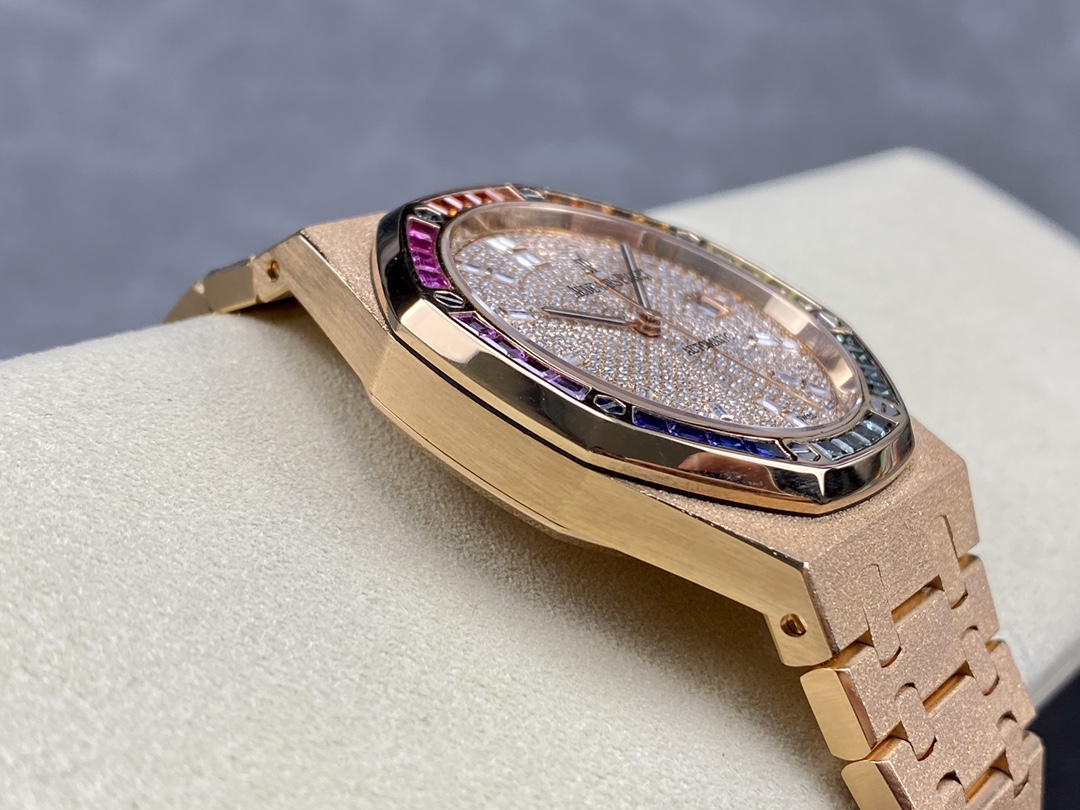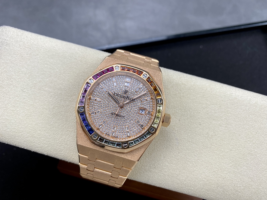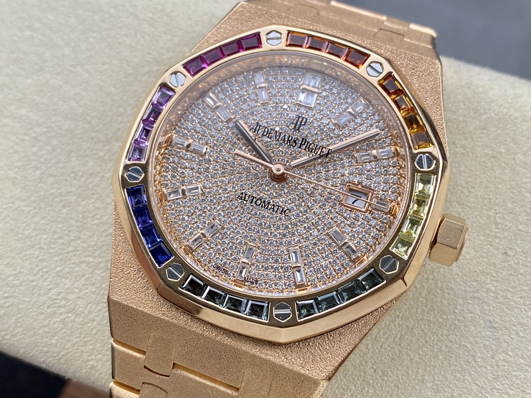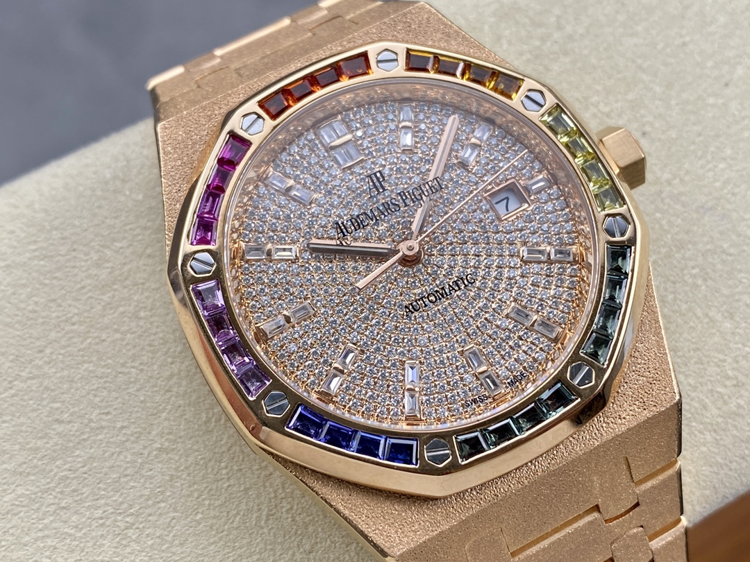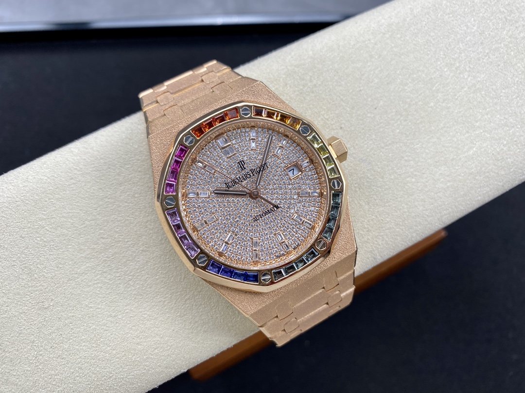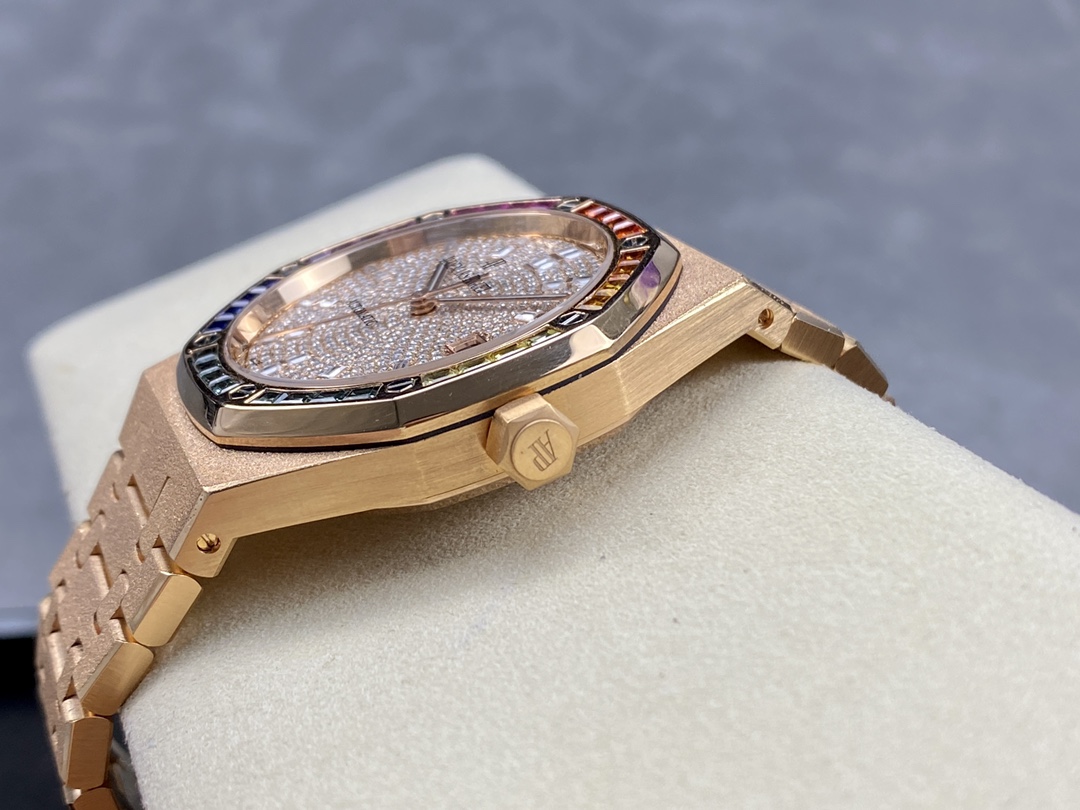 这款手表是AAAAA 1:1 质量 (非常棒). 使用了和原版一模一样的材料. 商标部分也保持了和爱彼/Audemars Piguet一样. 图片拍摄是实物手表拍摄, 您所收到的实物保证和我们图片一模一样.