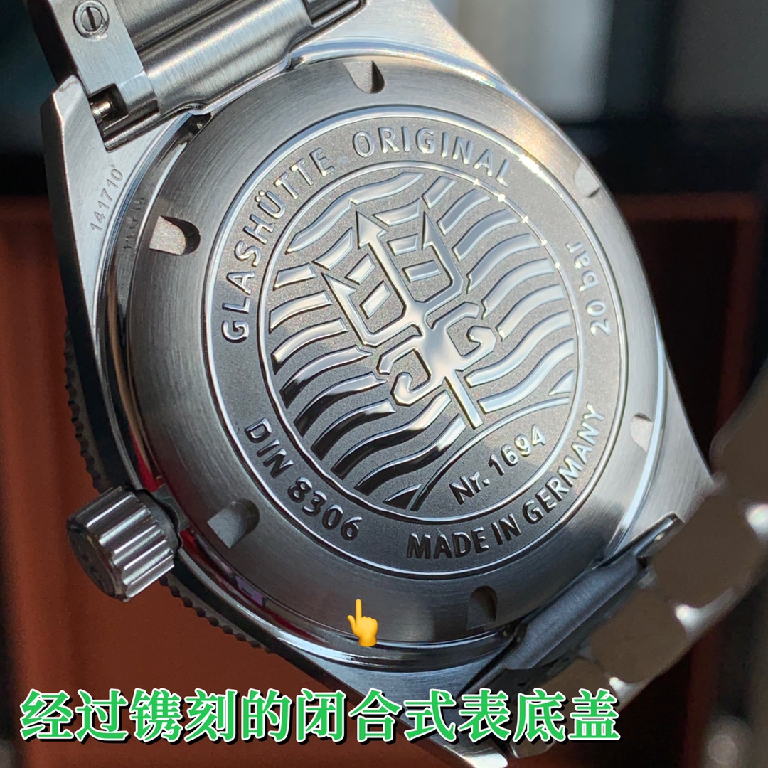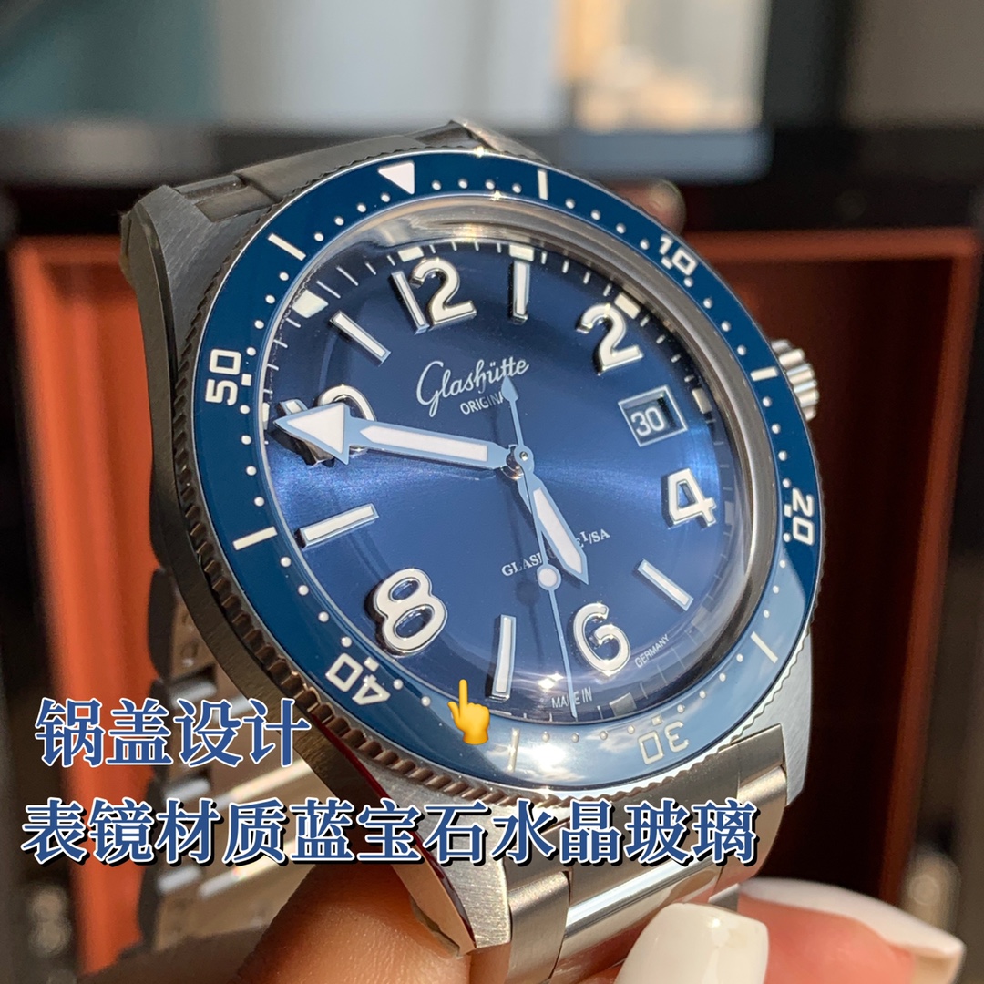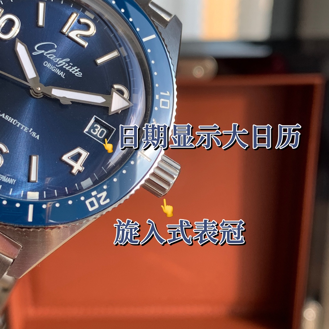 这款手表是AAAAA 1:1 质量 (非常棒). 使用了和原版一模一样的材料. 商标部分也保持了和格拉苏蒂/Glashütte Original一样. 图片拍摄是实物手表拍摄, 您所收到的实物保证和我们图片一模一样.