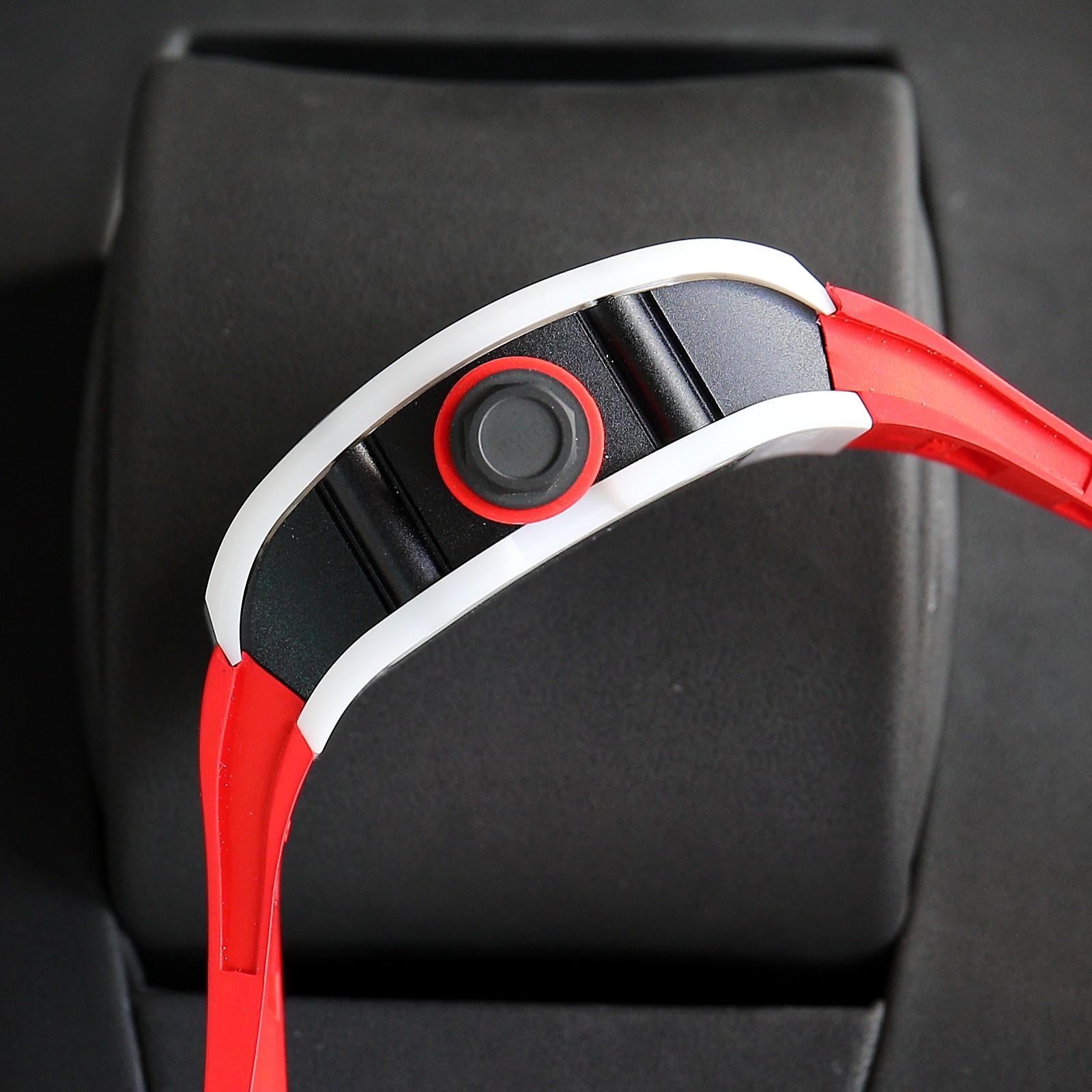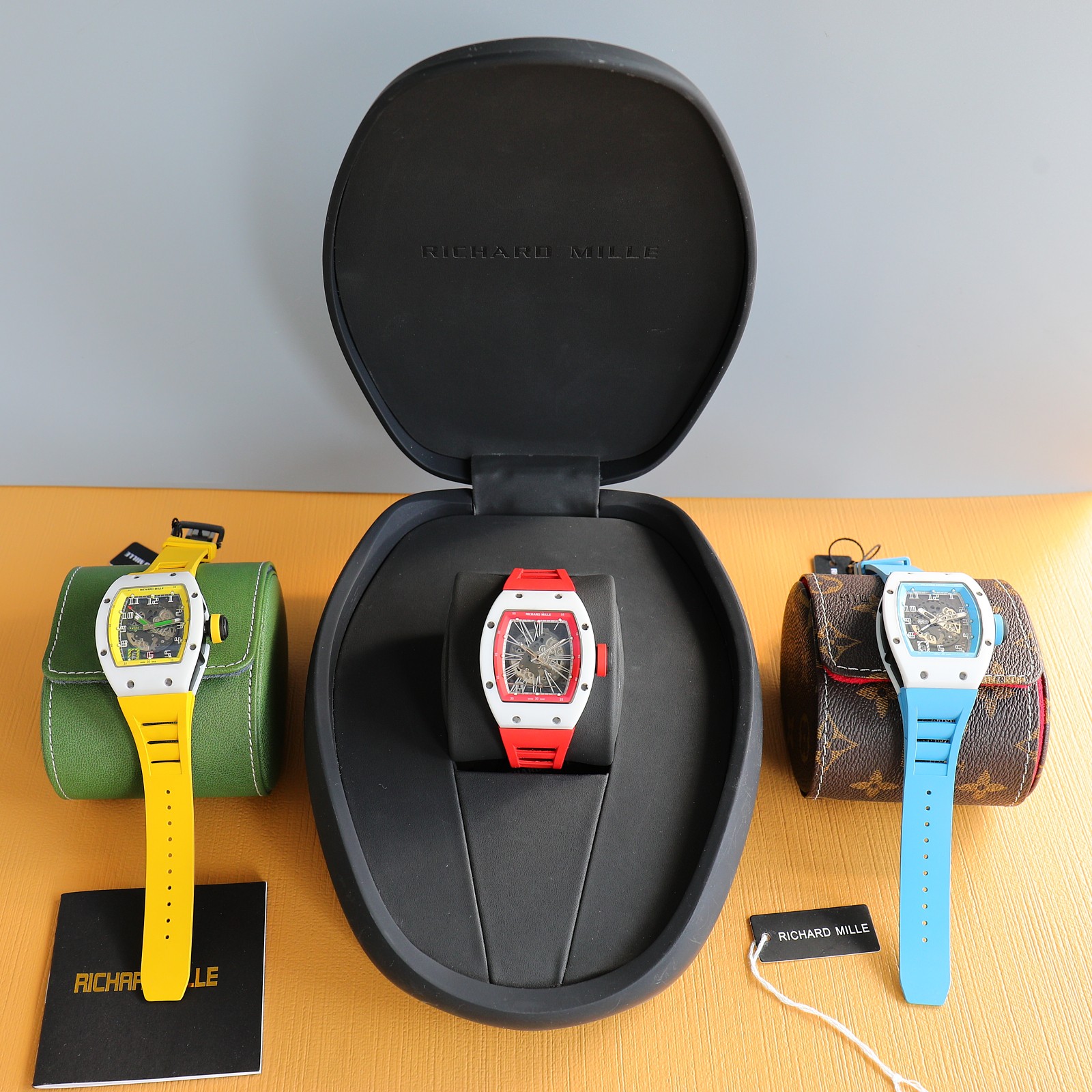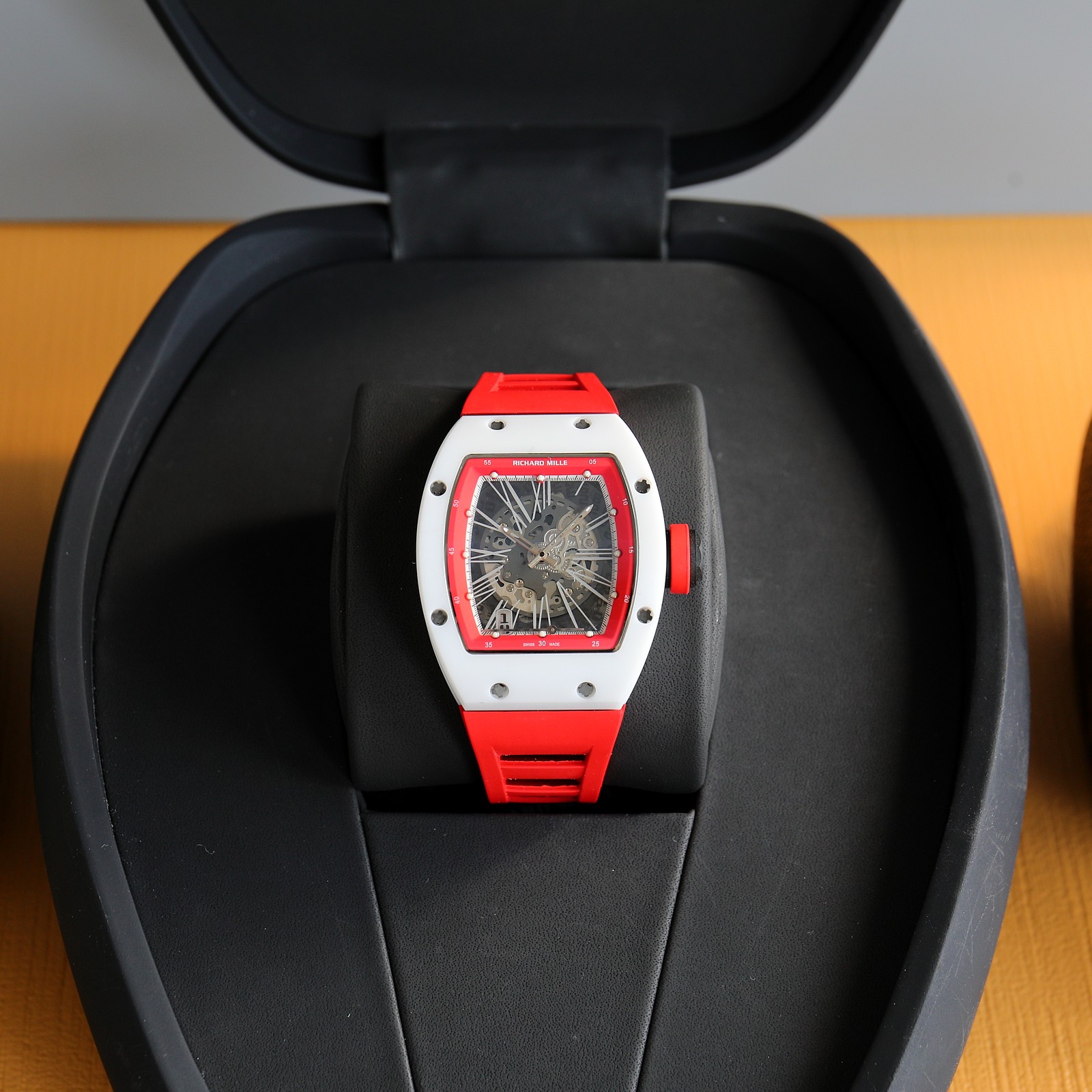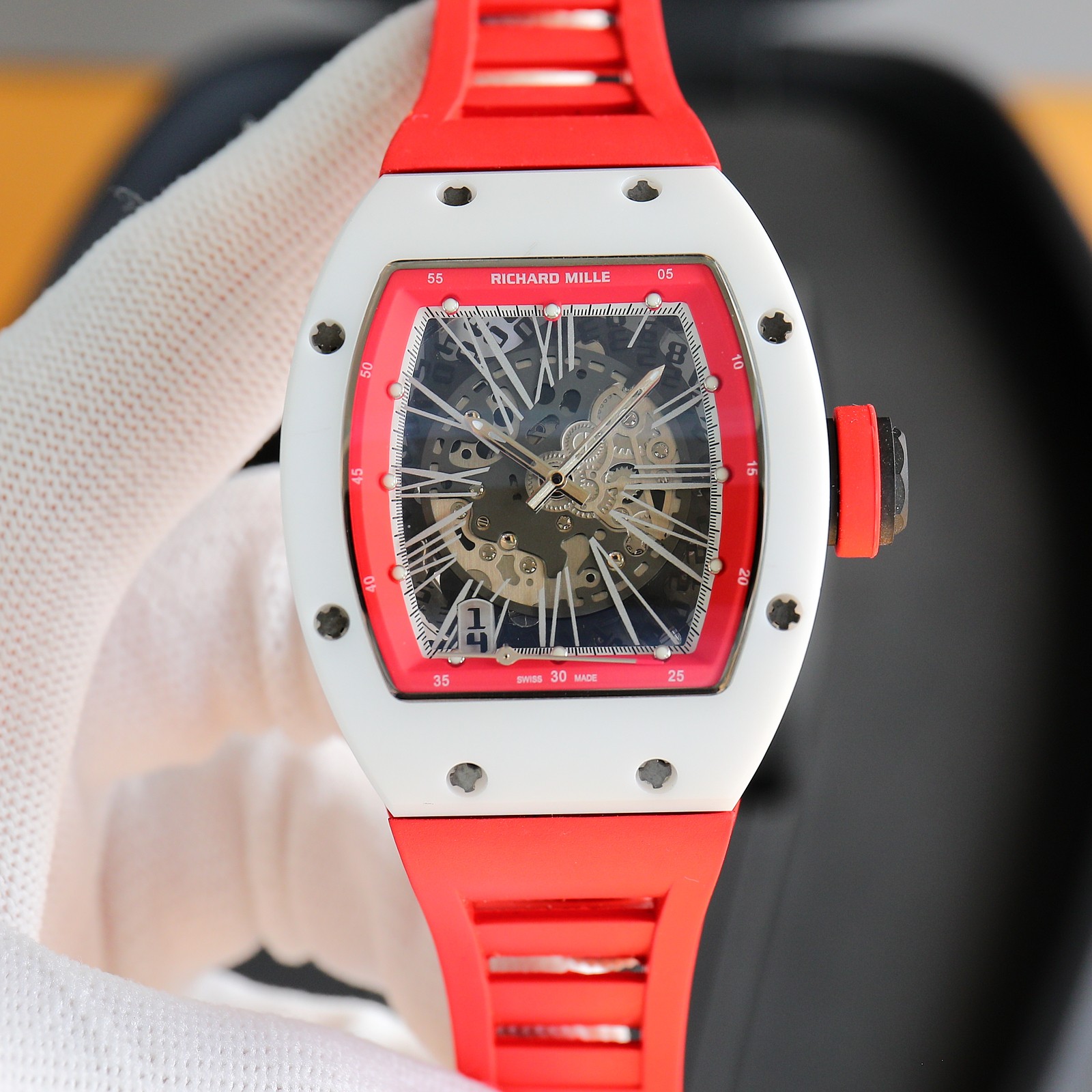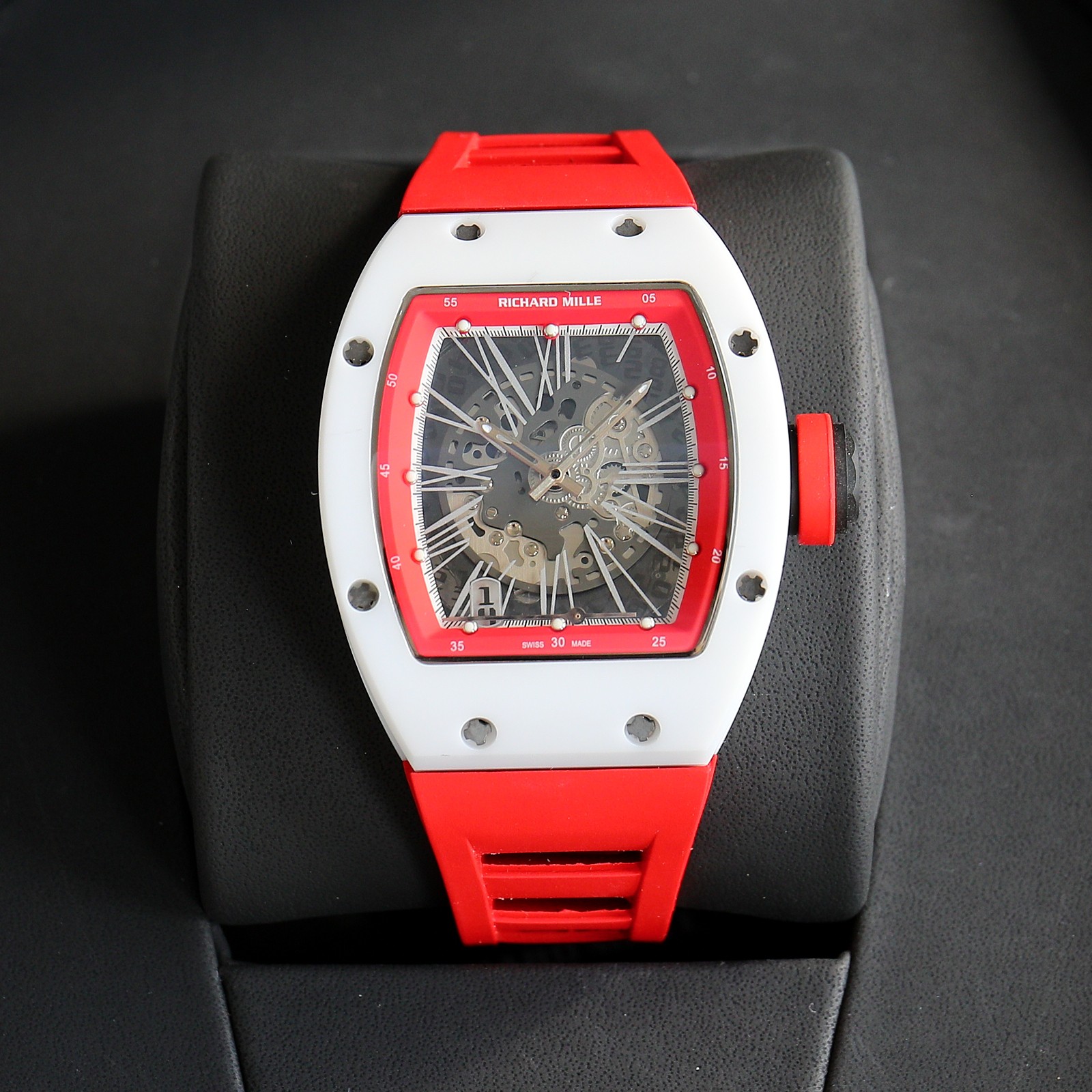 这款手表是AAAAA 1:1 质量 (非常棒). 使用了和原版一模一样的材料. 商标部分也保持了和理查德·米尔/Richard Mille一样. 图片拍摄是实物手表拍摄, 您所收到的实物保证和我们图片一模一样.