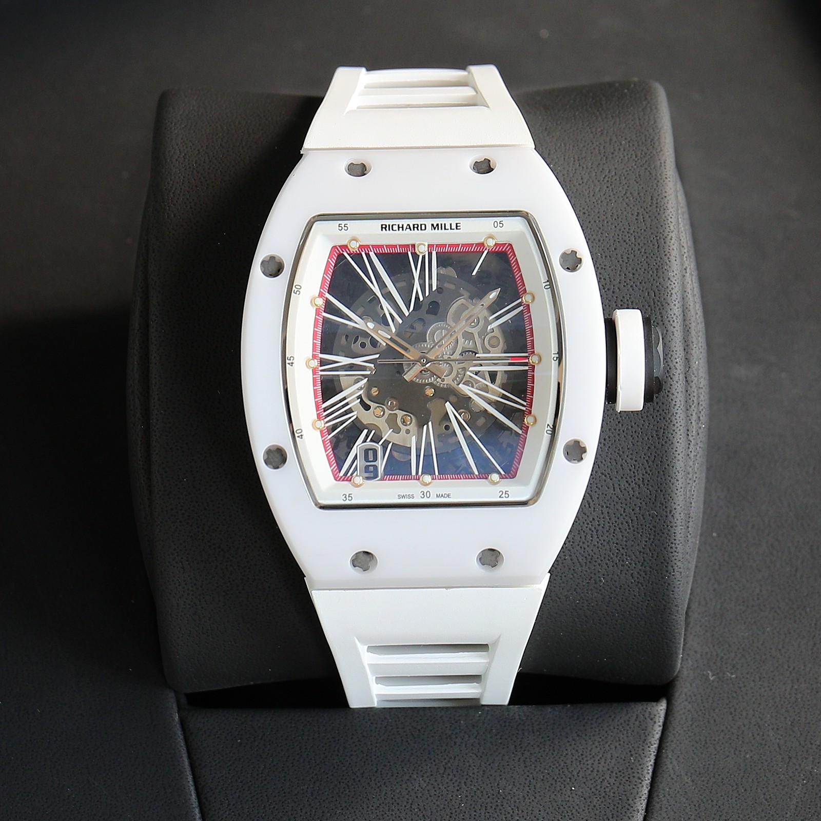 这款手表是AAAAA 1:1 质量 (非常棒). 使用了和原版一模一样的材料. 商标部分也保持了和理查德·米尔/Richard Mille一样. 图片拍摄是实物手表拍摄, 您所收到的实物保证和我们图片一模一样.