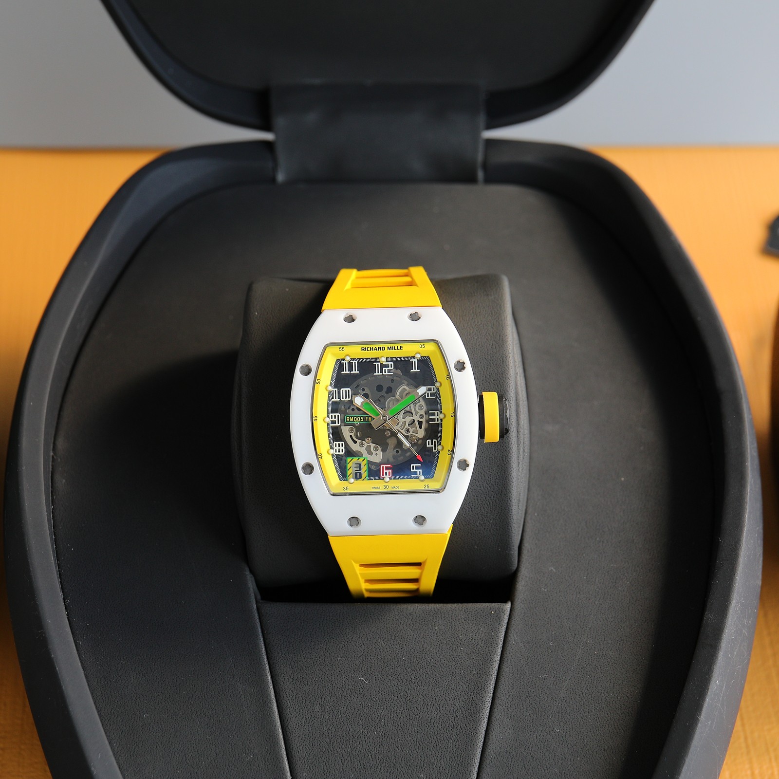 这款手表是AAAAA 1:1 质量 (非常棒). 使用了和原版一模一样的材料. 商标部分也保持了和理查德·米尔/Richard Mille一样. 图片拍摄是实物手表拍摄, 您所收到的实物保证和我们图片一模一样.