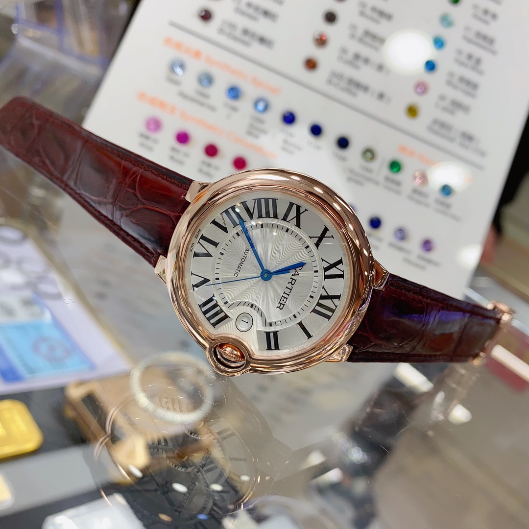 这款手表是AAAAA 1:1 质量 (非常棒). 使用了和原版一模一样的材料. 商标部分也保持了和卡地亚/Cartier一样. 图片拍摄是实物手表拍摄, 您所收到的实物保证和我们图片一模一样.