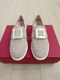 这款鞋子是AAAAA 1:1 质量 (非常棒). 使用了和原版一模一样的材料. 商标部分也保持了和罗杰维维耶/Roger Vivier一样. 图片拍摄是实物鞋子拍摄, 您所收到的实物保证和我们图片一模一样.