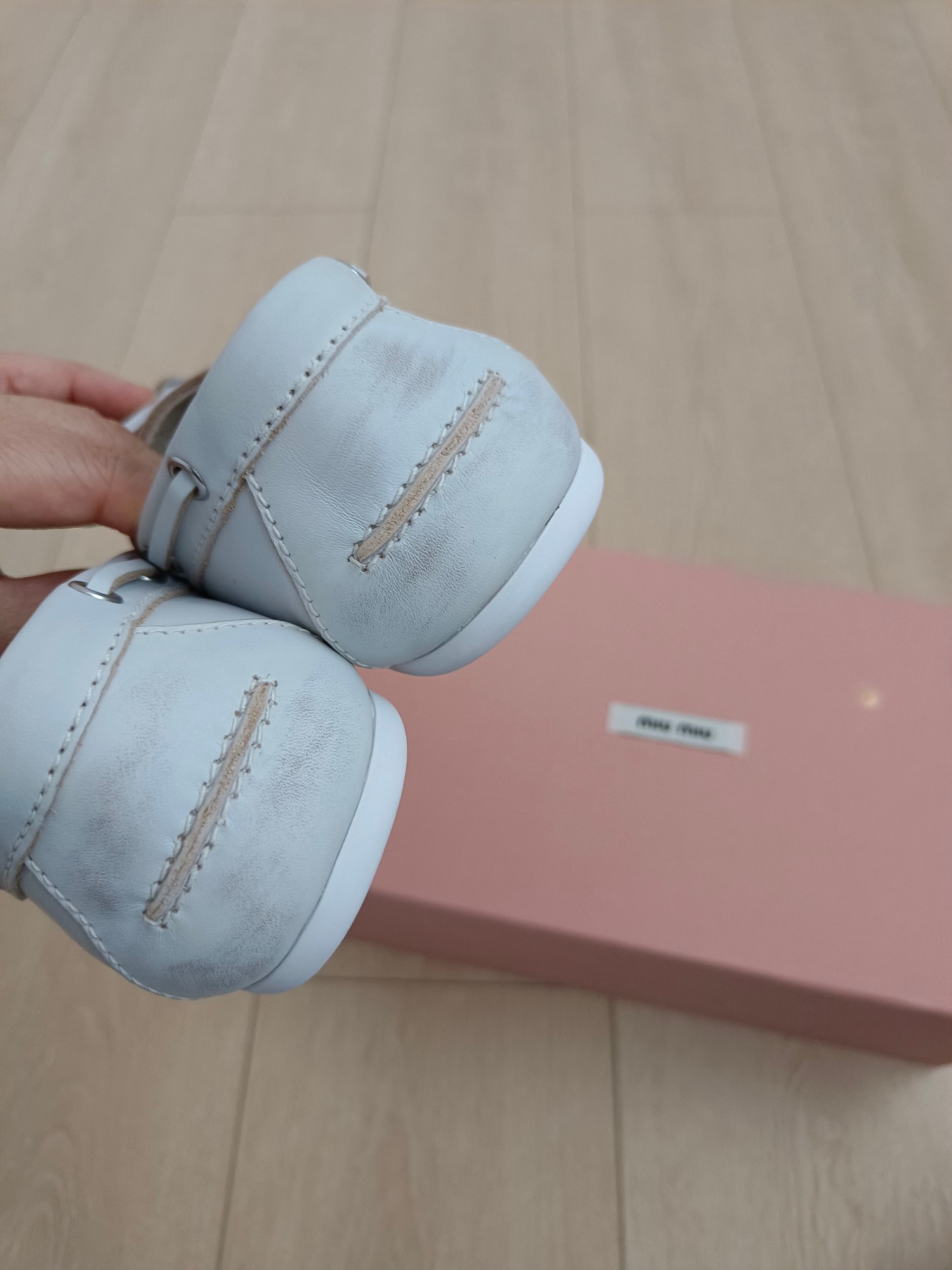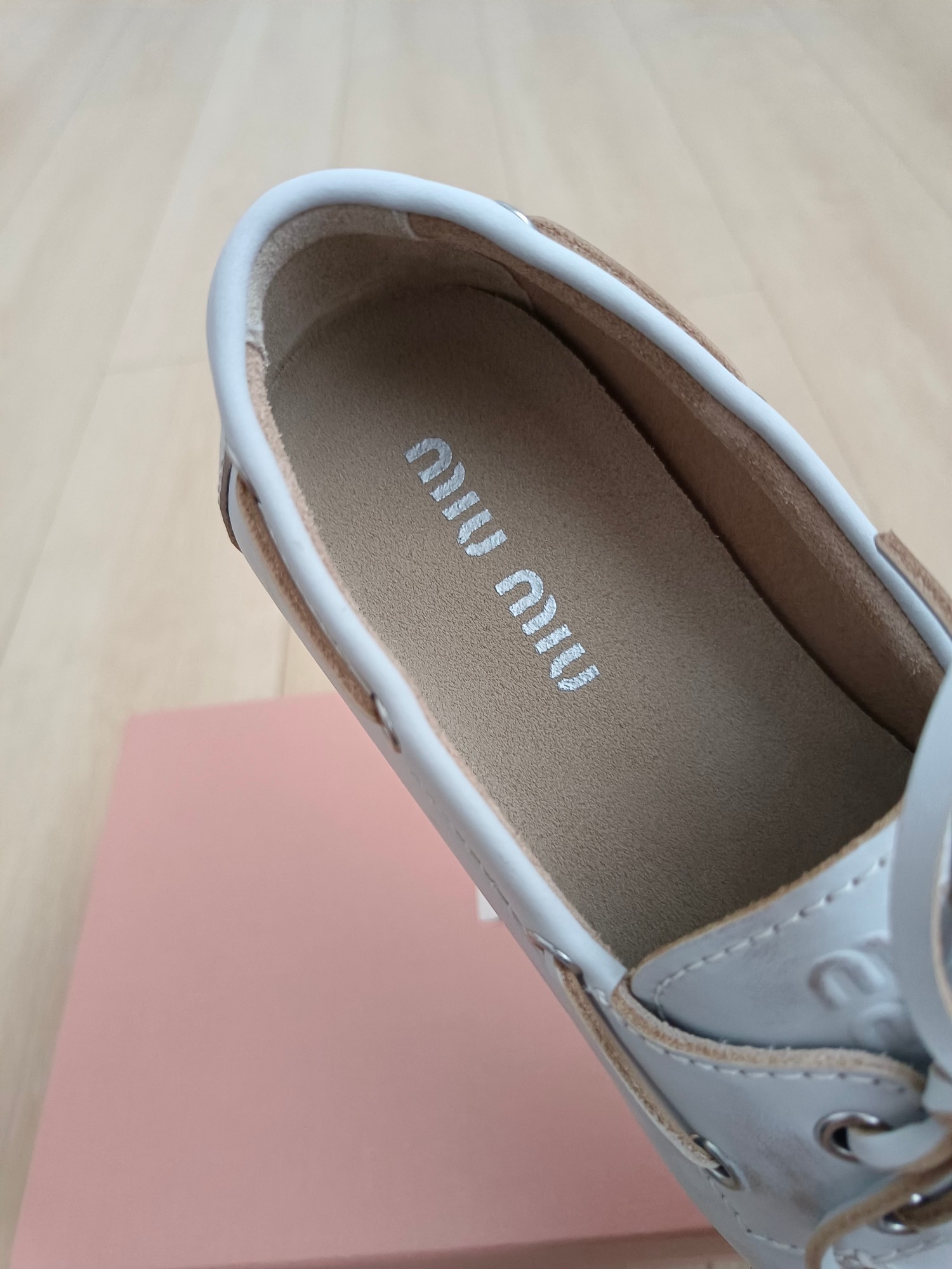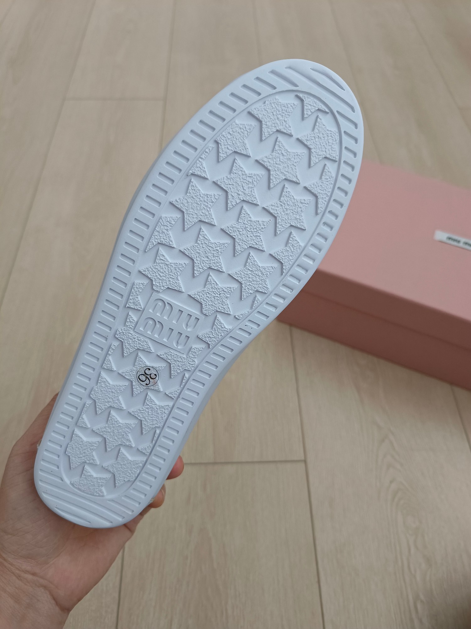 这款鞋子是AAAAA 1:1 质量 (非常棒). 使用了和原版一模一样的材料. 商标部分也保持了和缪缪/Miu Miu一样. 图片拍摄是实物鞋子拍摄, 您所收到的实物保证和我们图片一模一样.