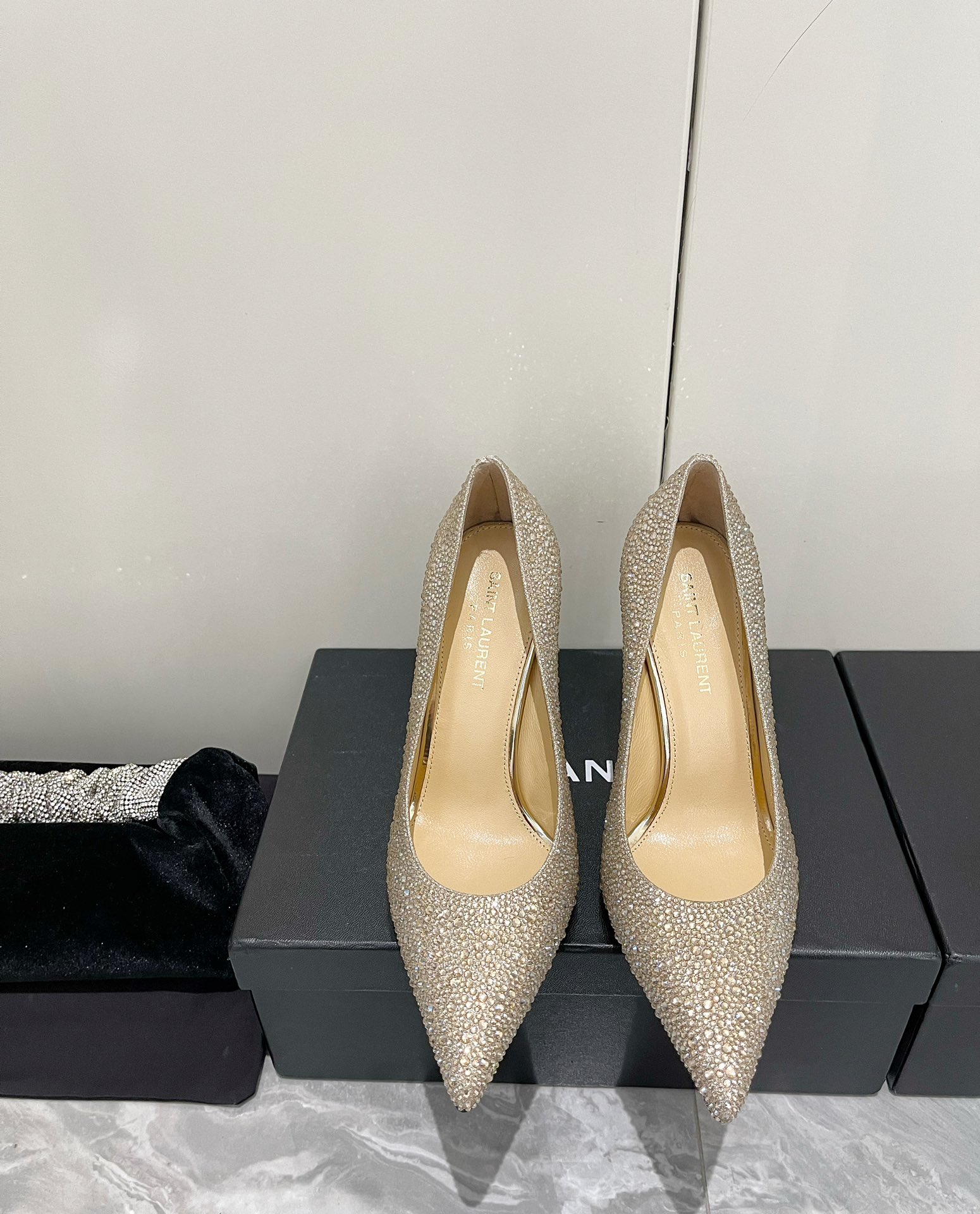 这款鞋子是AAAAA 1:1 质量 (非常棒). 使用了和原版一模一样的材料. 商标部分也保持了和圣罗兰/Saint Laurent一样. 图片拍摄是实物鞋子拍摄, 您所收到的实物保证和我们图片一模一样.