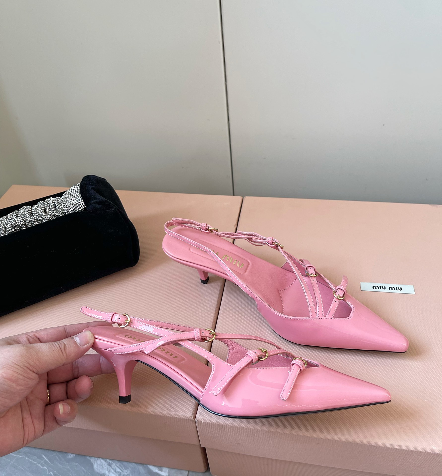 这款鞋子是AAAAA 1:1 质量 (非常棒). 使用了和原版一模一样的材料. 商标部分也保持了和缪缪/Miu Miu一样. 图片拍摄是实物鞋子拍摄, 您所收到的实物保证和我们图片一模一样.