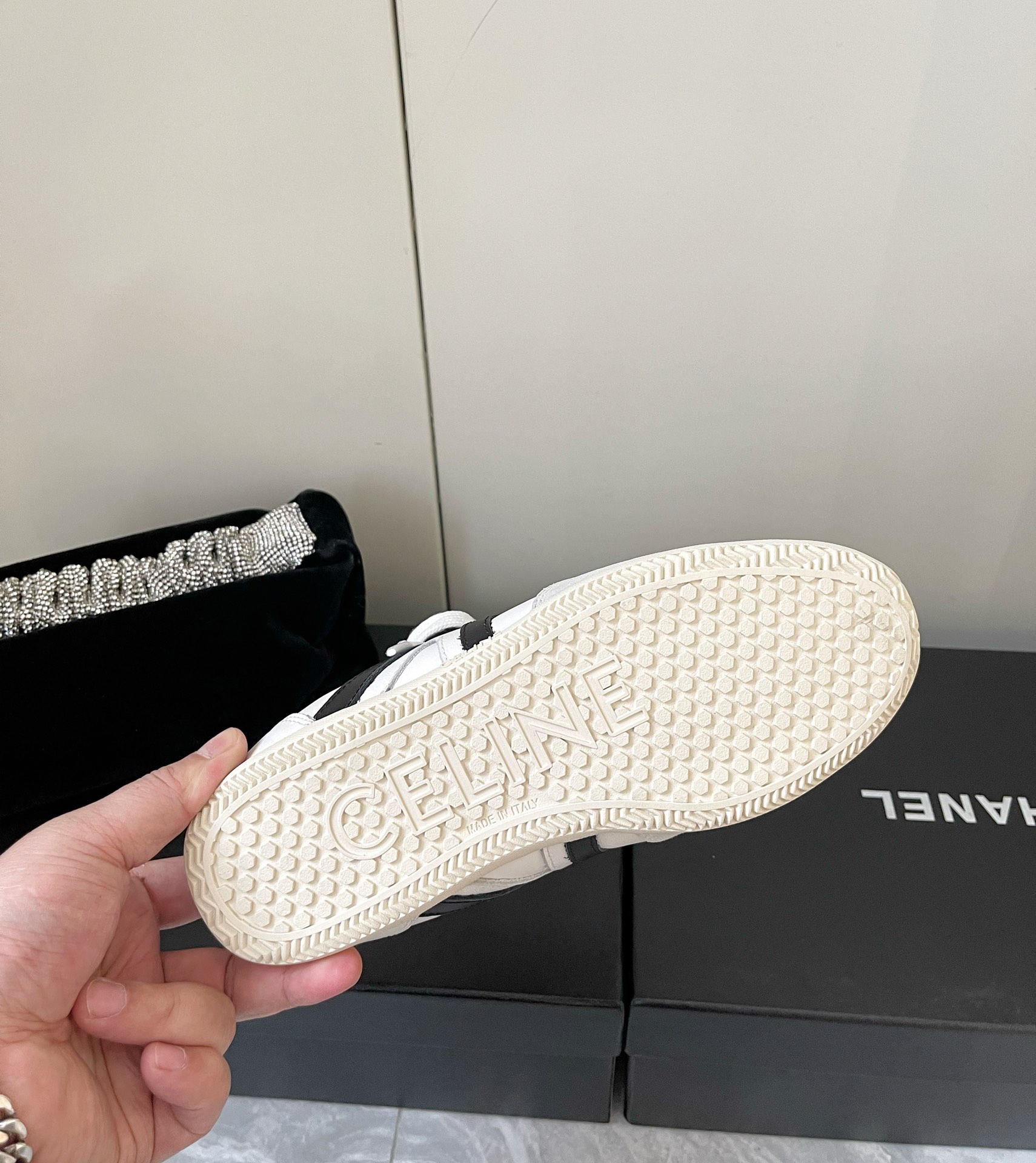 这款鞋子是AAAAA 1:1 质量 (非常棒). 使用了和原版一模一样的材料. 商标部分也保持了和思琳/Celine一样. 图片拍摄是实物鞋子拍摄, 您所收到的实物保证和我们图片一模一样.