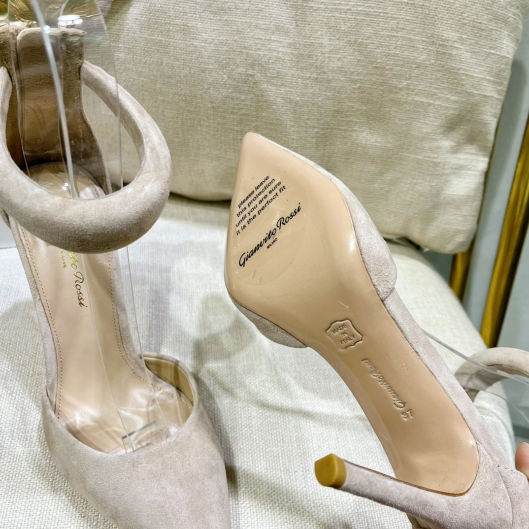 这款鞋子是AAAAA 1:1 质量 (非常棒). 使用了和原版一模一样的材料. 商标部分也保持了和Gianvito Rossi一样. 图片拍摄是实物鞋子拍摄, 您所收到的实物保证和我们图片一模一样.