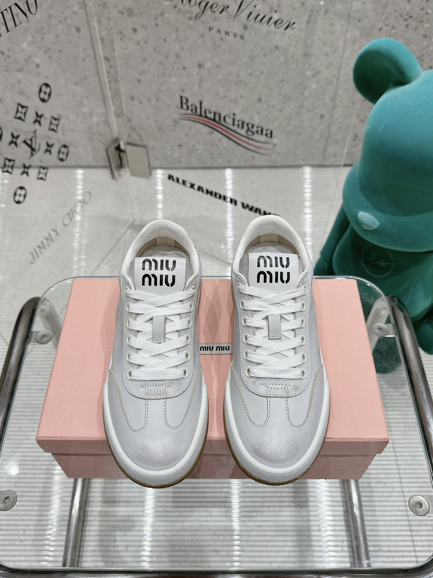 这款鞋子是AAAAA 1:1 质量 (非常棒). 使用了和原版一模一样的材料. 商标部分也保持了和缪缪/Miu Miu一样. 图片拍摄是实物鞋子拍摄, 您所收到的实物保证和我们图片一模一样.