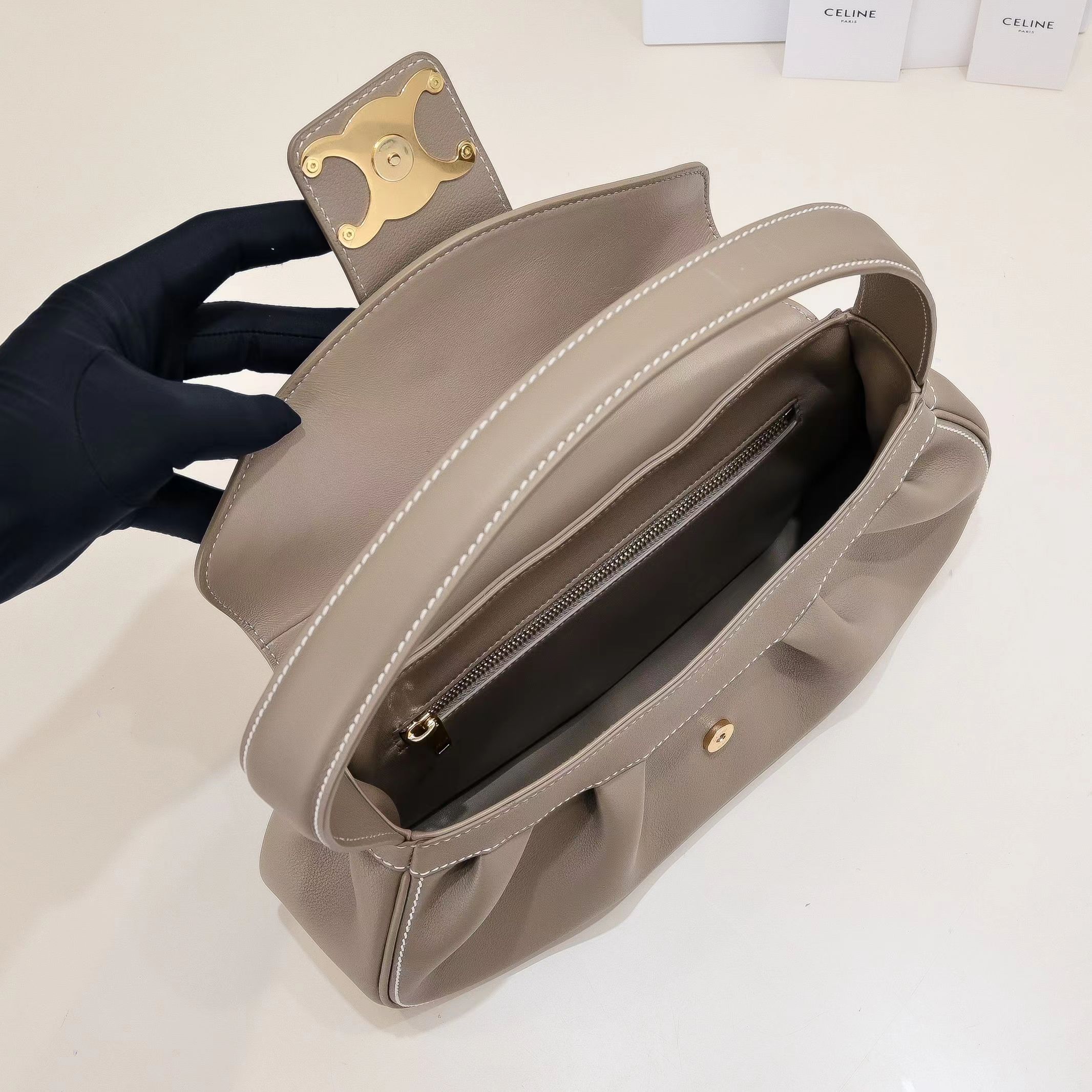 这款包包是AAAAA 1:1 质量 (非常棒). 使用了和原版一模一样的材料. 商标部分也保持了和思琳/Celine一样. 图片拍摄是实物包包拍摄, 您所收到的实物保证和我们图片一模一样.