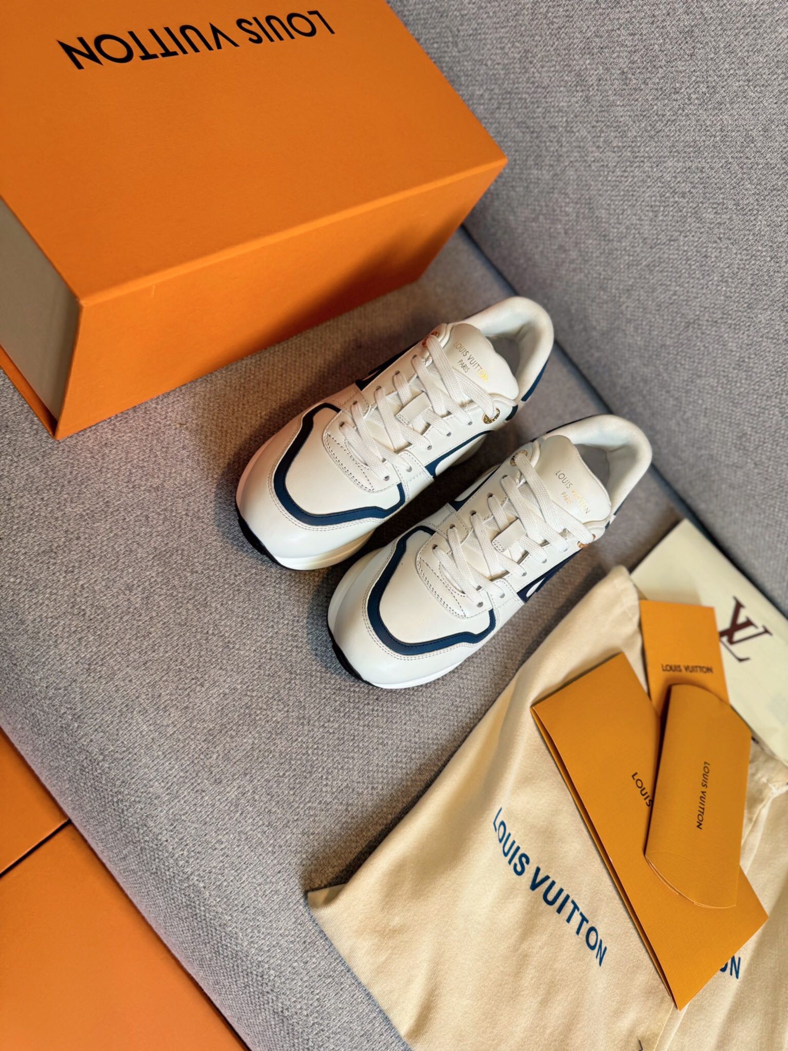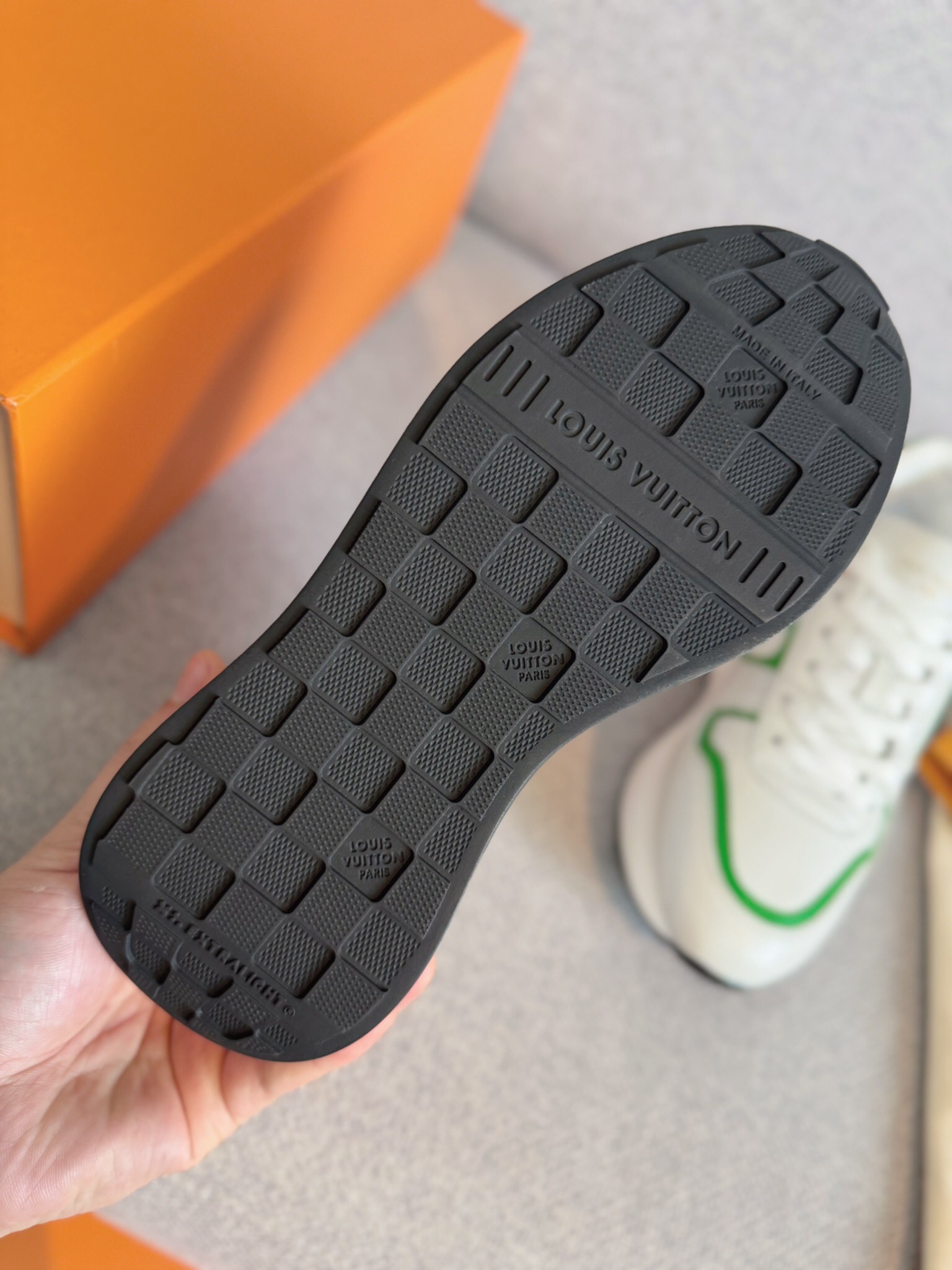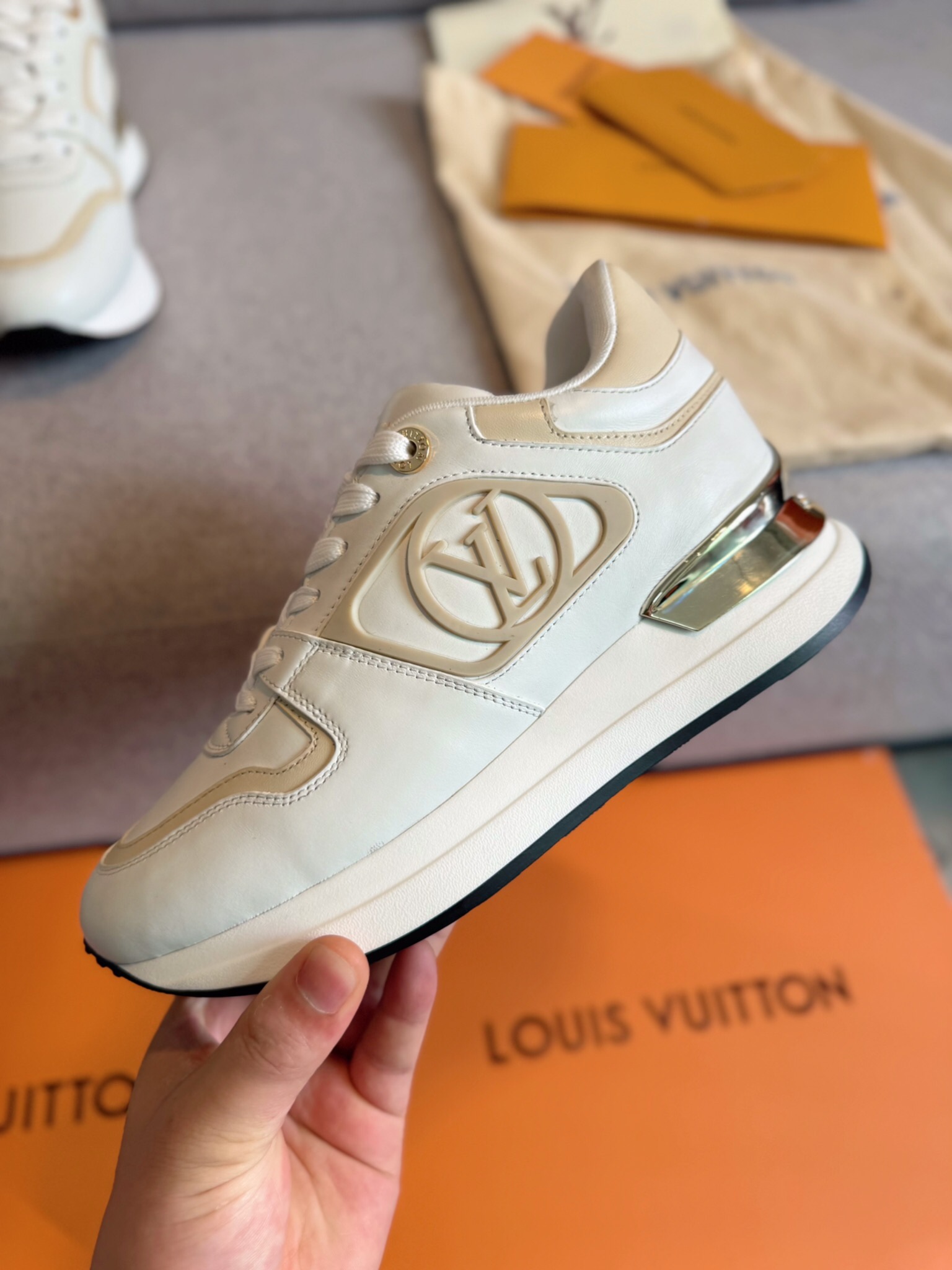 这款鞋子是AAAAA 1:1 质量 (非常棒). 使用了和原版一模一样的材料. 商标部分也保持了和路易威登/Louis Vuitton一样. 图片拍摄是实物鞋子拍摄, 您所收到的实物保证和我们图片一模一样.