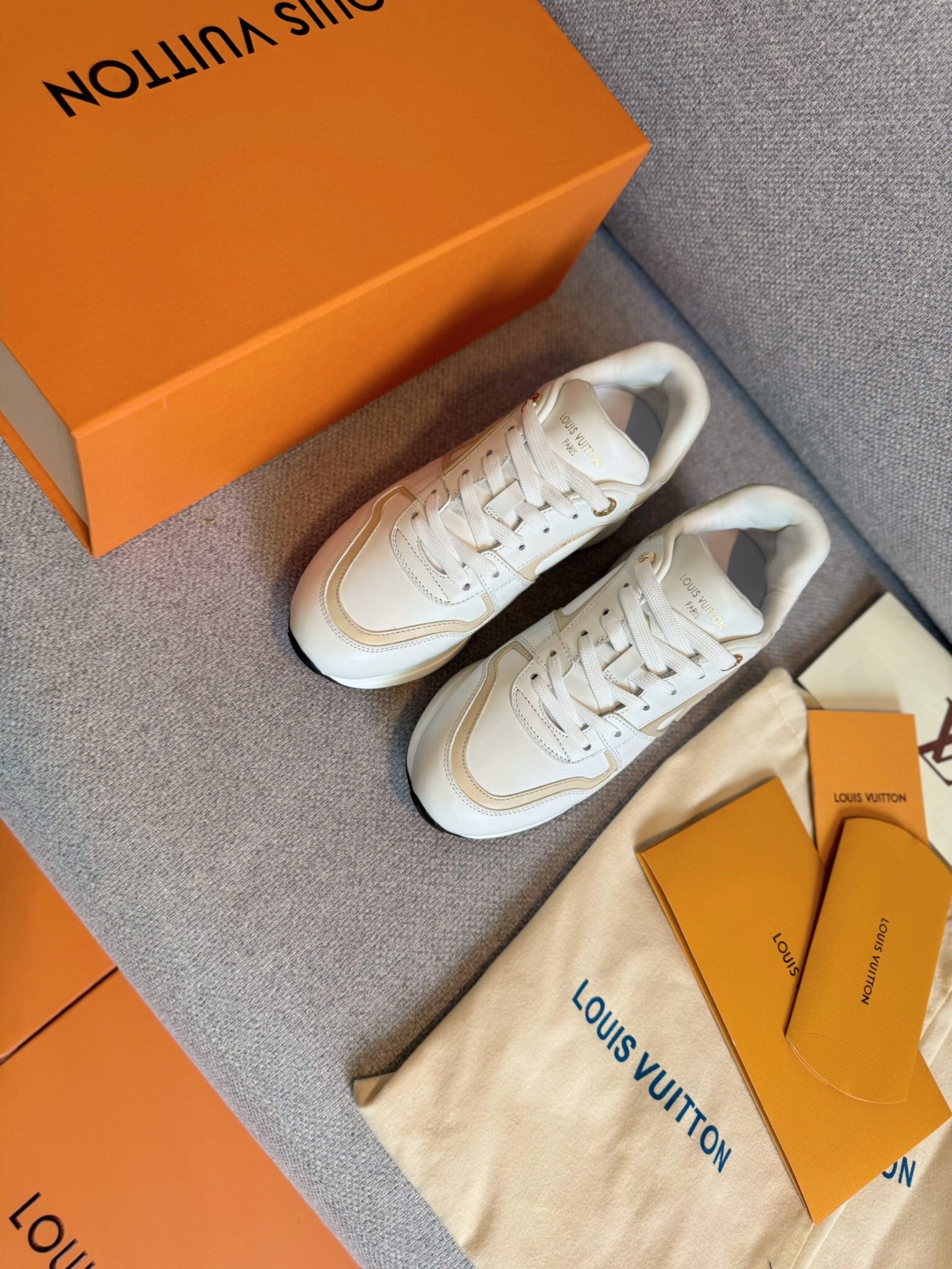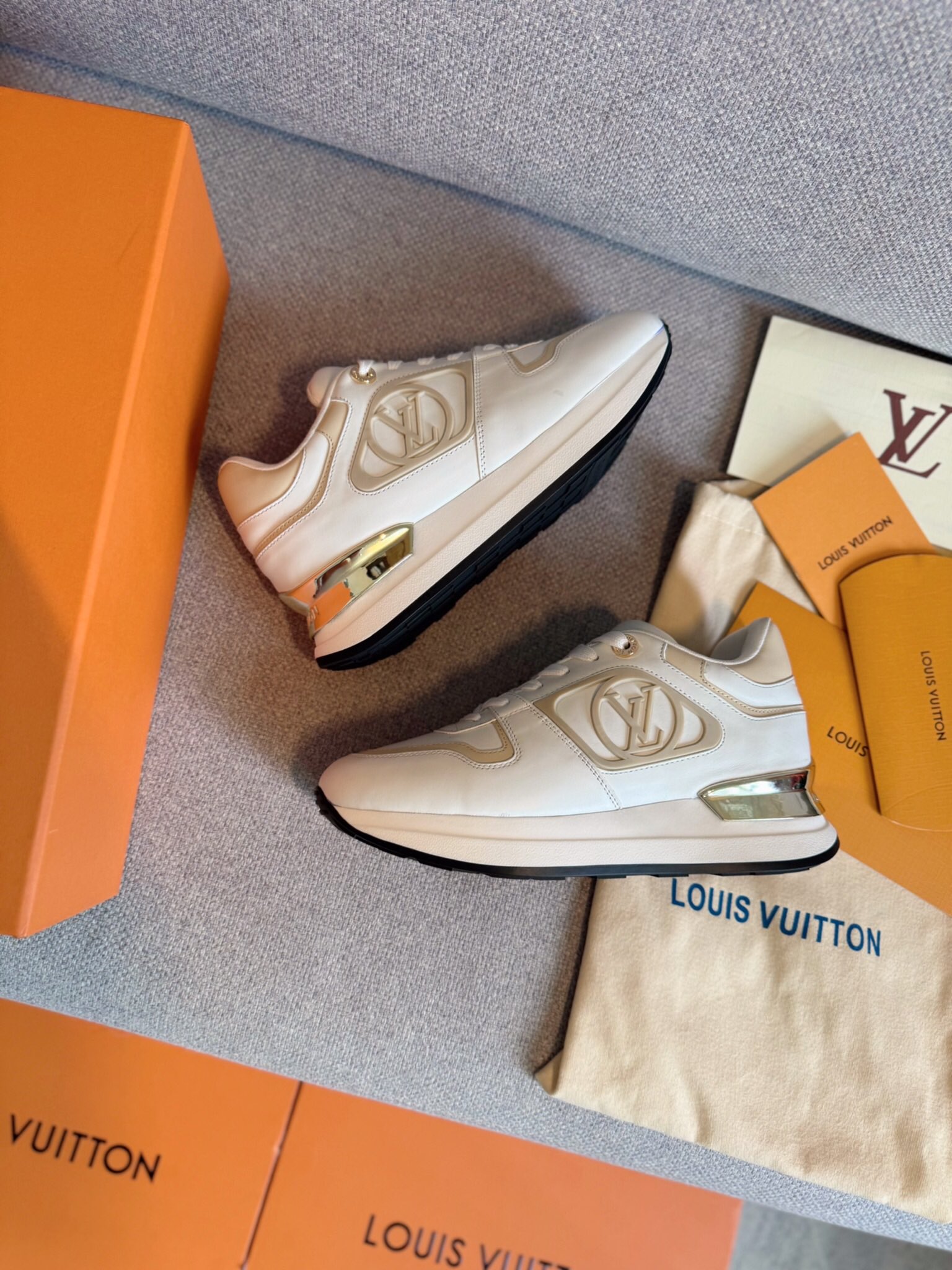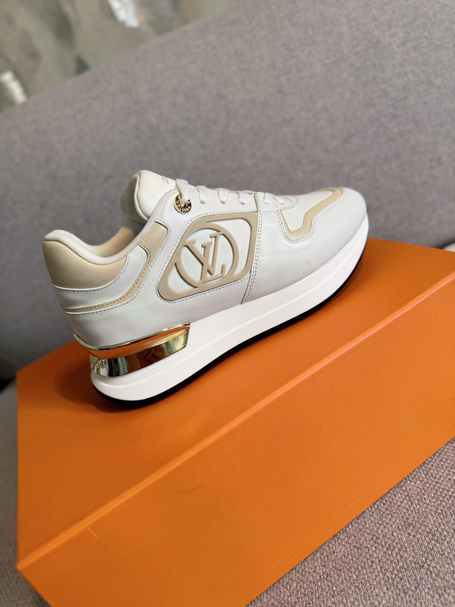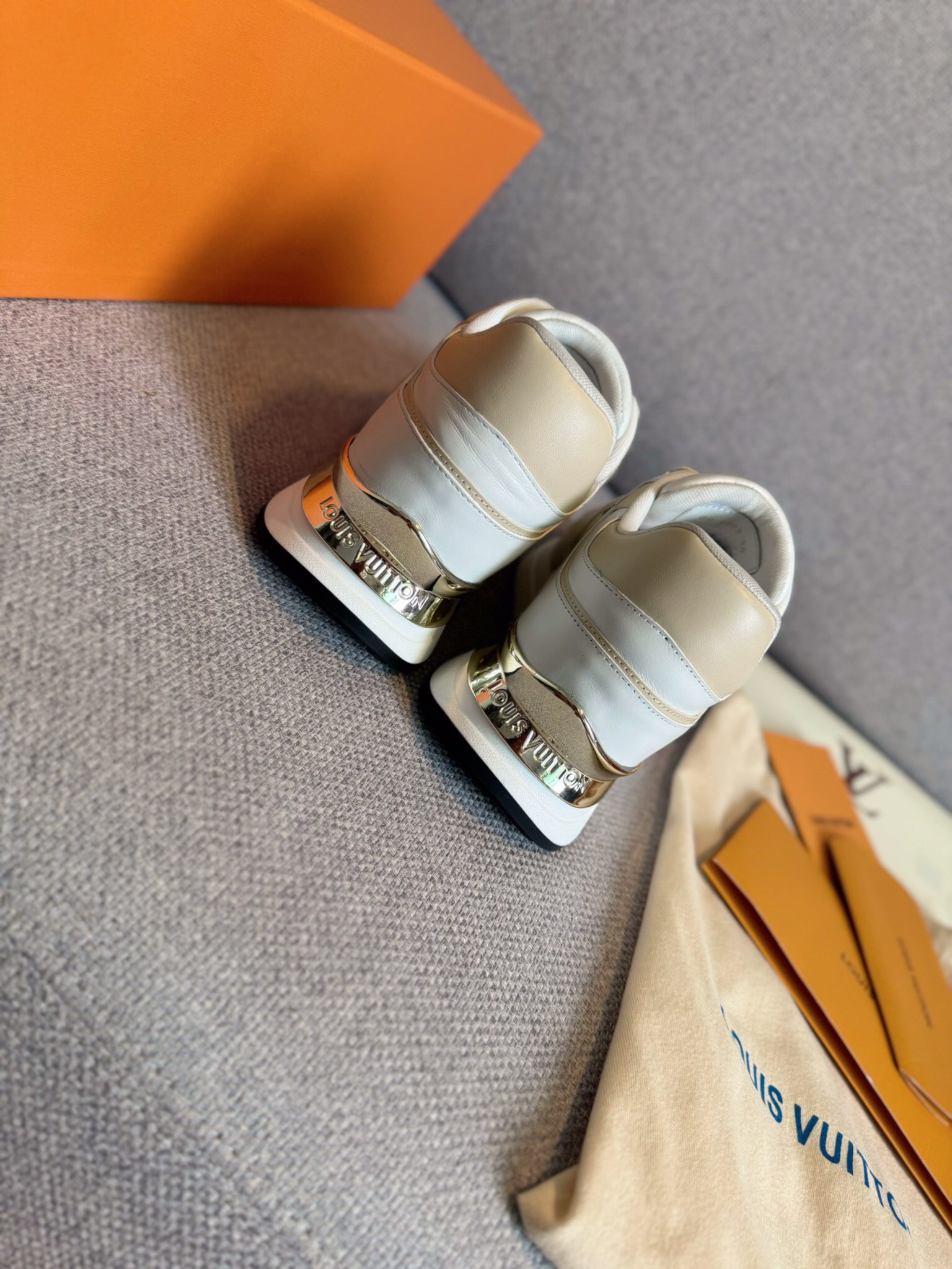 这款鞋子是AAAAA 1:1 质量 (非常棒). 使用了和原版一模一样的材料. 商标部分也保持了和路易威登/Louis Vuitton一样. 图片拍摄是实物鞋子拍摄, 您所收到的实物保证和我们图片一模一样.