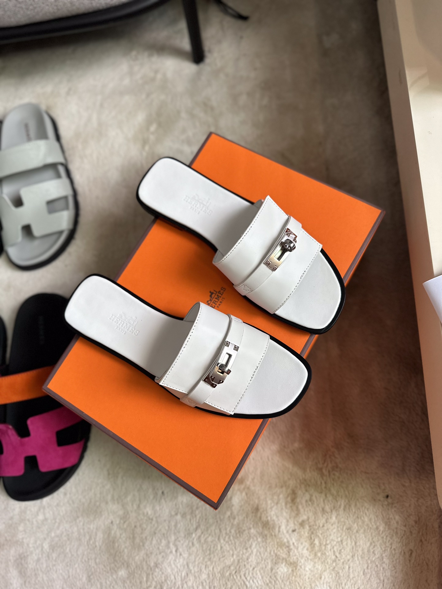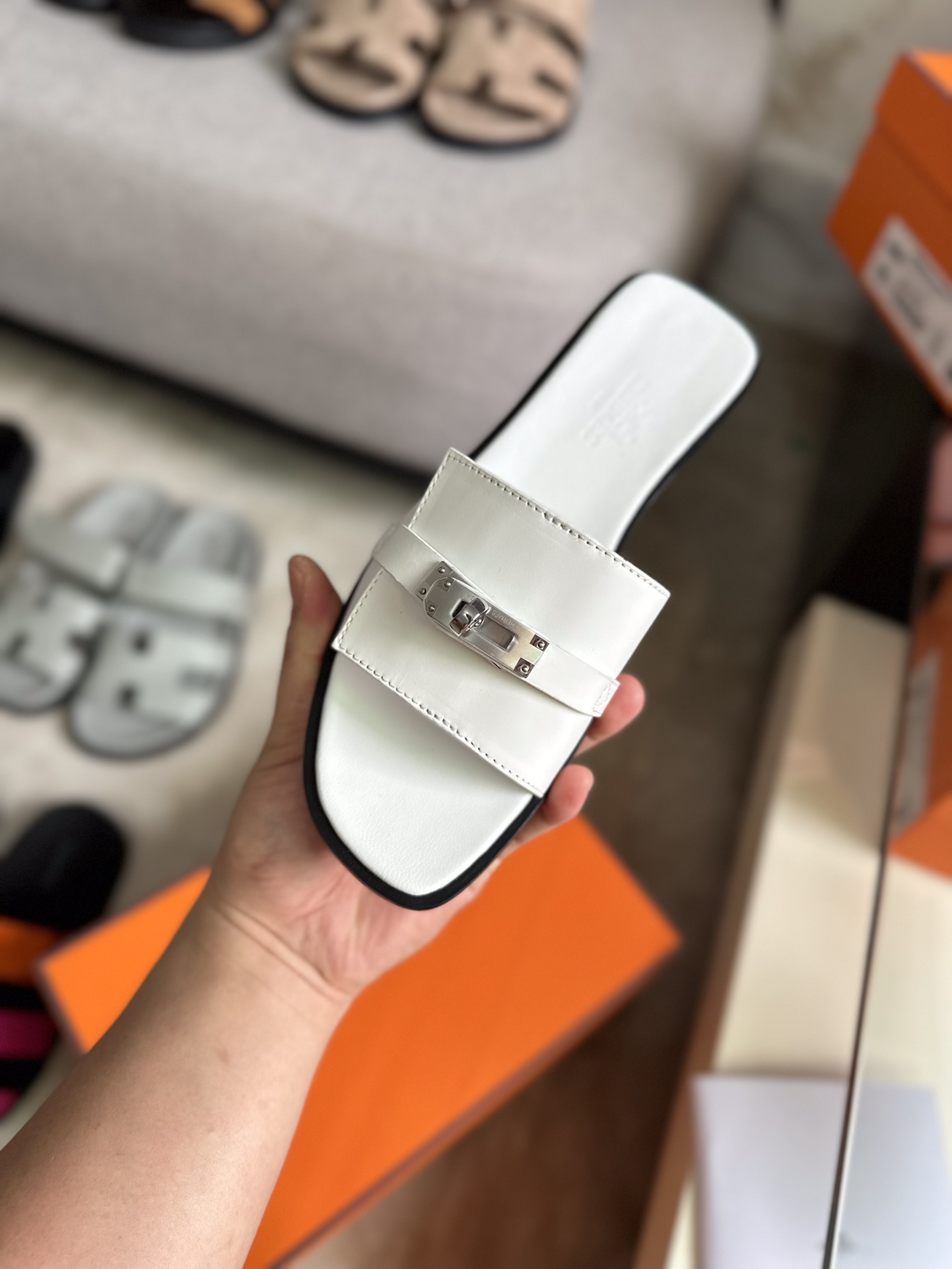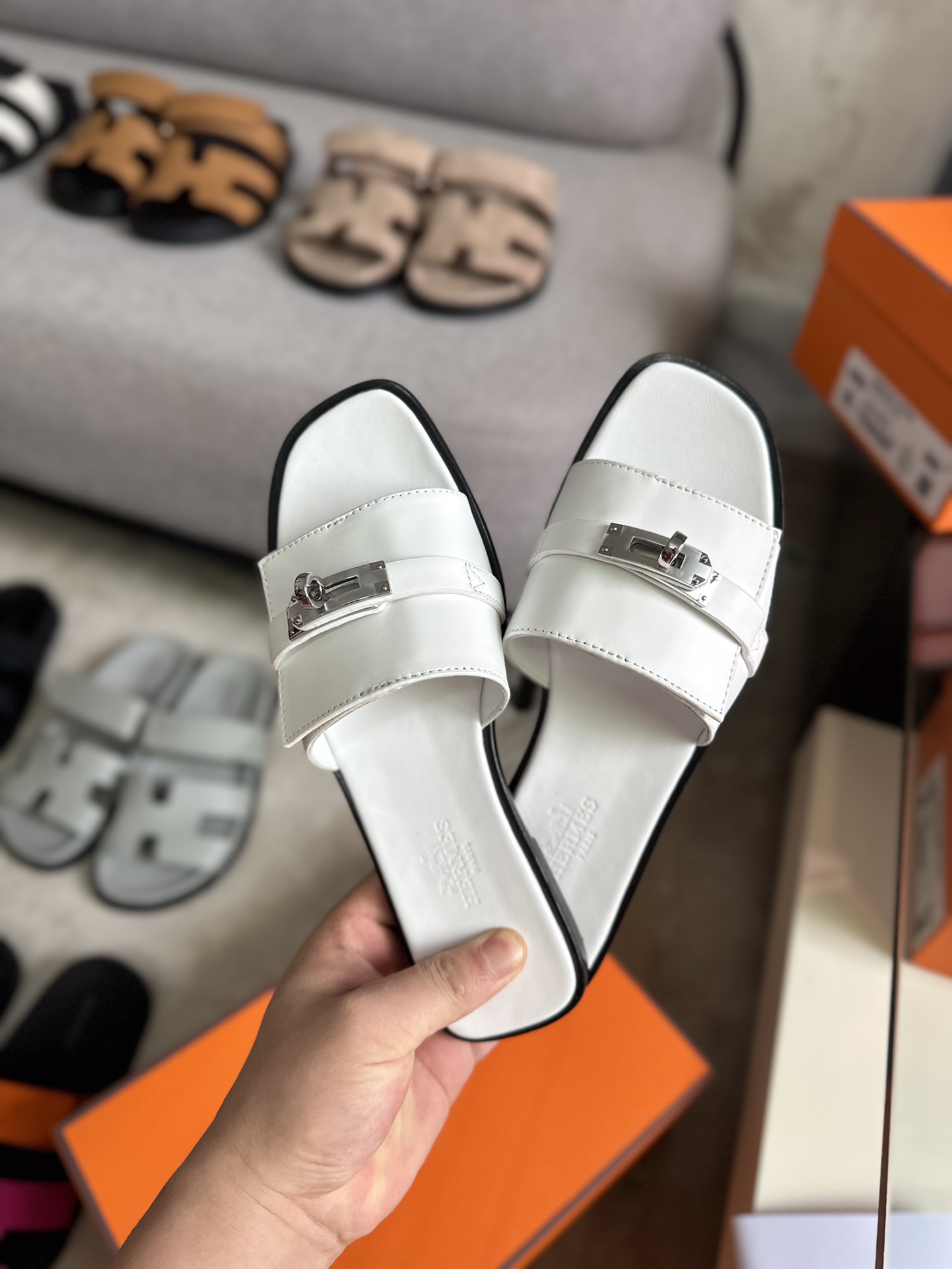 这款鞋子是AAAAA 1:1 质量 (非常棒). 使用了和原版一模一样的材料. 商标部分也保持了和爱马仕/Hermes一样. 图片拍摄是实物鞋子拍摄, 您所收到的实物保证和我们图片一模一样.