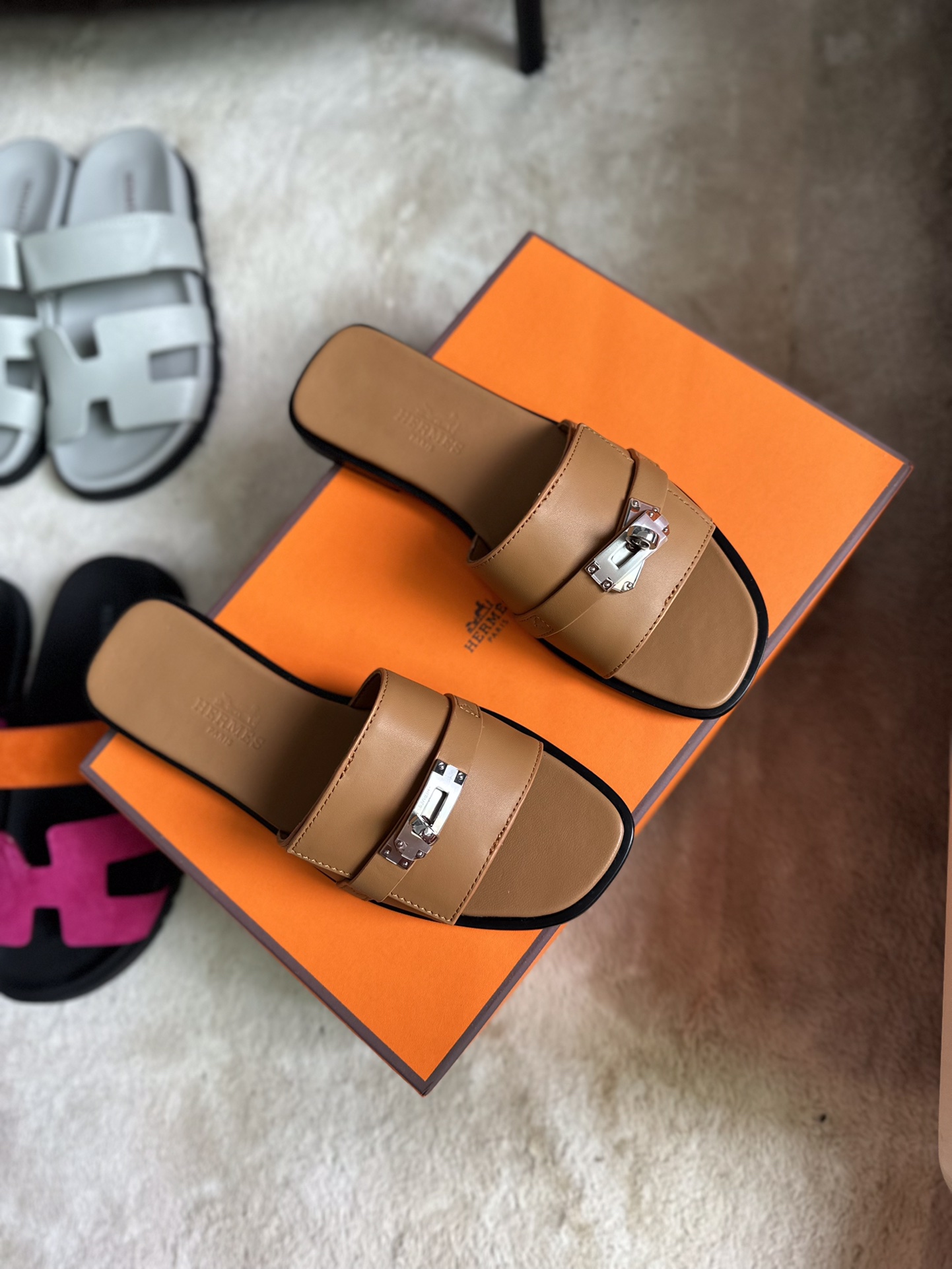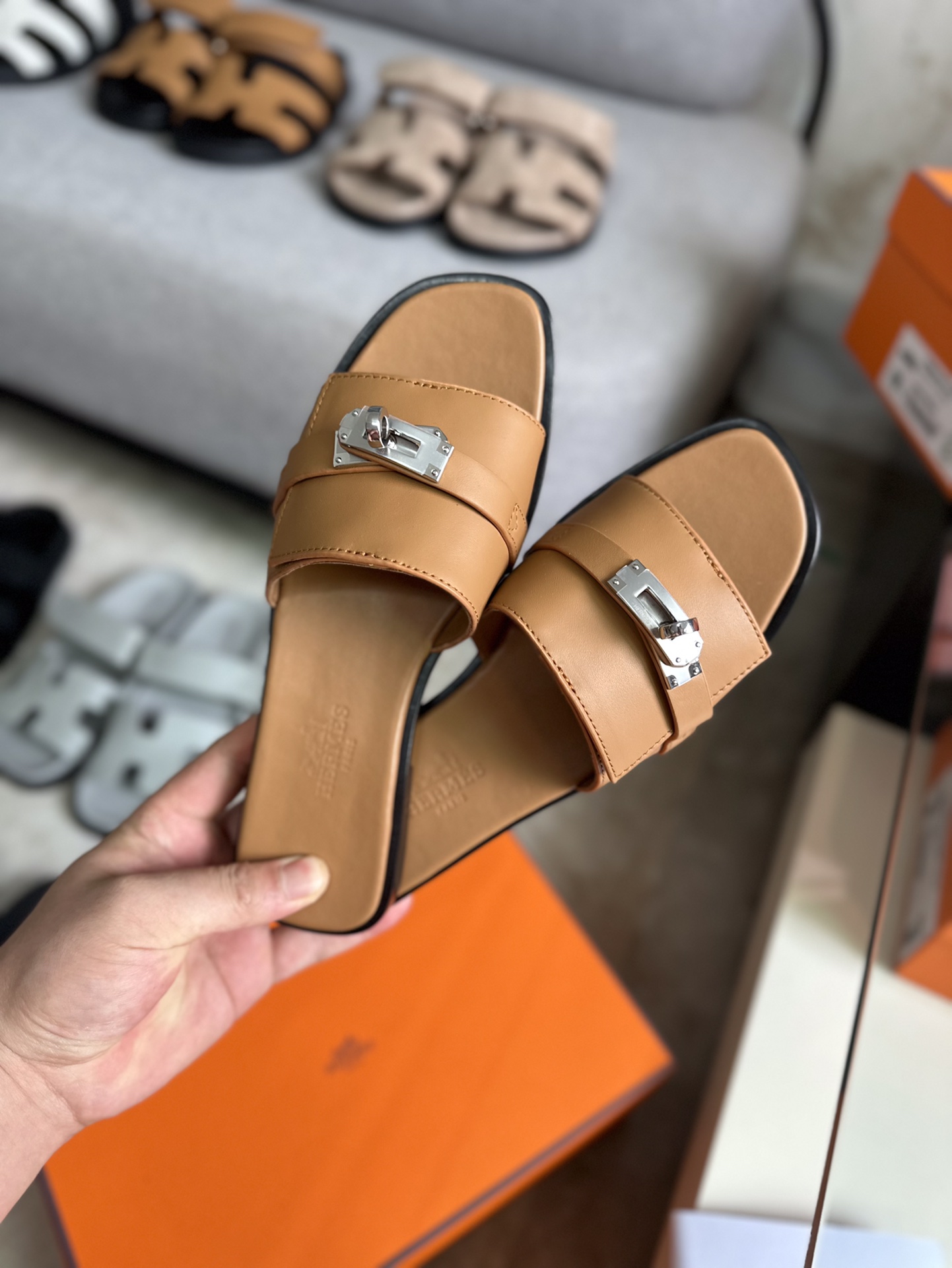 这款鞋子是AAAAA 1:1 质量 (非常棒). 使用了和原版一模一样的材料. 商标部分也保持了和爱马仕/Hermes一样. 图片拍摄是实物鞋子拍摄, 您所收到的实物保证和我们图片一模一样.