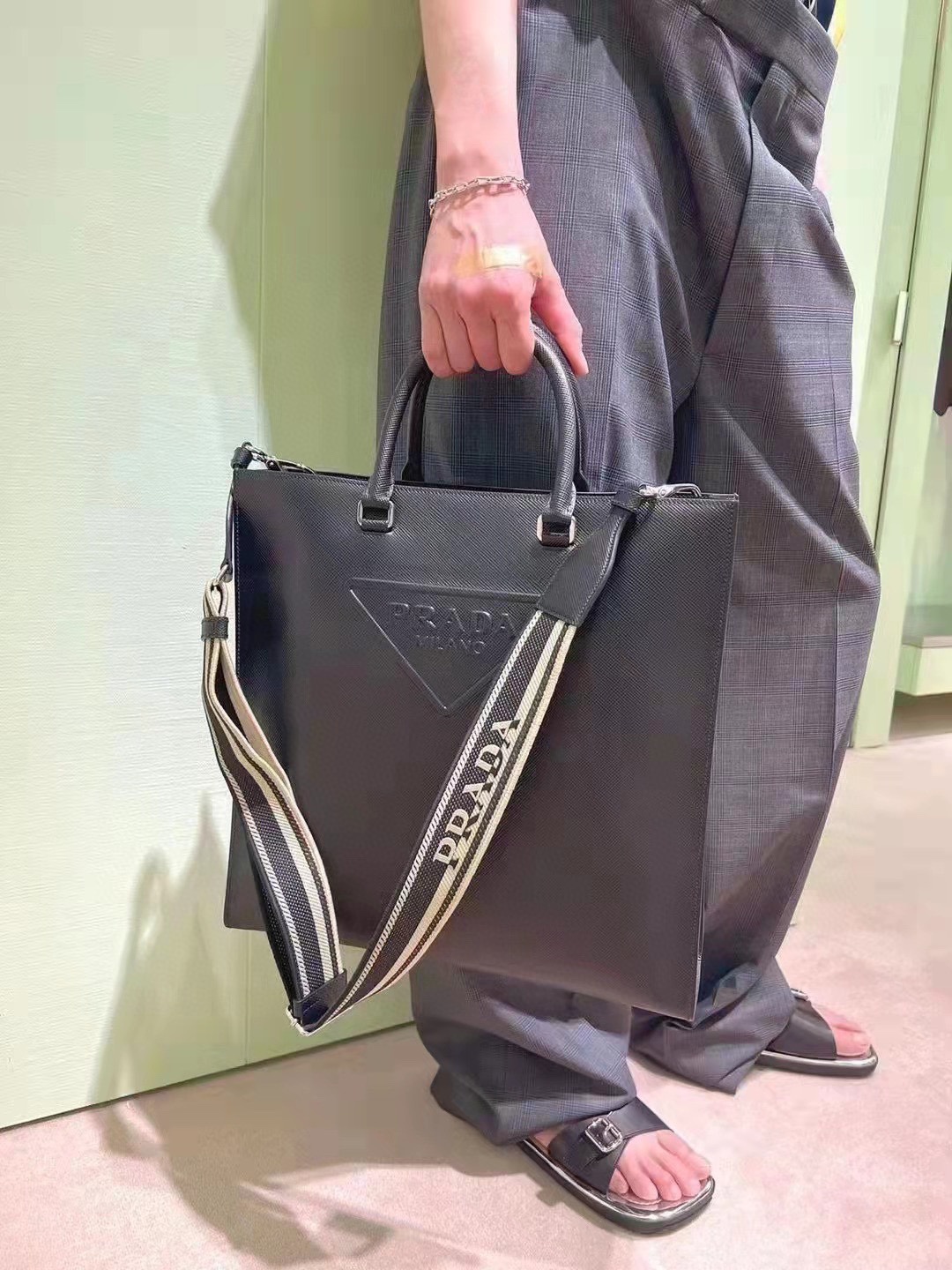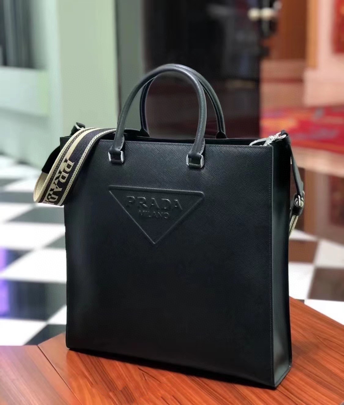 这款包包是AAAAA 1:1 质量 (非常棒). 使用了和原版一模一样的材料. 商标部分也保持了和普拉达/Prada一样. 图片拍摄是实物包包拍摄, 您所收到的实物保证和我们图片一模一样.