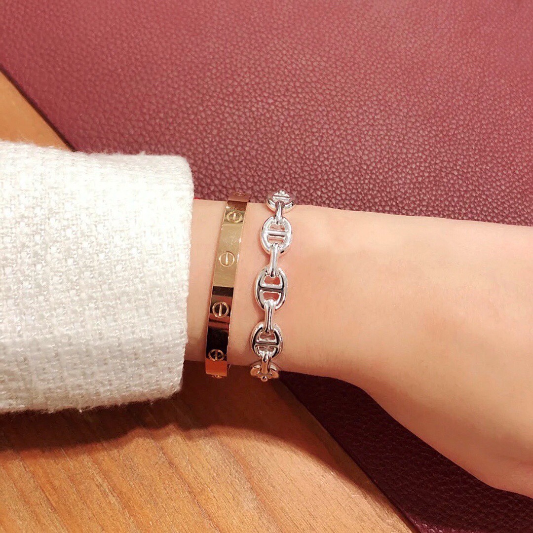 这款首饰是AAAAA 1:1 质量 (非常棒). 使用了和原版一模一样的材料. 商标部分也保持了和爱马仕/Hermes一样. 图片拍摄是实物首饰拍摄, 您所收到的实物保证和我们图片一模一样.