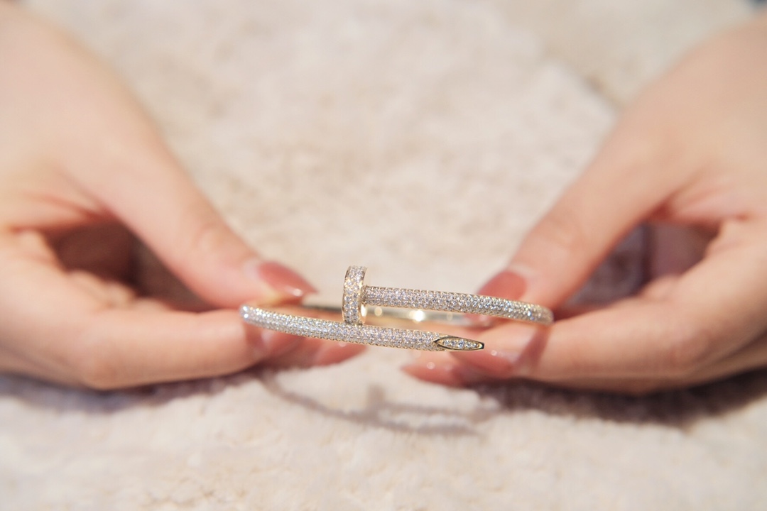 这款首饰是AAAAA 1:1 质量 (非常棒). 使用了和原版一模一样的材料. 商标部分也保持了和卡地亚/Cartier一样. 图片拍摄是实物首饰拍摄, 您所收到的实物保证和我们图片一模一样.