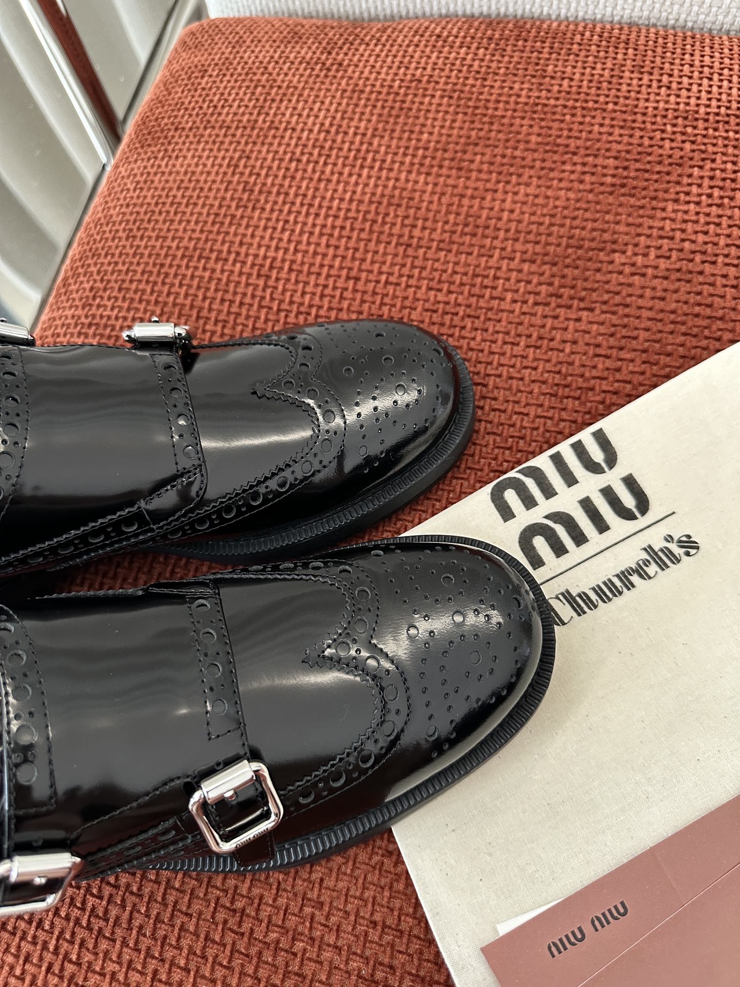 这款鞋子是AAAAA 1:1 质量 (非常棒). 使用了和原版一模一样的材料. 商标部分也保持了和缪缪/Miu Miu一样. 图片拍摄是实物鞋子拍摄, 您所收到的实物保证和我们图片一模一样.