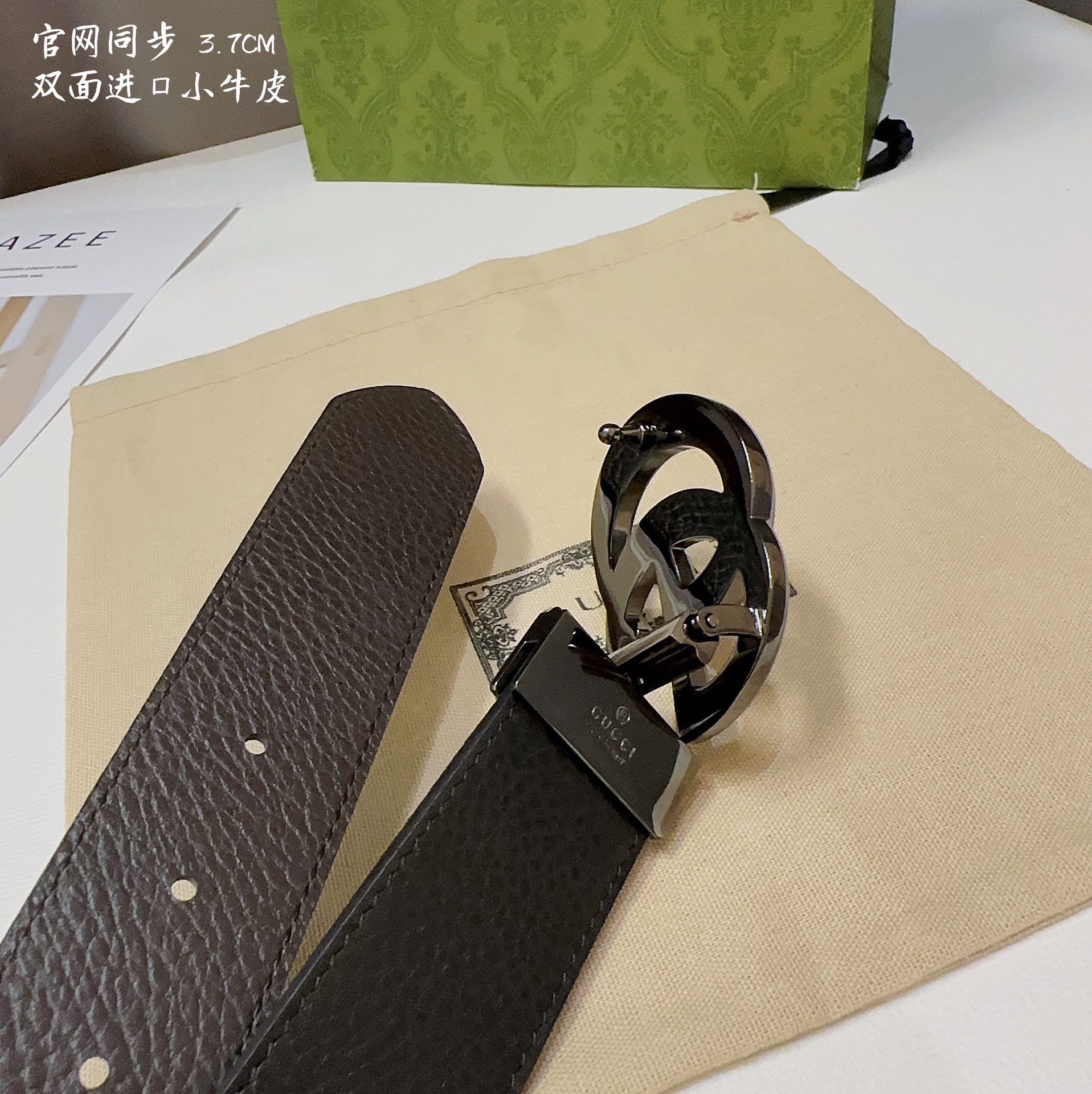 这款皮带是AAAAA 1:1 质量 (非常棒). 使用了和原版一模一样的材料. 商标部分也保持了和古奇/Gucci一样. 图片拍摄是实物皮带拍摄, 您所收到的实物保证和我们图片一模一样.