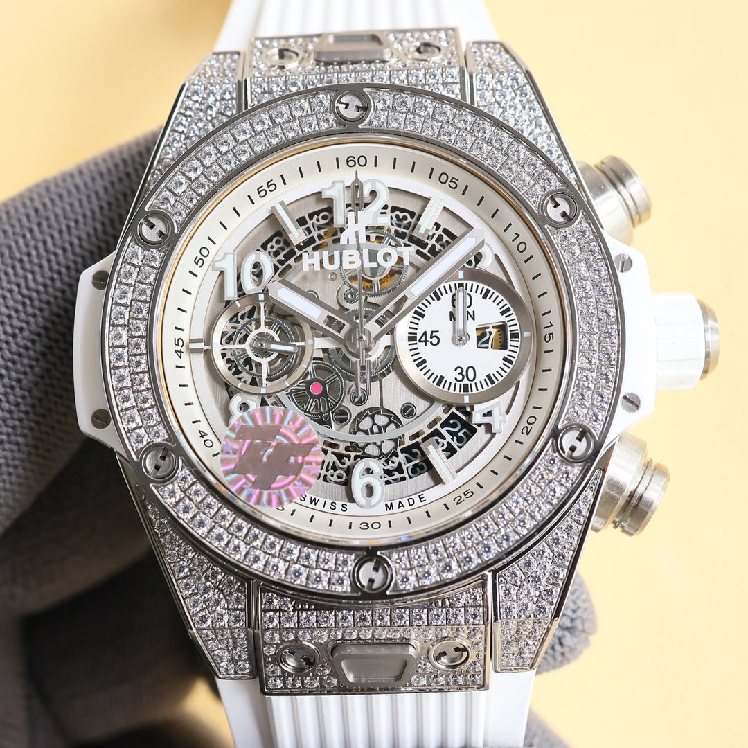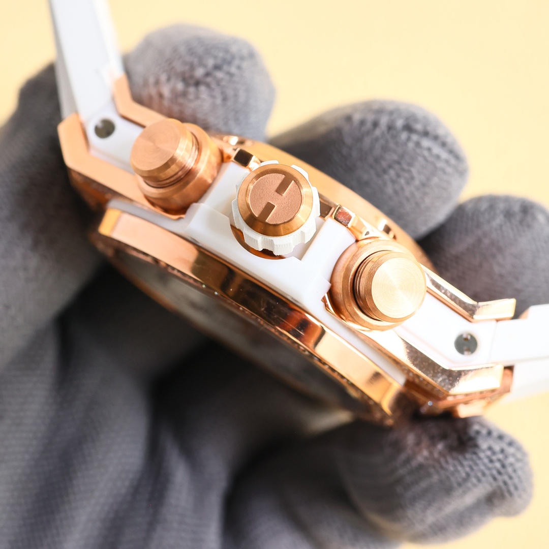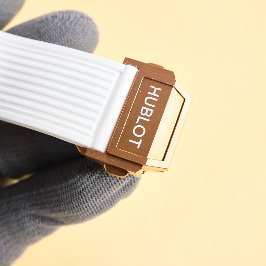 这款手表是AAAAA 1:1 质量 (非常棒). 使用了和原版一模一样的材料. 商标部分也保持了和Hublot一样. 图片拍摄是实物手表拍摄, 您所收到的实物保证和我们图片一模一样.