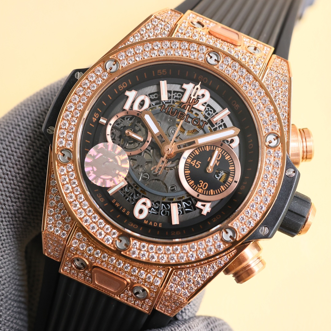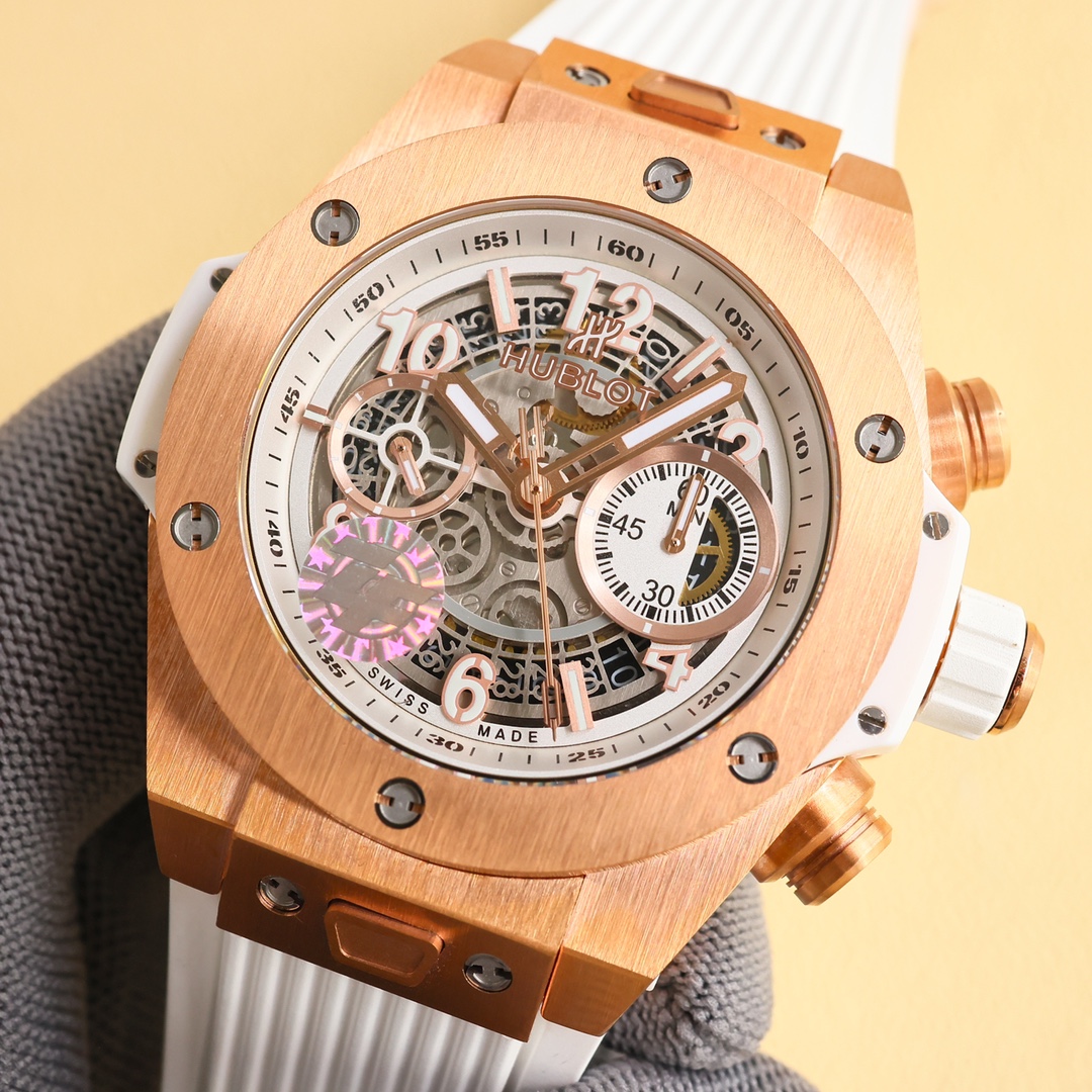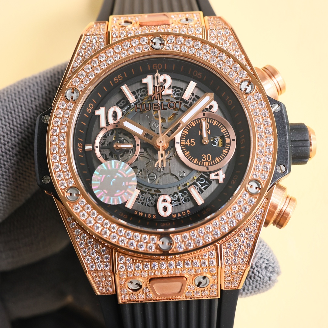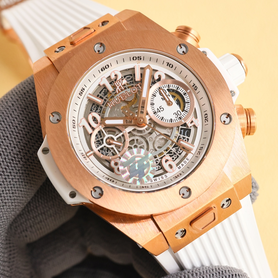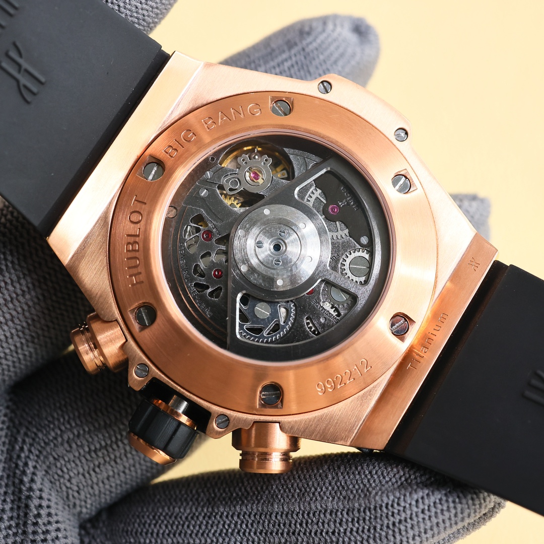 这款手表是AAAAA 1:1 质量 (非常棒). 使用了和原版一模一样的材料. 商标部分也保持了和Hublot一样. 图片拍摄是实物手表拍摄, 您所收到的实物保证和我们图片一模一样.