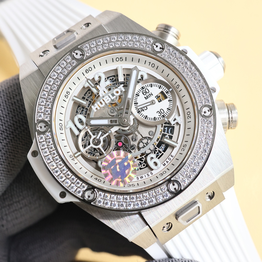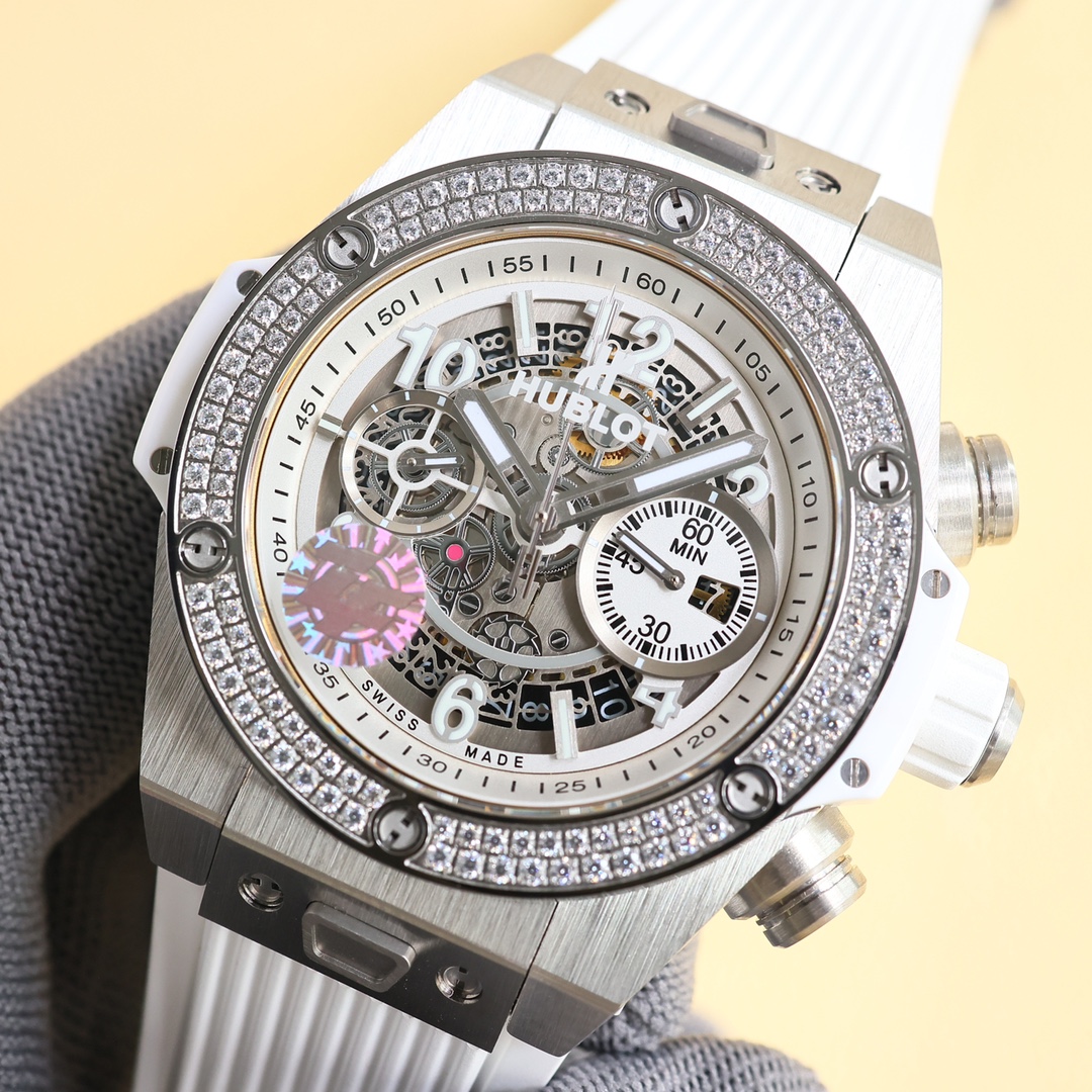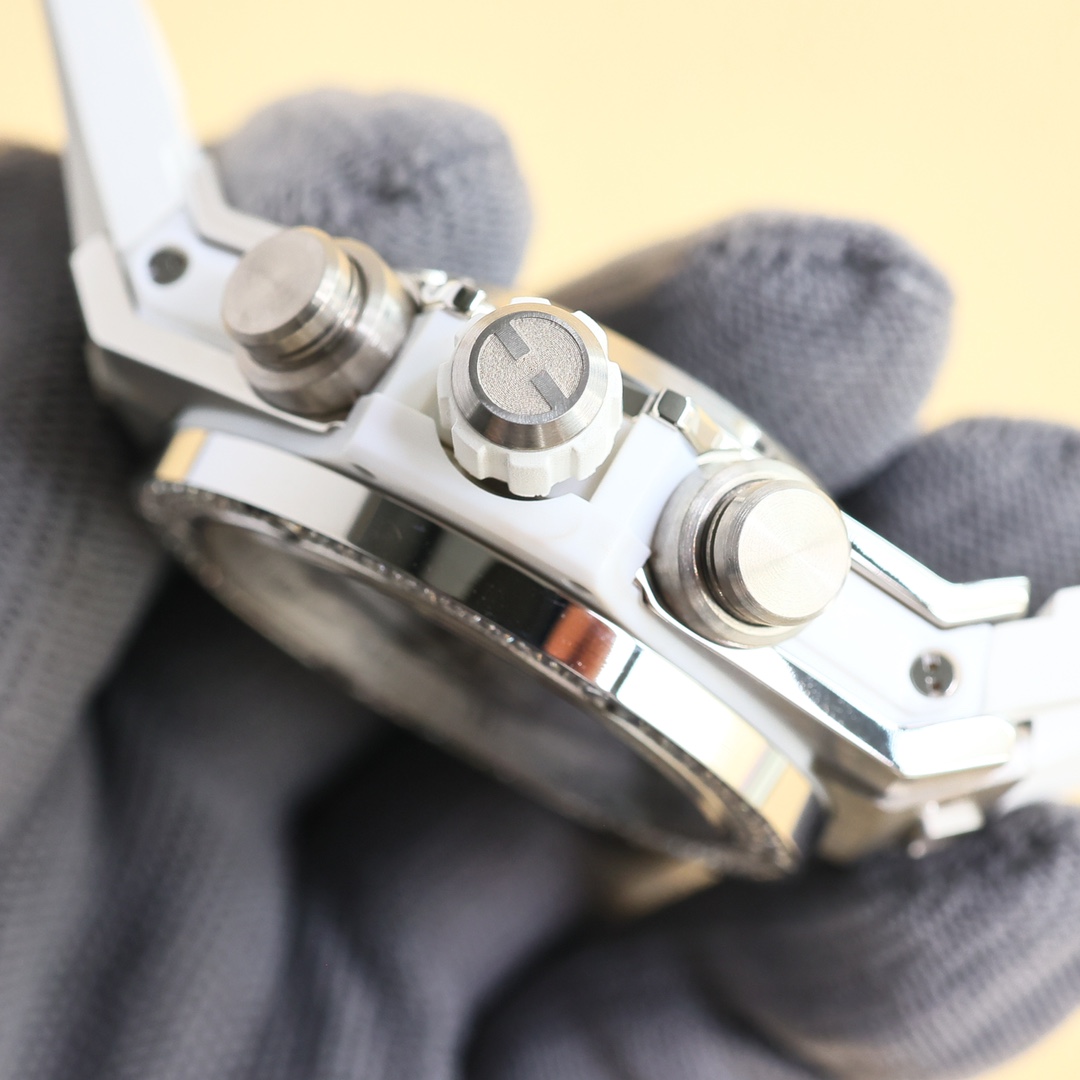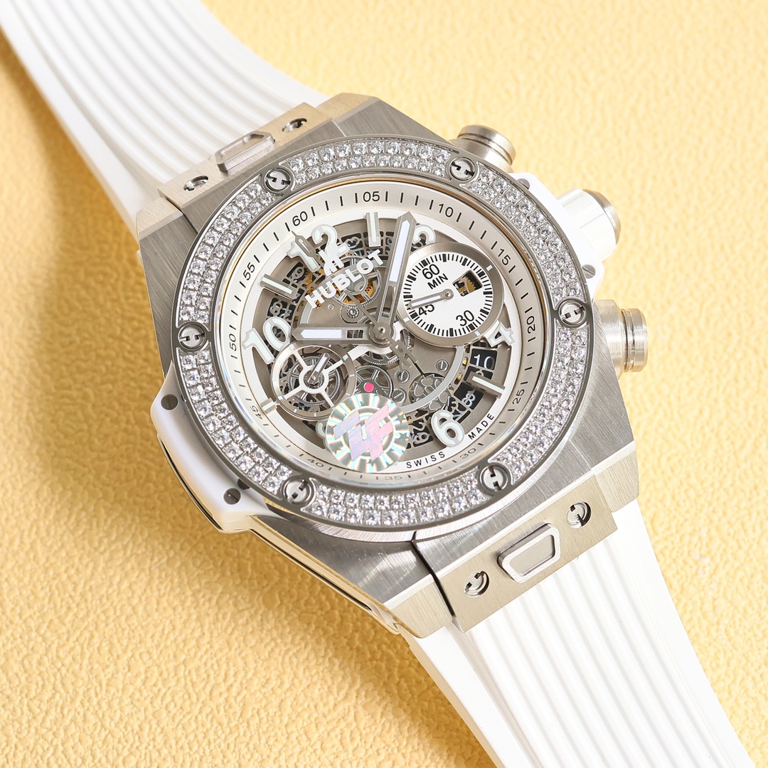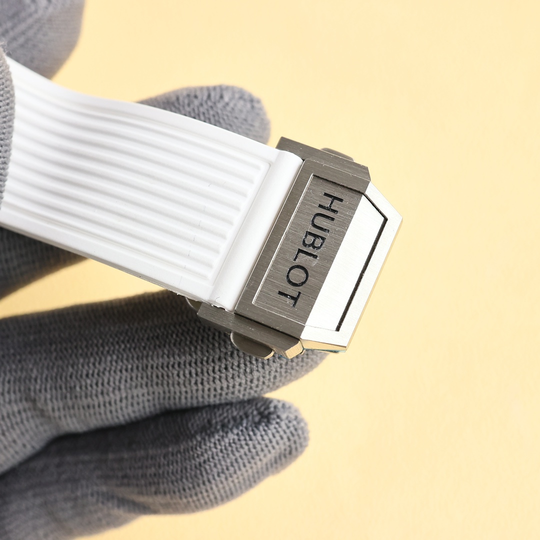 这款手表是AAAAA 1:1 质量 (非常棒). 使用了和原版一模一样的材料. 商标部分也保持了和Hublot一样. 图片拍摄是实物手表拍摄, 您所收到的实物保证和我们图片一模一样.