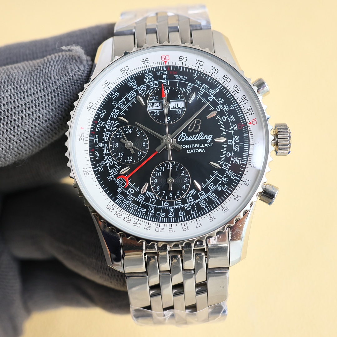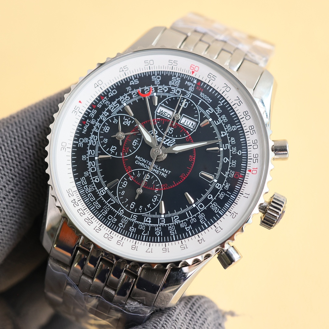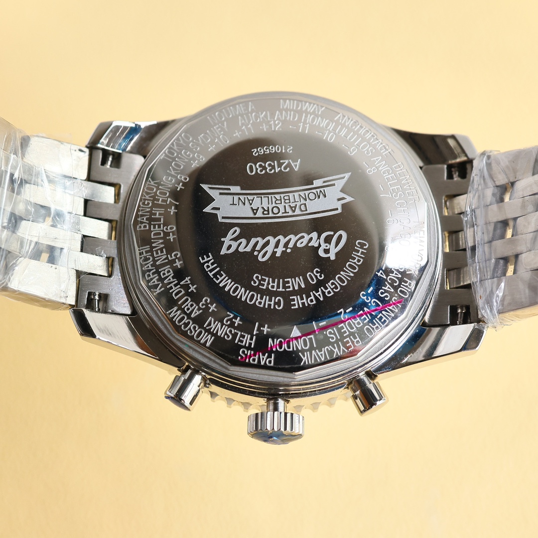 这款手表是AAAAA 1:1 质量 (非常棒). 使用了和原版一模一样的材料. 商标部分也保持了和Breitling一样. 图片拍摄是实物手表拍摄, 您所收到的实物保证和我们图片一模一样.