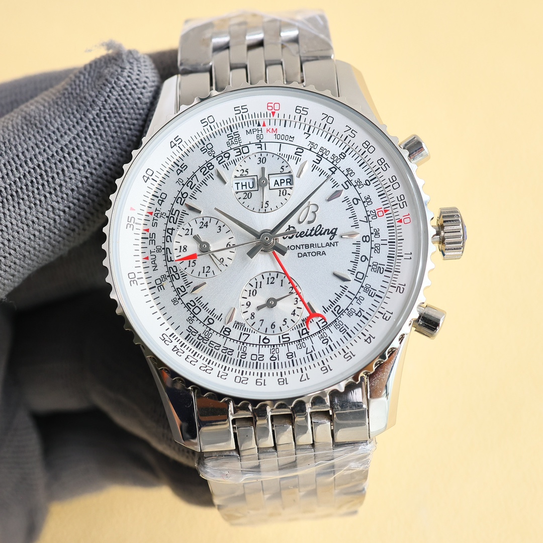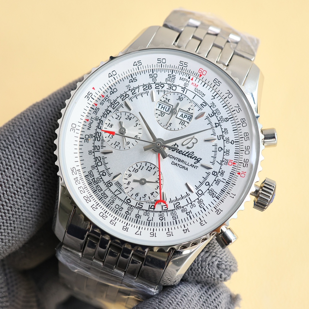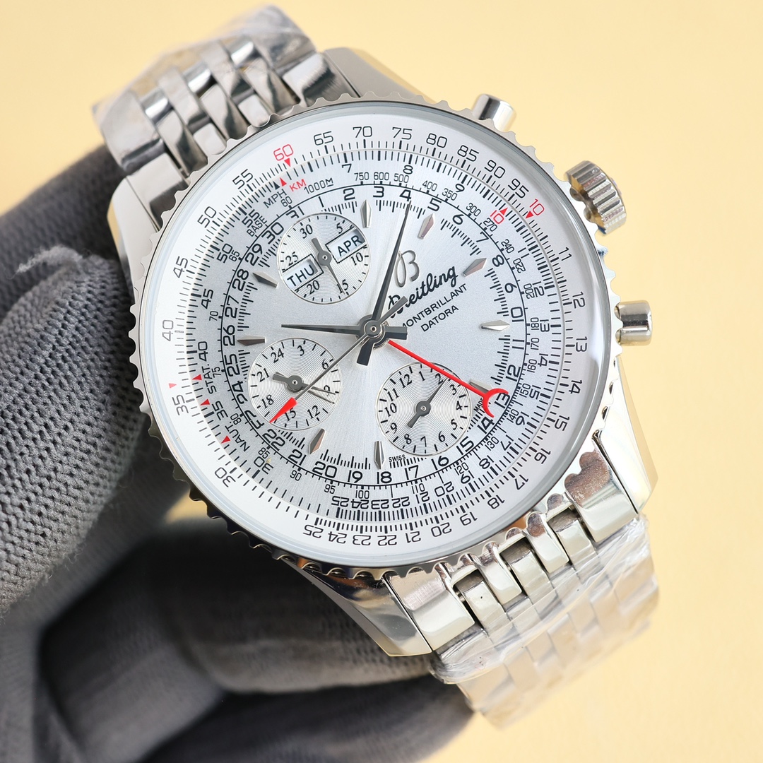 这款手表是AAAAA 1:1 质量 (非常棒). 使用了和原版一模一样的材料. 商标部分也保持了和Breitling一样. 图片拍摄是实物手表拍摄, 您所收到的实物保证和我们图片一模一样.