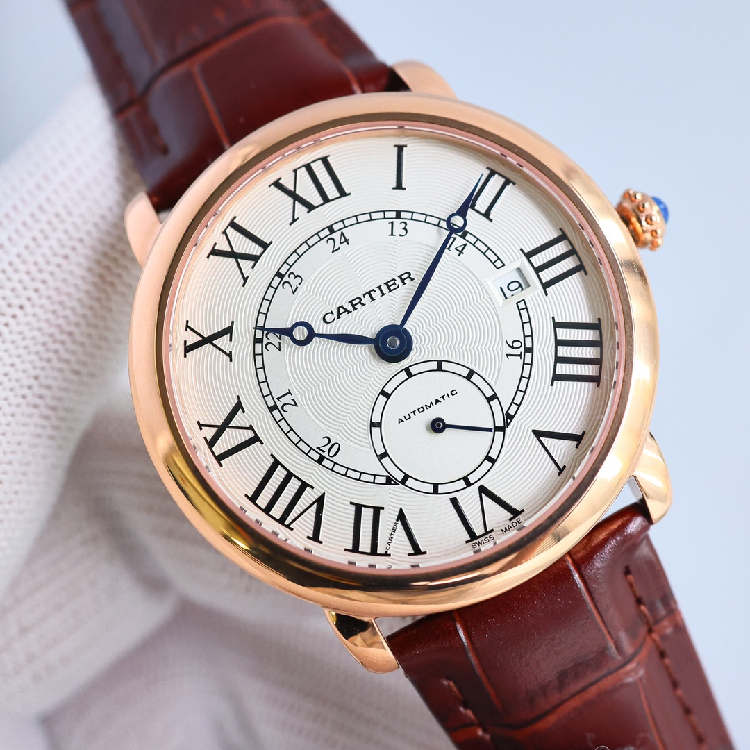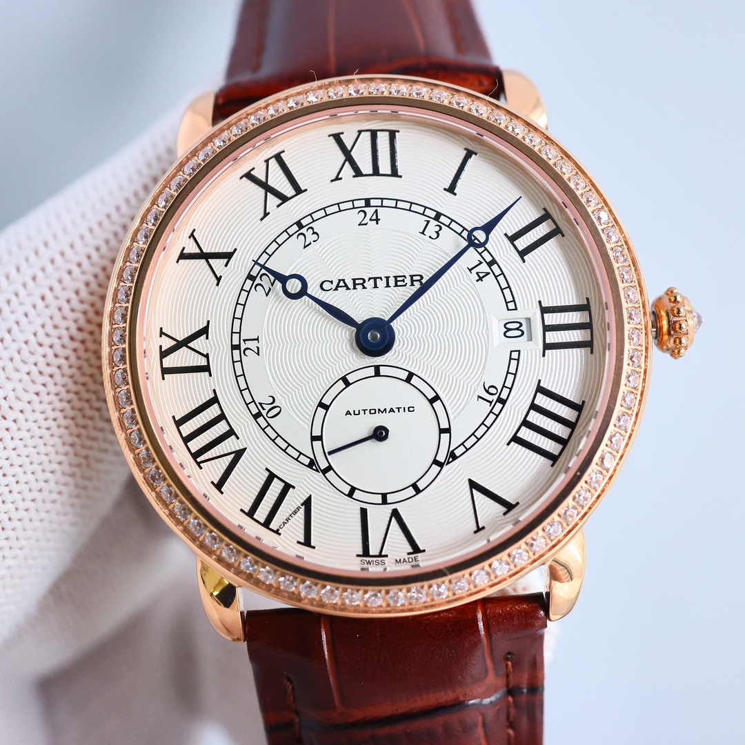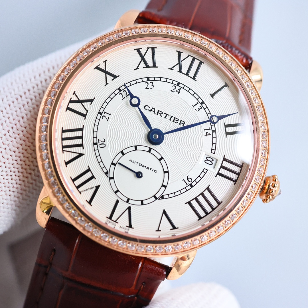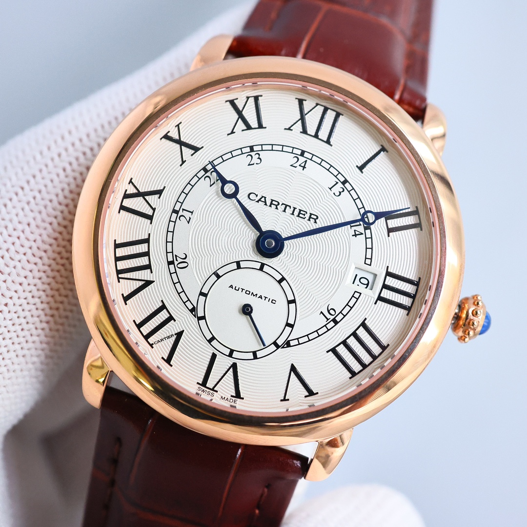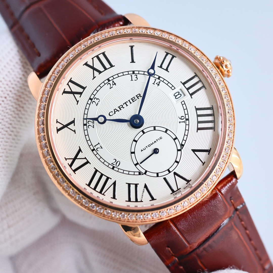 这款手表是AAAAA 1:1 质量 (非常棒). 使用了和原版一模一样的材料. 商标部分也保持了和卡地亚/Cartier一样. 图片拍摄是实物手表拍摄, 您所收到的实物保证和我们图片一模一样.