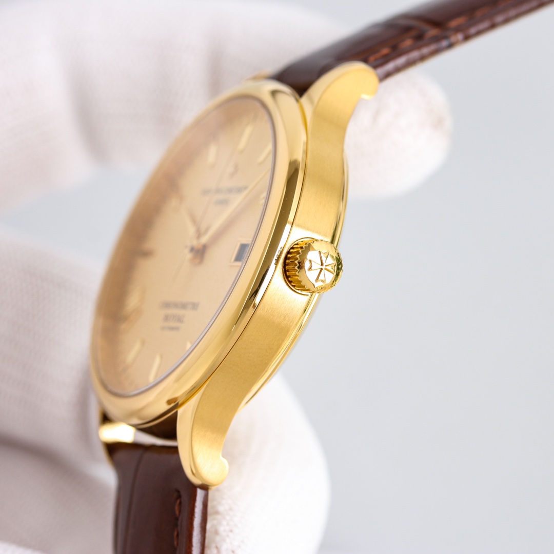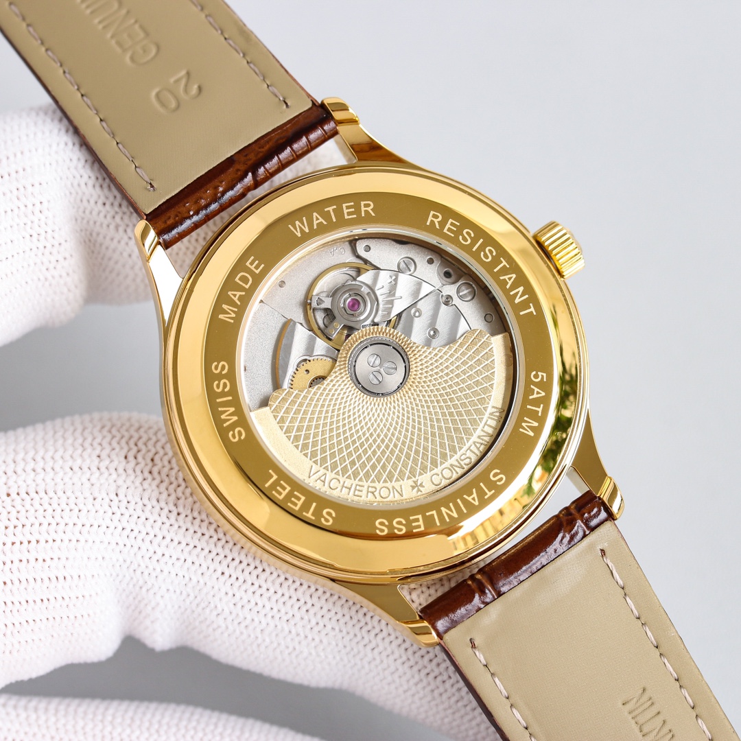 这款手表是AAAAA 1:1 质量 (非常棒). 使用了和原版一模一样的材料. 商标部分也保持了和江诗丹顿/Vacheron Constantin一样. 图片拍摄是实物手表拍摄, 您所收到的实物保证和我们图片一模一样.