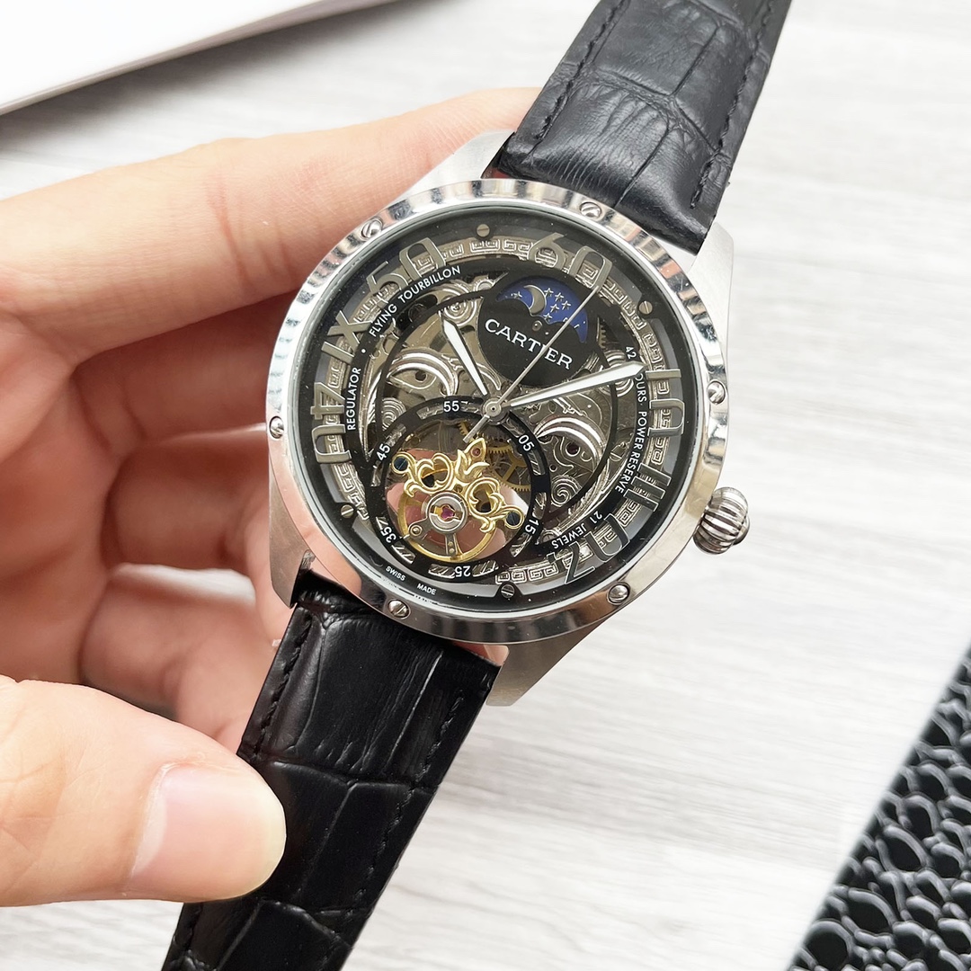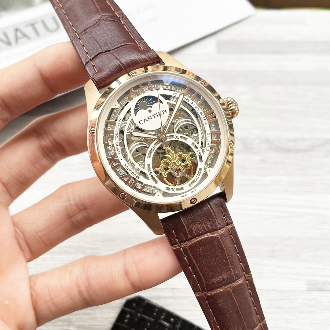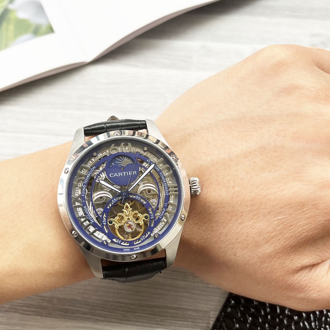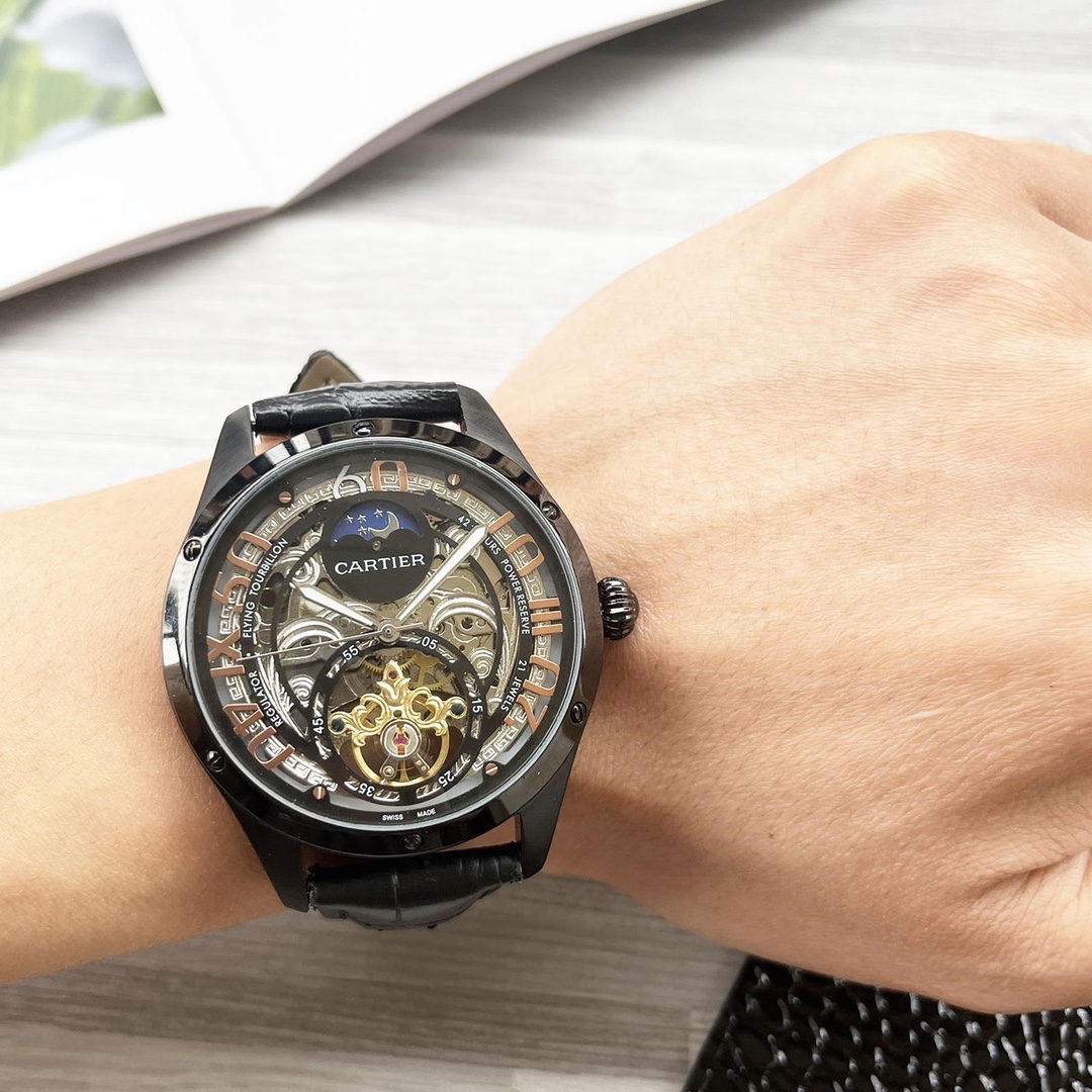 这款手表是AAAAA 1:1 质量 (非常棒). 使用了和原版一模一样的材料. 商标部分也保持了和卡地亚/Cartier一样. 图片拍摄是实物手表拍摄, 您所收到的实物保证和我们图片一模一样.