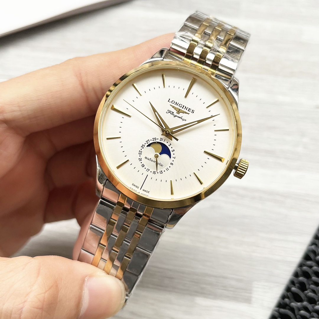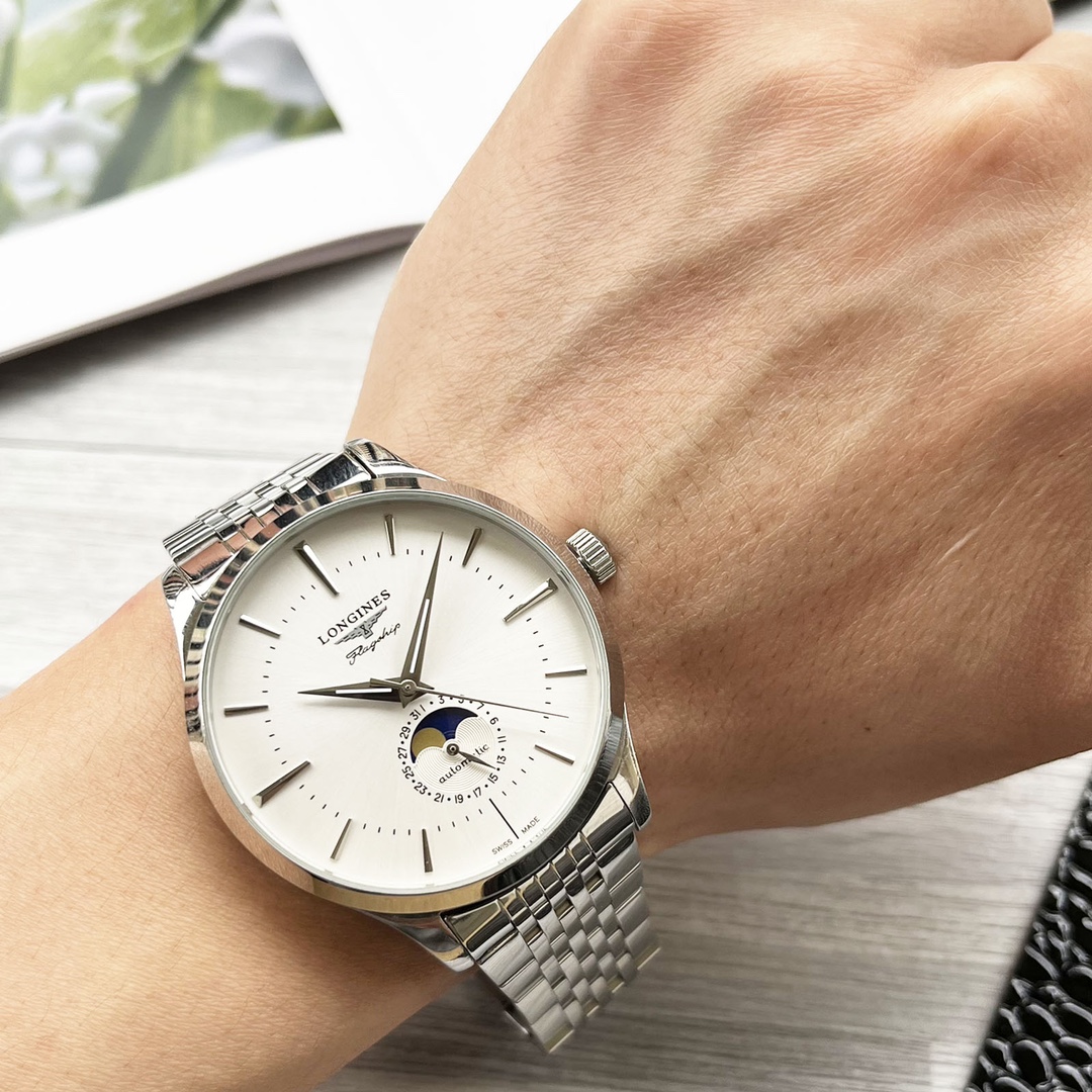 这款手表是AAAAA 1:1 质量 (非常棒). 使用了和原版一模一样的材料. 商标部分也保持了和浪琴/Longines一样. 图片拍摄是实物手表拍摄, 您所收到的实物保证和我们图片一模一样.