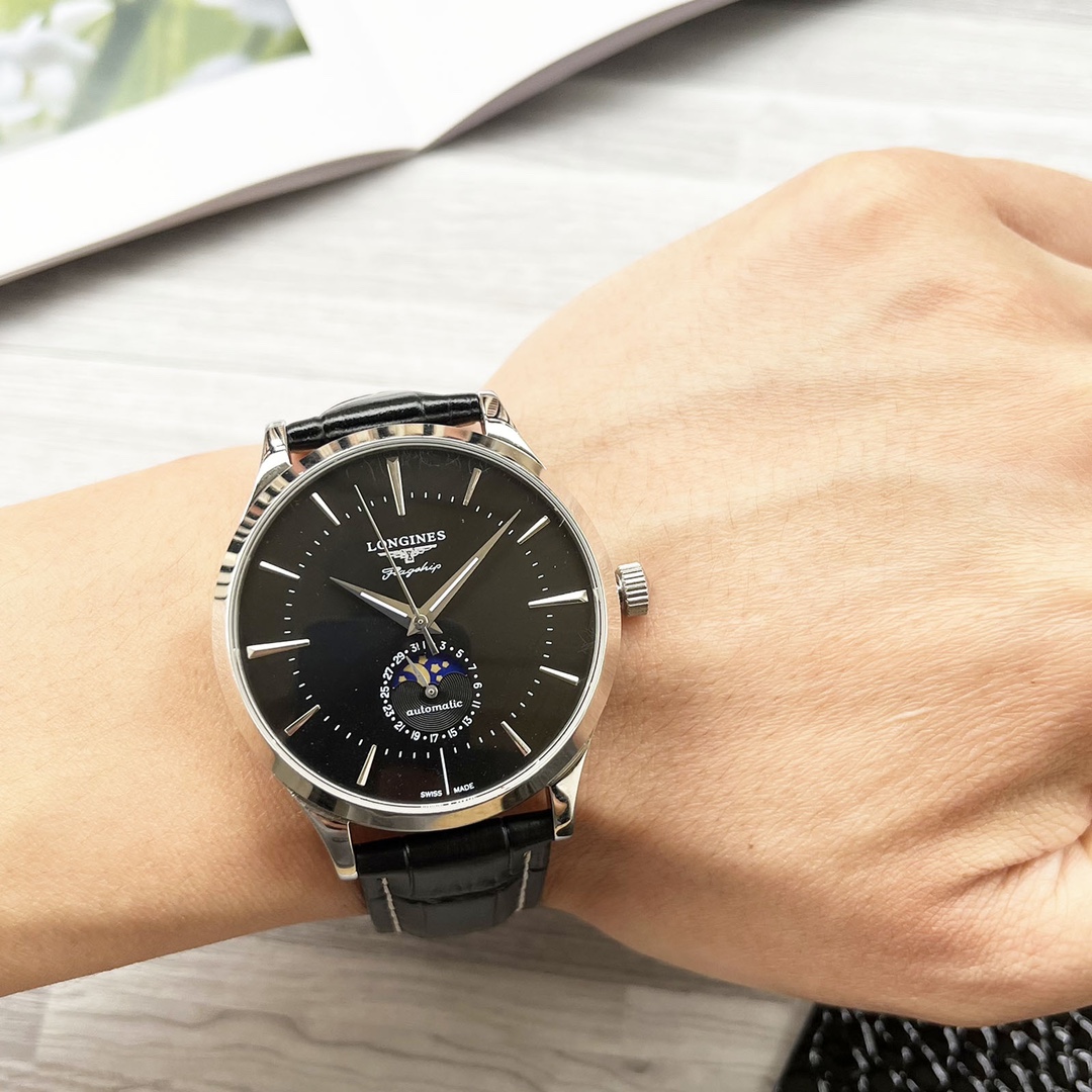 这款手表是AAAAA 1:1 质量 (非常棒). 使用了和原版一模一样的材料. 商标部分也保持了和浪琴/Longines一样. 图片拍摄是实物手表拍摄, 您所收到的实物保证和我们图片一模一样.