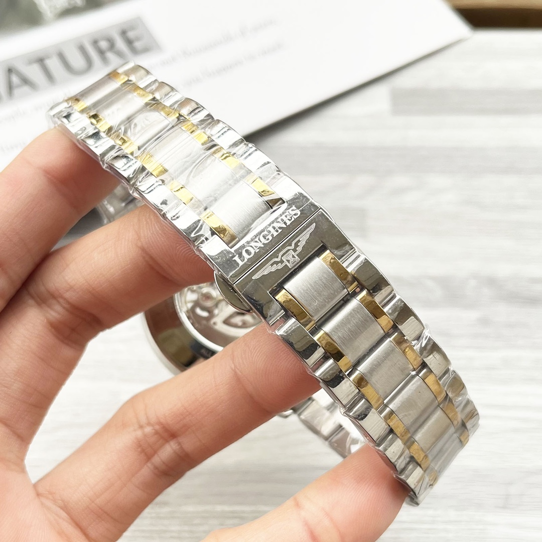 这款手表是AAAAA 1:1 质量 (非常棒). 使用了和原版一模一样的材料. 商标部分也保持了和浪琴/Longines一样. 图片拍摄是实物手表拍摄, 您所收到的实物保证和我们图片一模一样.