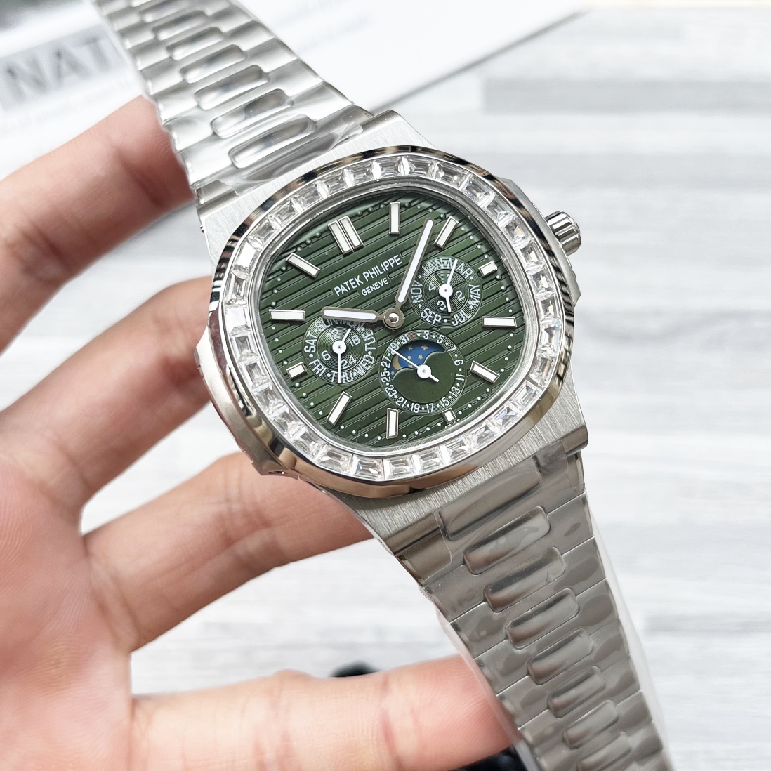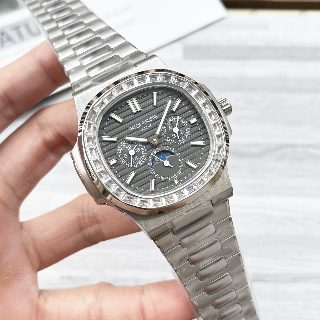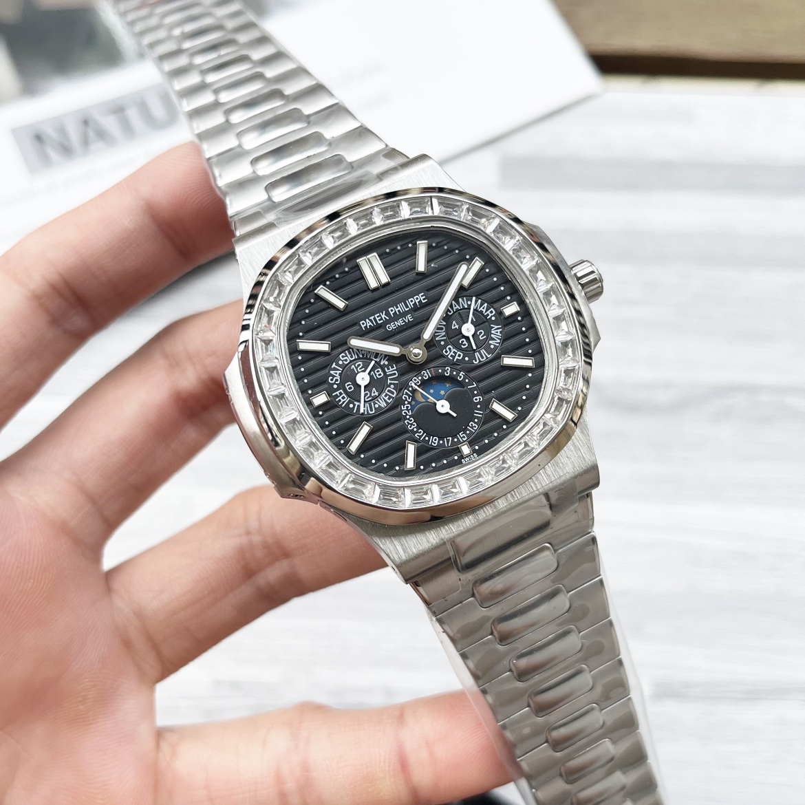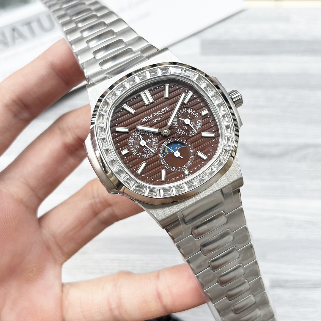 这款手表是AAAAA 1:1 质量 (非常棒). 使用了和原版一模一样的材料. 商标部分也保持了和百达翡丽/Patek Philippe一样. 图片拍摄是实物手表拍摄, 您所收到的实物保证和我们图片一模一样.