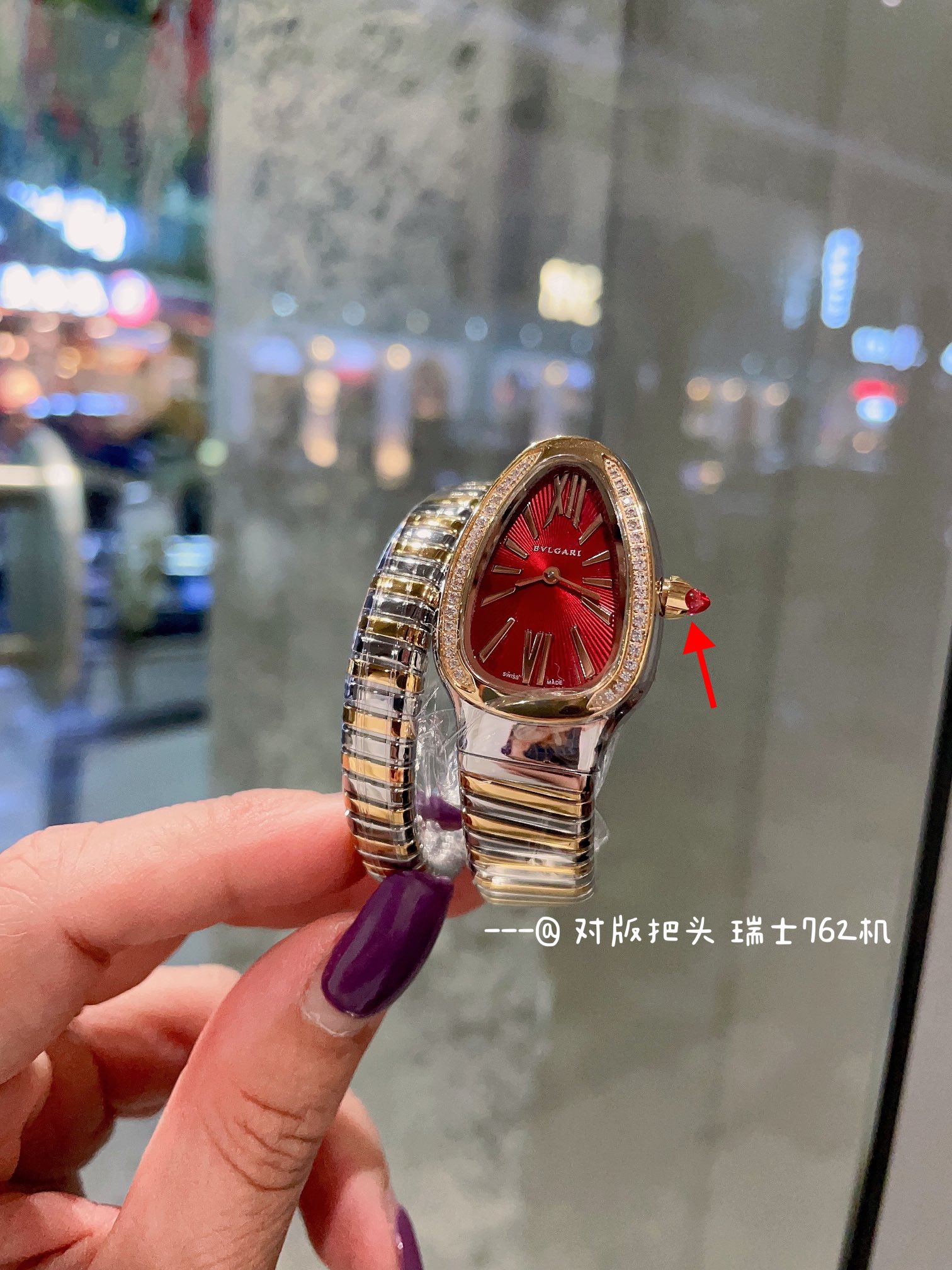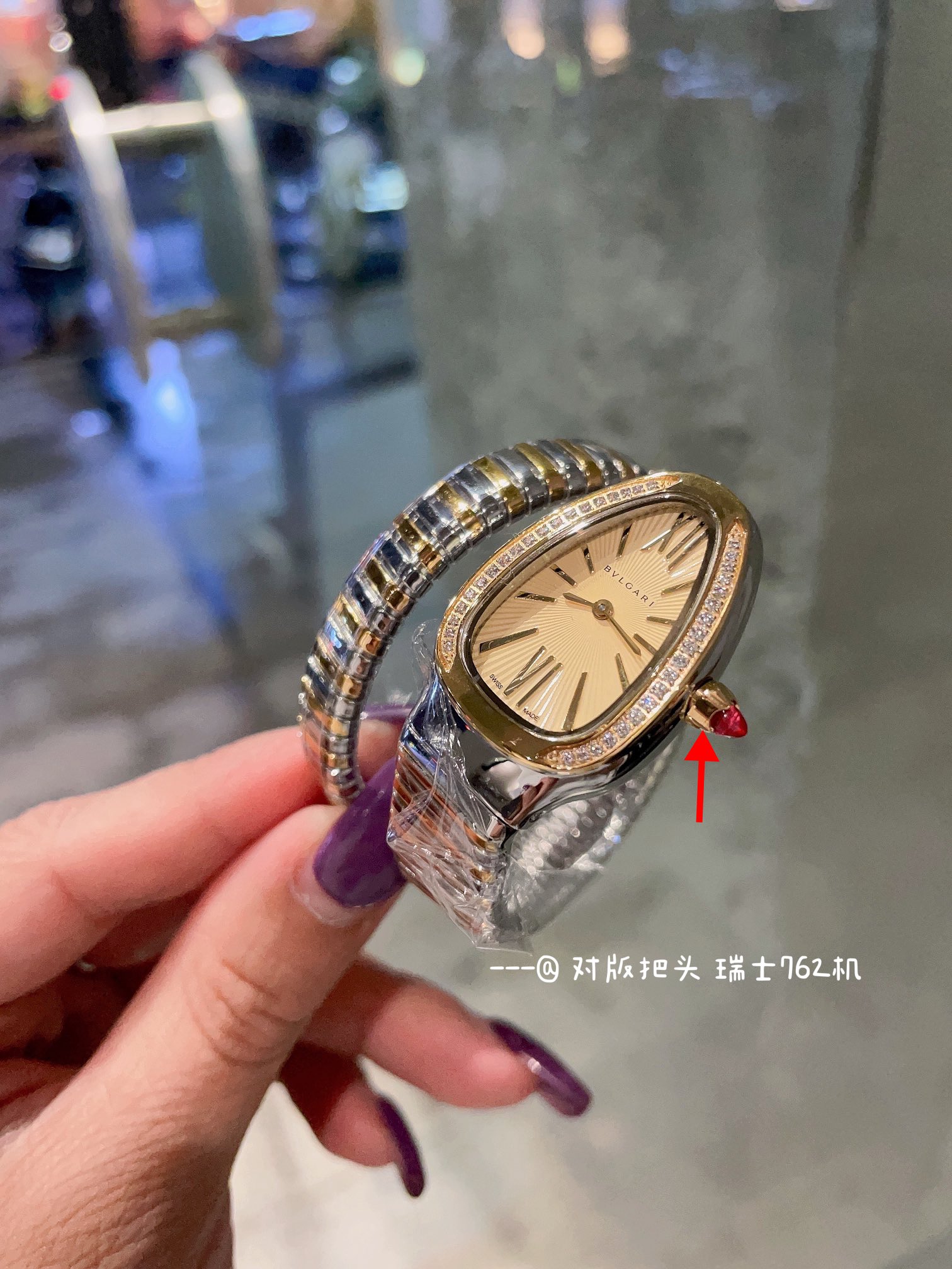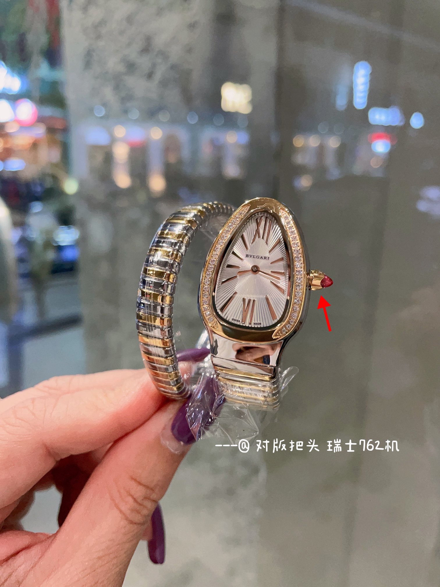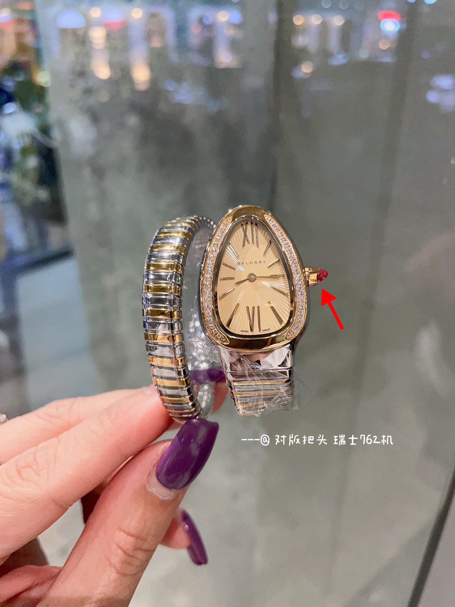 这款手表是AAAAA 1:1 质量 (非常棒). 使用了和原版一模一样的材料. 商标部分也保持了和宝格丽/Bulgari一样. 图片拍摄是实物手表拍摄, 您所收到的实物保证和我们图片一模一样.