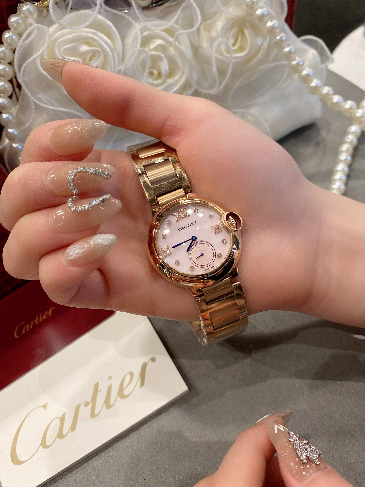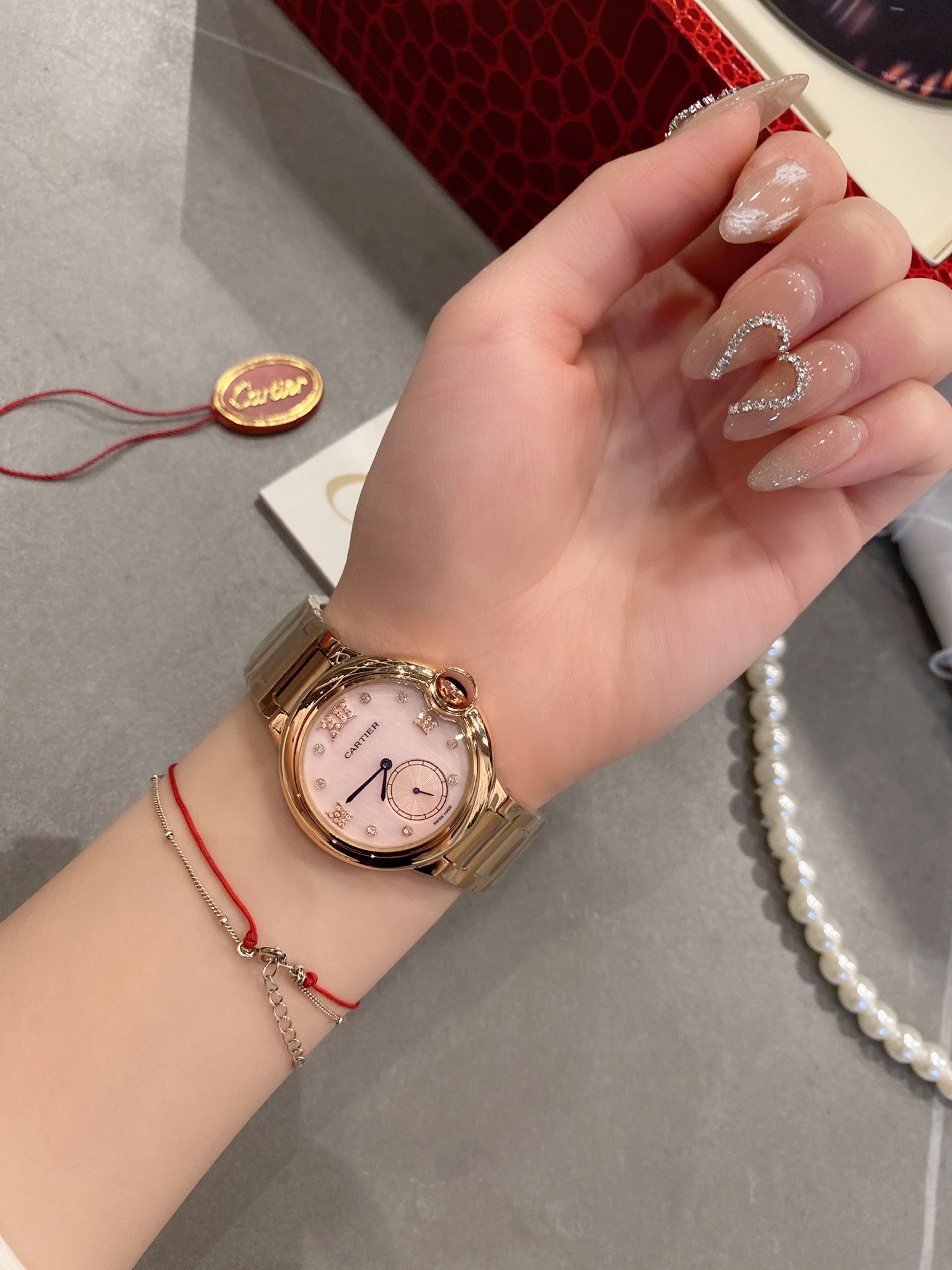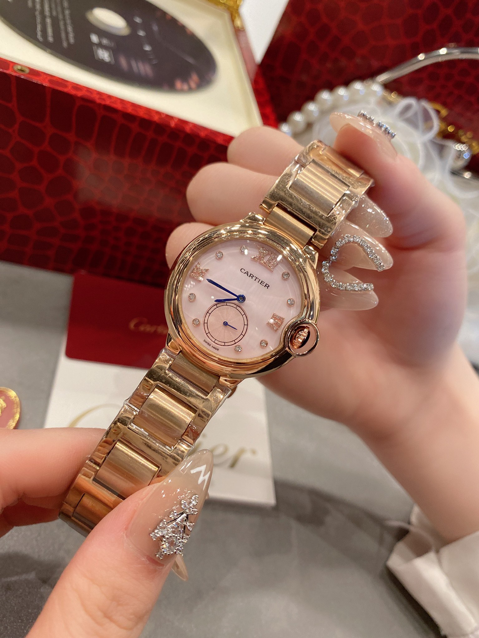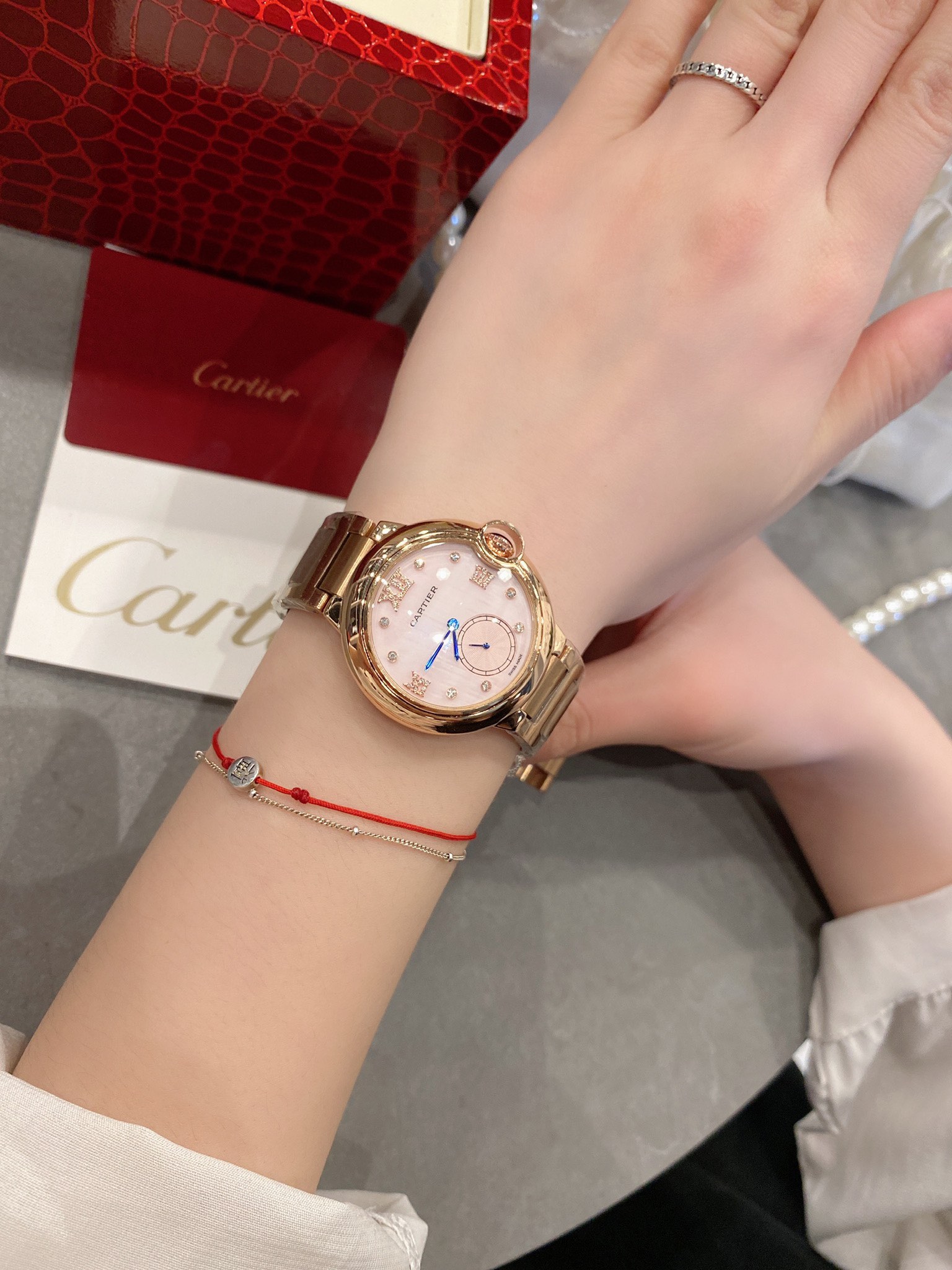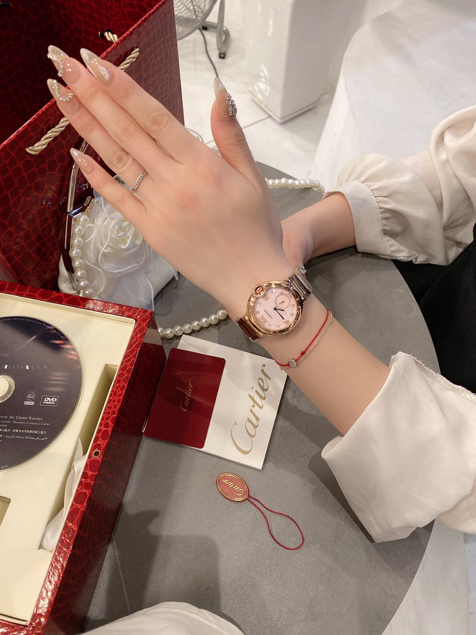 这款手表是AAAAA 1:1 质量 (非常棒). 使用了和原版一模一样的材料. 商标部分也保持了和卡地亚/Cartier一样. 图片拍摄是实物手表拍摄, 您所收到的实物保证和我们图片一模一样.