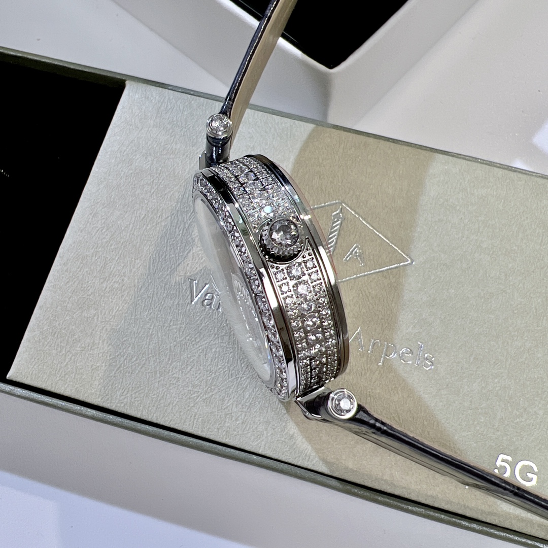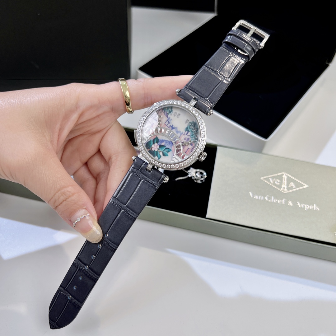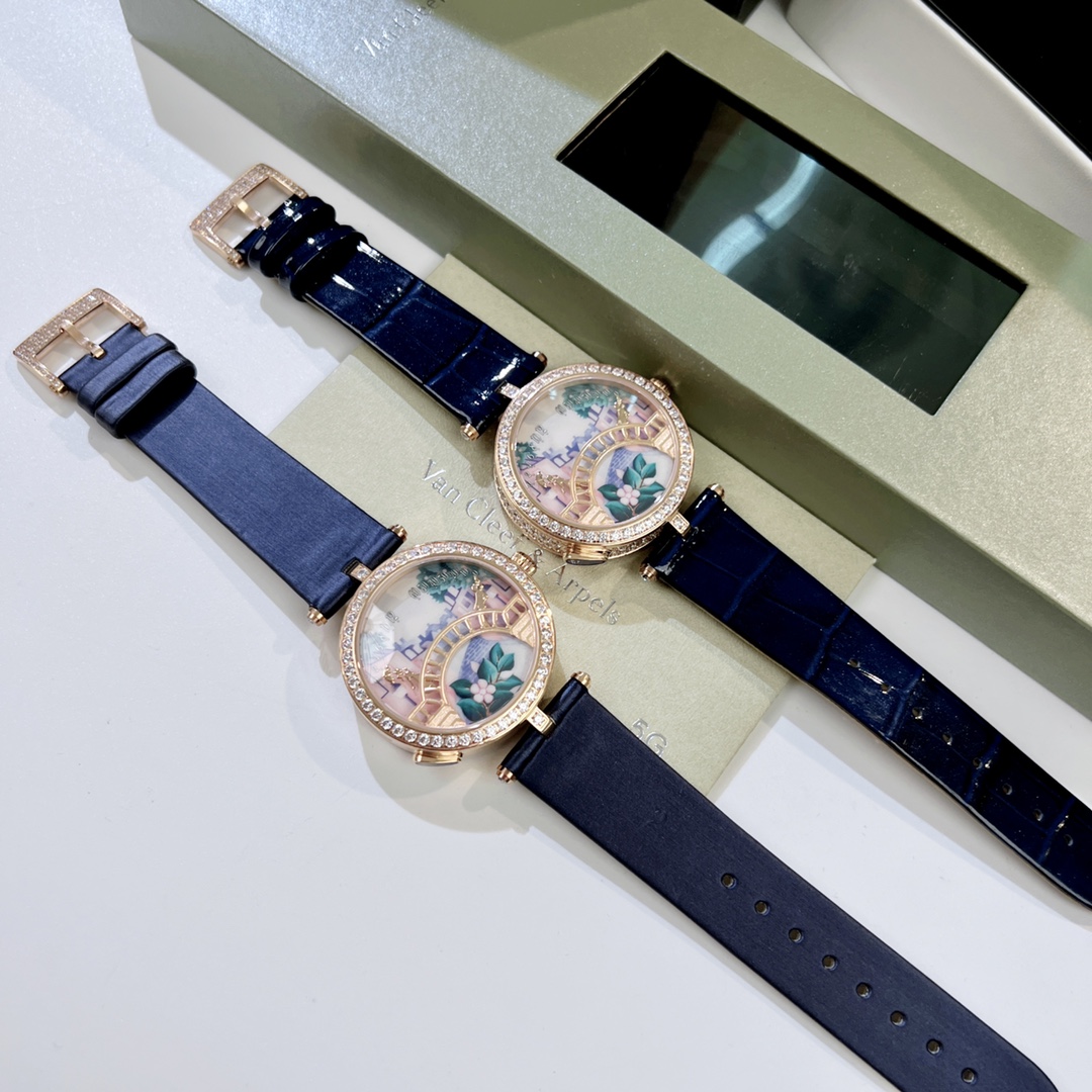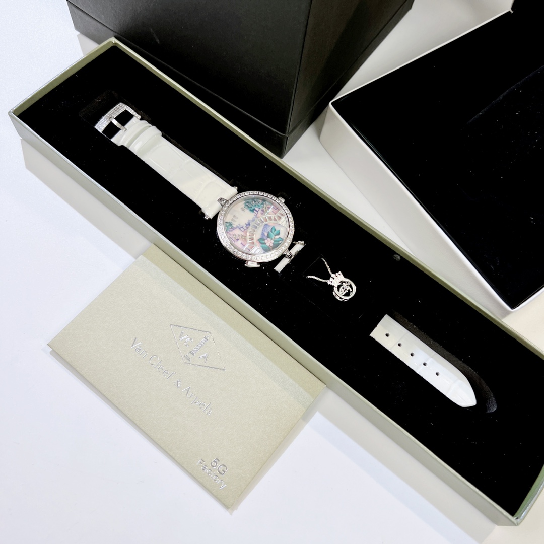这款手表是AAAAA 1:1 质量 (非常棒). 使用了和原版一模一样的材料. 商标部分也保持了和梵克雅宝/Van Cleef & Arpels一样. 图片拍摄是实物手表拍摄, 您所收到的实物保证和我们图片一模一样.