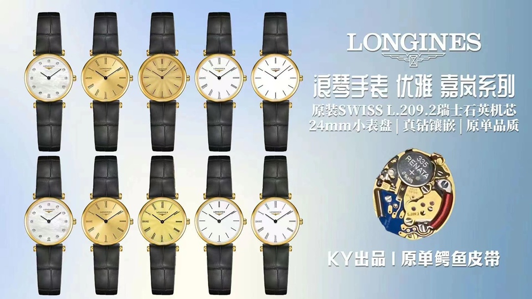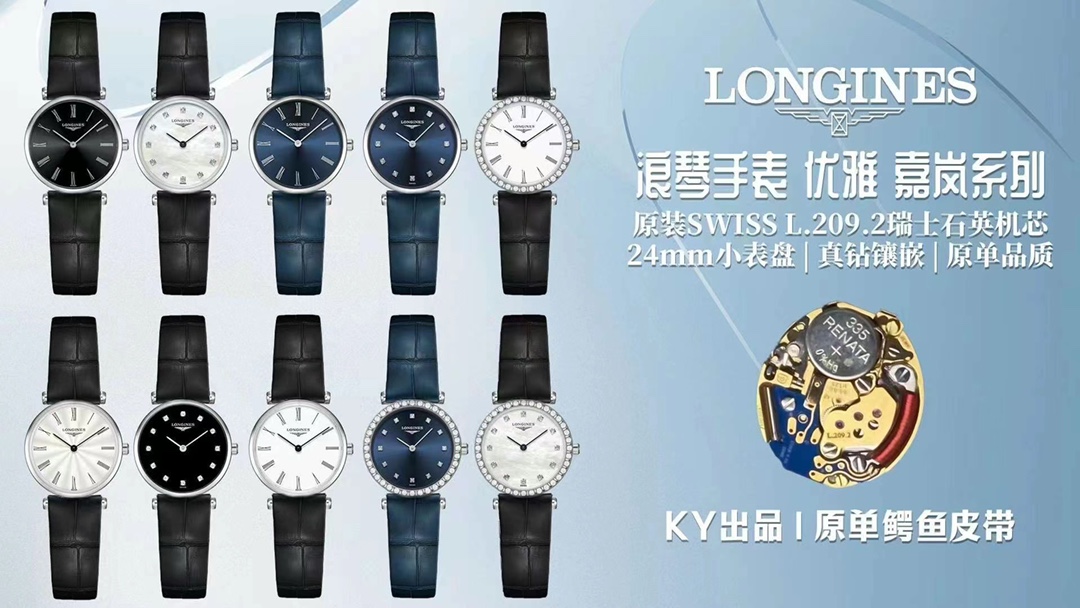 这款手表是AAAAA 1:1 质量 (非常棒). 使用了和原版一模一样的材料. 商标部分也保持了和浪琴/Longines一样. 图片拍摄是实物手表拍摄, 您所收到的实物保证和我们图片一模一样.
