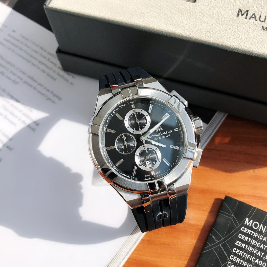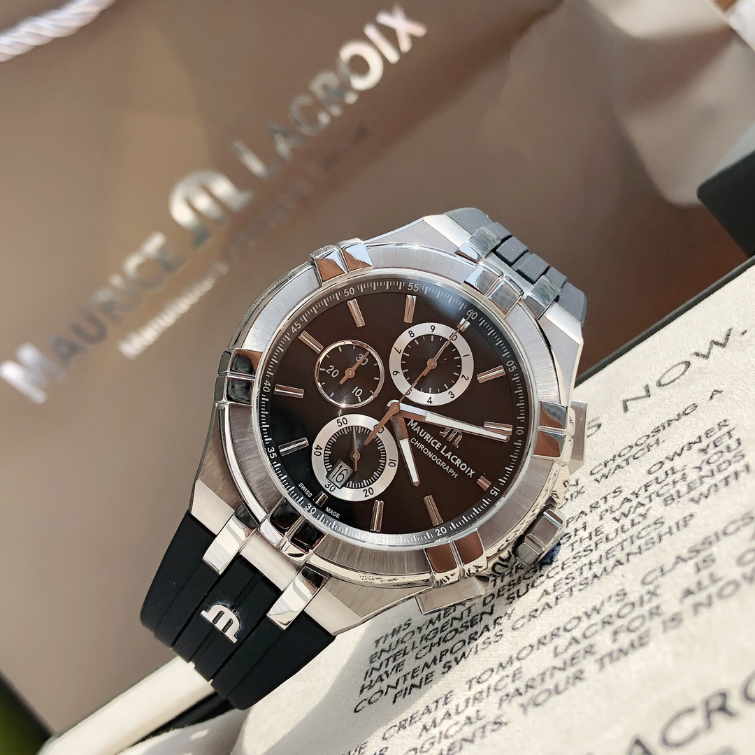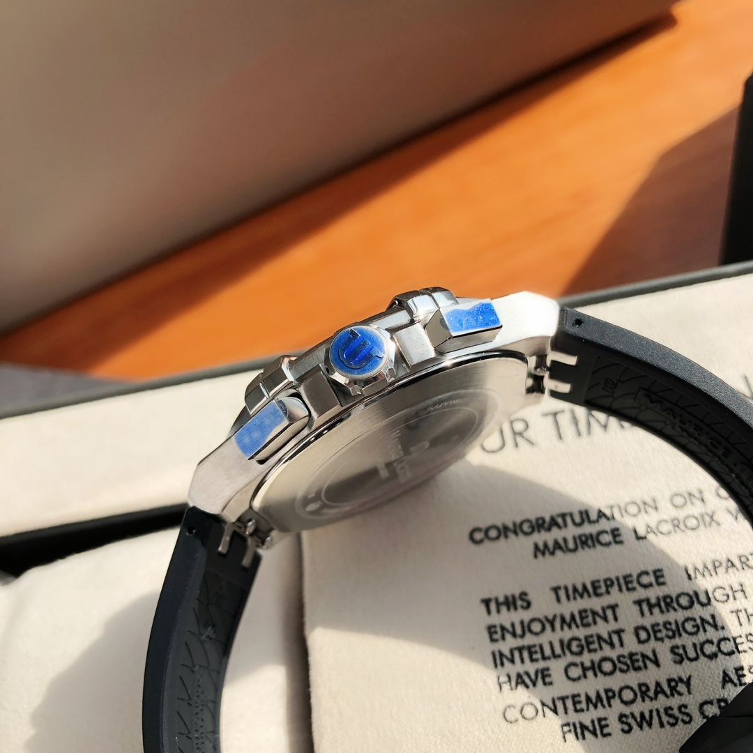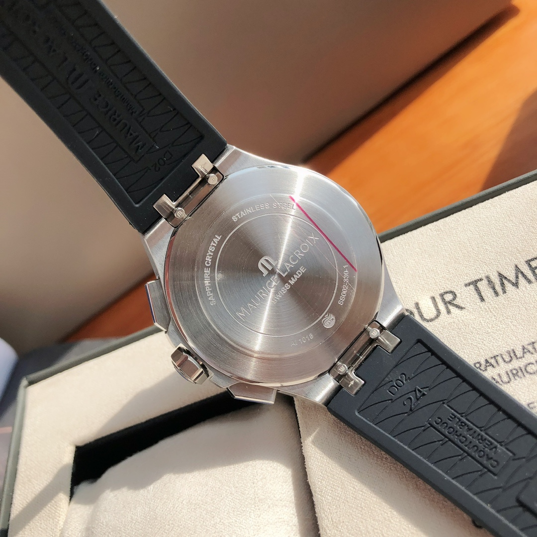 这款手表是AAAAA 1:1 质量 (非常棒). 使用了和原版一模一样的材料. 商标部分也保持了和Maurice Lacroix一样. 图片拍摄是实物手表拍摄, 您所收到的实物保证和我们图片一模一样.