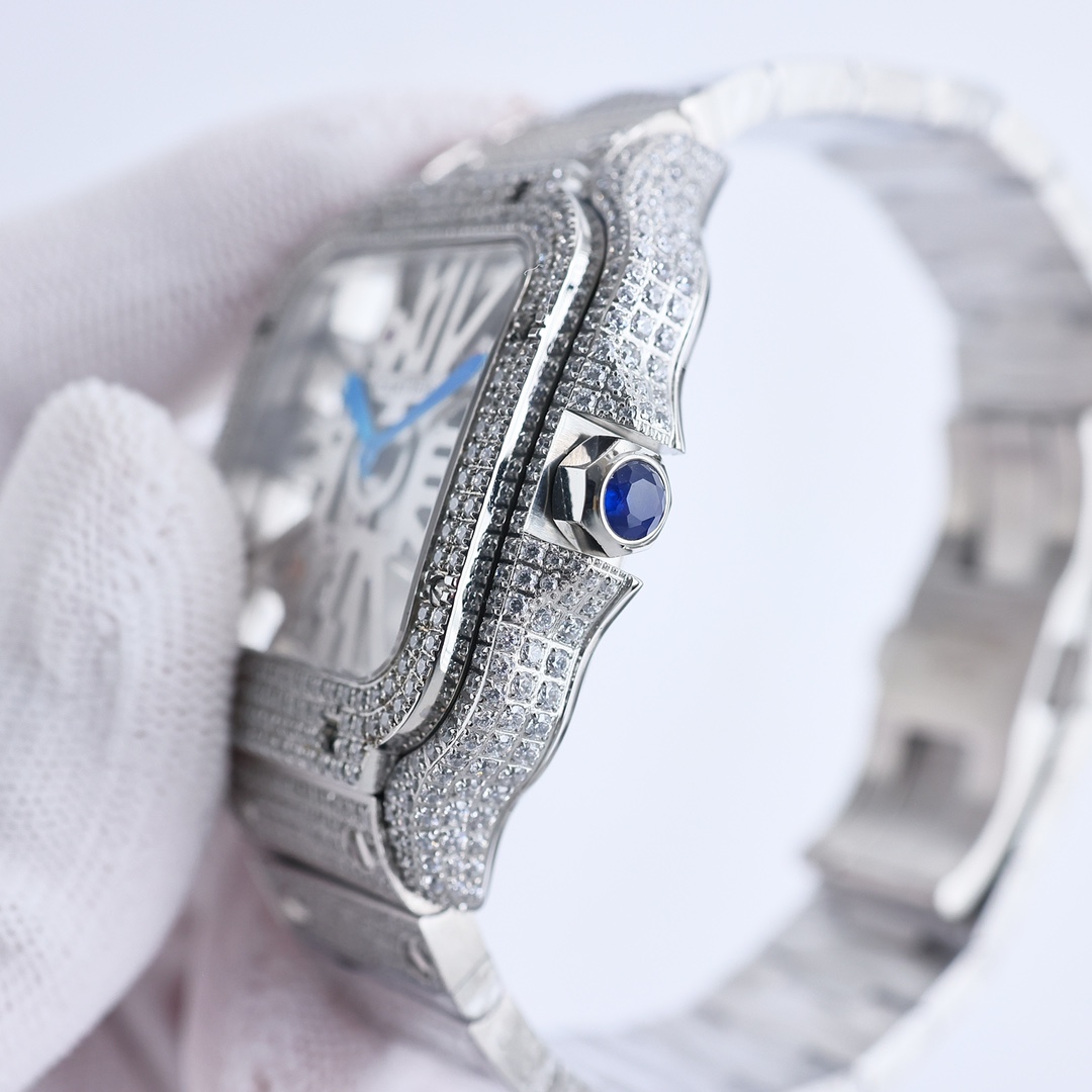 这款手表是AAAAA 1:1 质量 (非常棒). 使用了和原版一模一样的材料. 商标部分也保持了和卡地亚/Cartier一样. 图片拍摄是实物手表拍摄, 您所收到的实物保证和我们图片一模一样.