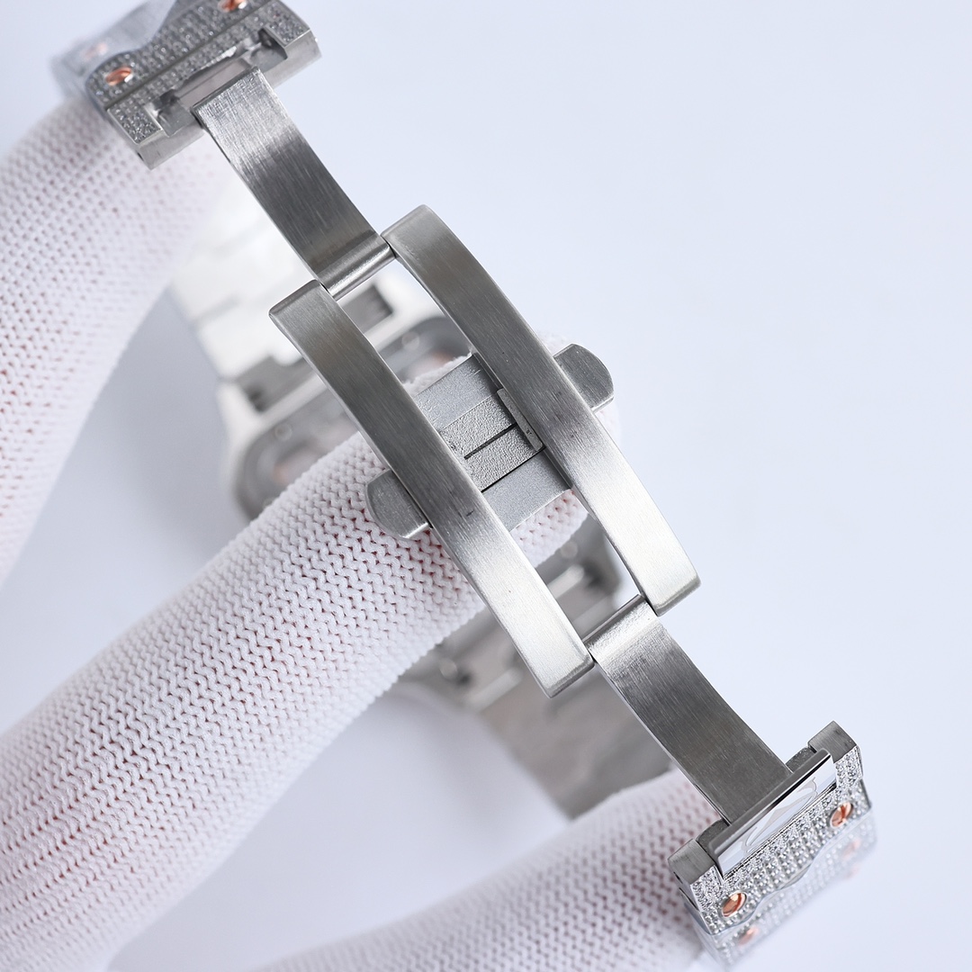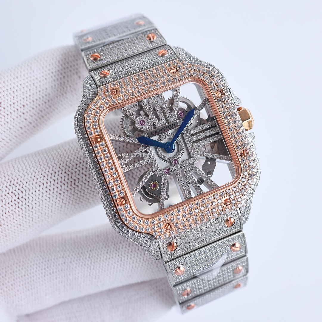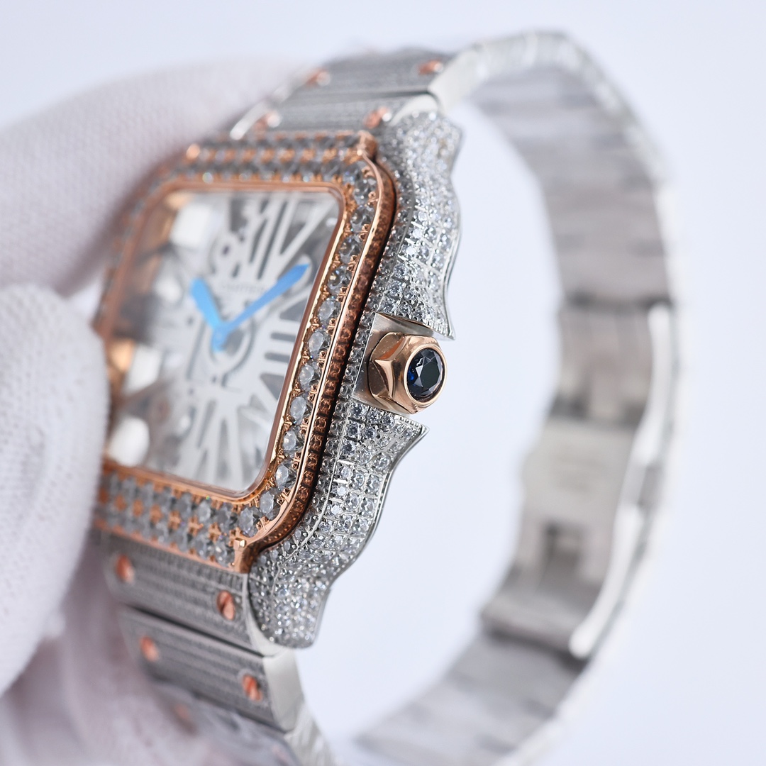 这款手表是AAAAA 1:1 质量 (非常棒). 使用了和原版一模一样的材料. 商标部分也保持了和卡地亚/Cartier一样. 图片拍摄是实物手表拍摄, 您所收到的实物保证和我们图片一模一样.
