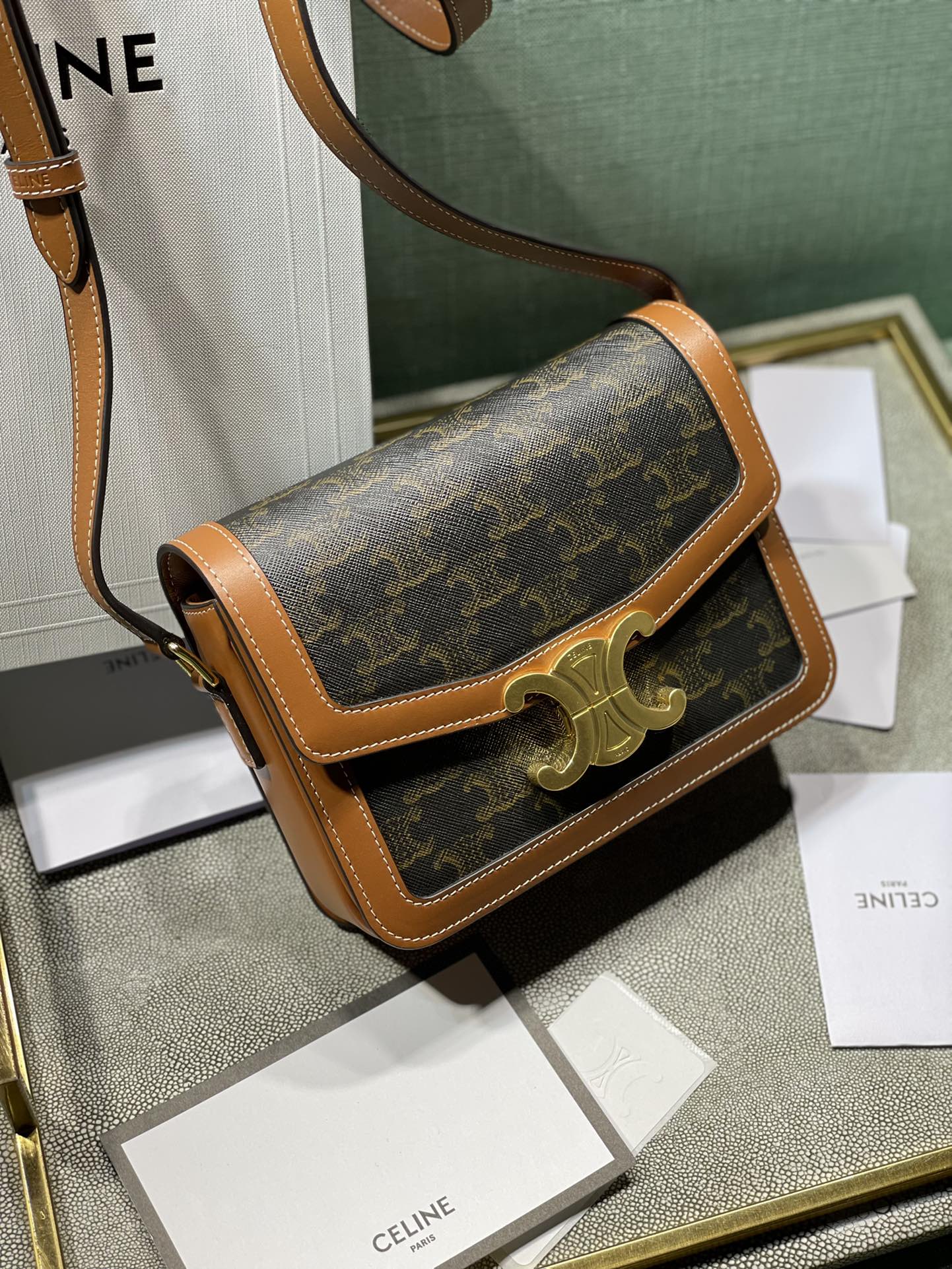 这款包包是AAAAA 1:1 质量 (非常棒). 使用了和原版一模一样的材料. 商标部分也保持了和思琳/Celine一样. 图片拍摄是实物包包拍摄, 您所收到的实物保证和我们图片一模一样.