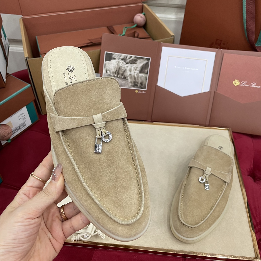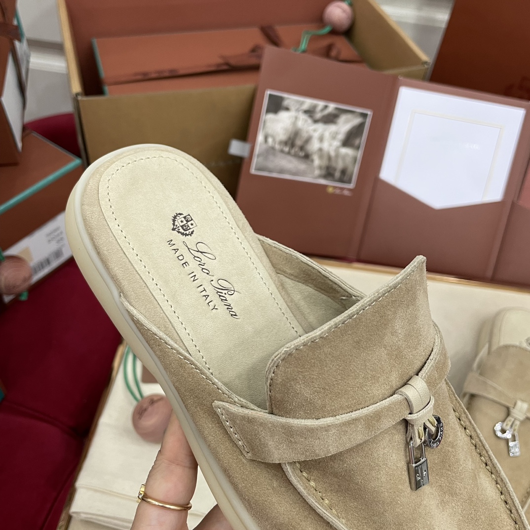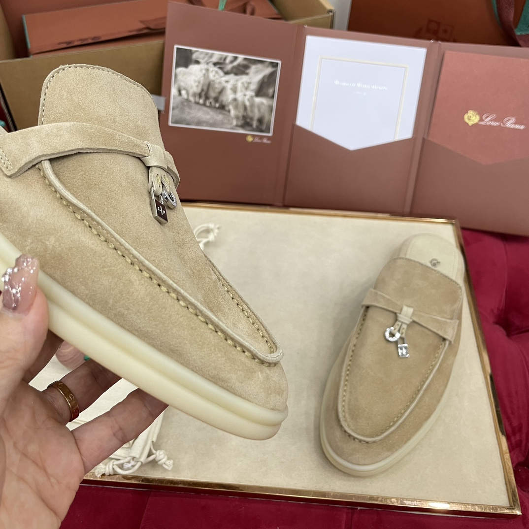 这款鞋子是AAAAA 1:1 质量 (非常棒). 使用了和原版一模一样的材料. 商标部分也保持了和洛罗皮亚纳/Loro Piana一样. 图片拍摄是实物鞋子拍摄, 您所收到的实物保证和我们图片一模一样.