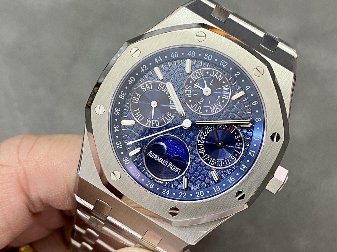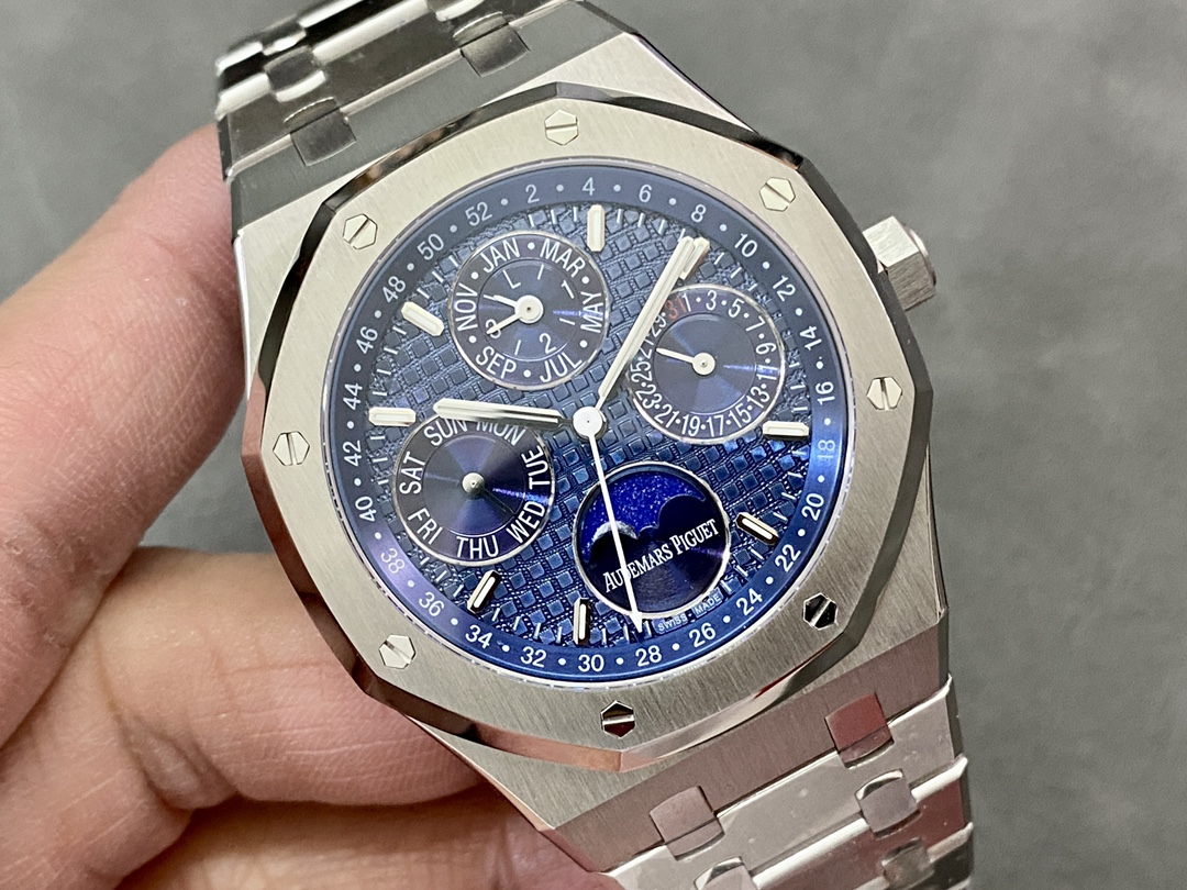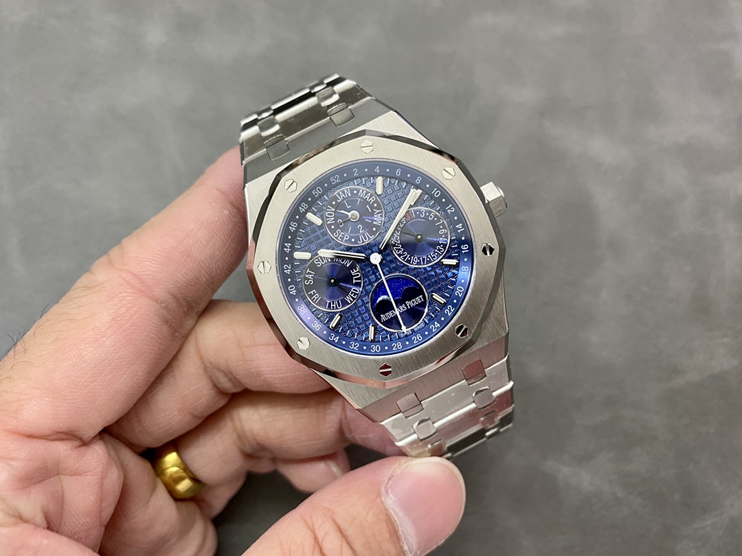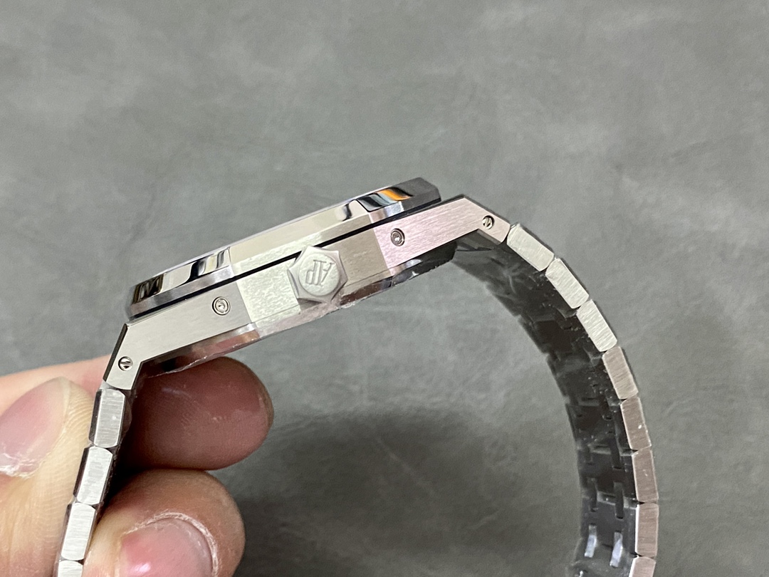 这款手表是AAAAA 1:1 质量 (非常棒). 使用了和原版一模一样的材料. 商标部分也保持了和爱彼/Audemars Piguet一样. 图片拍摄是实物手表拍摄, 您所收到的实物保证和我们图片一模一样.
